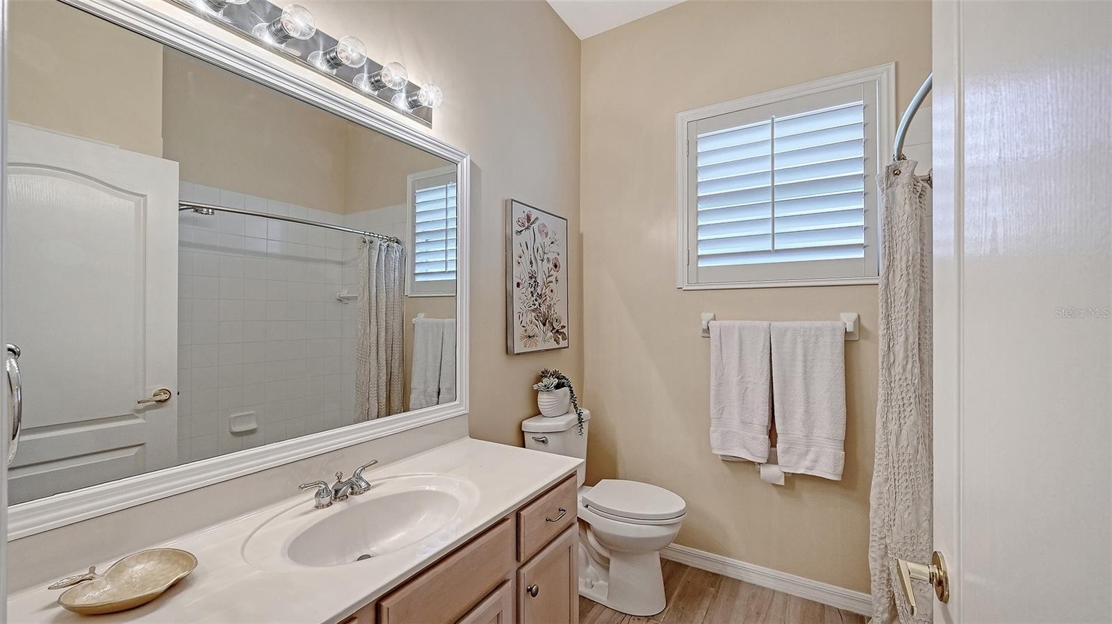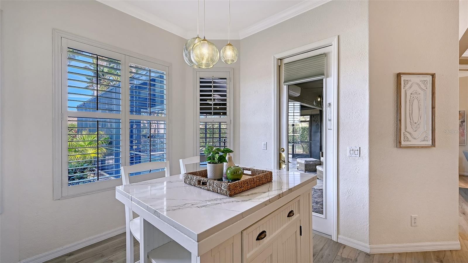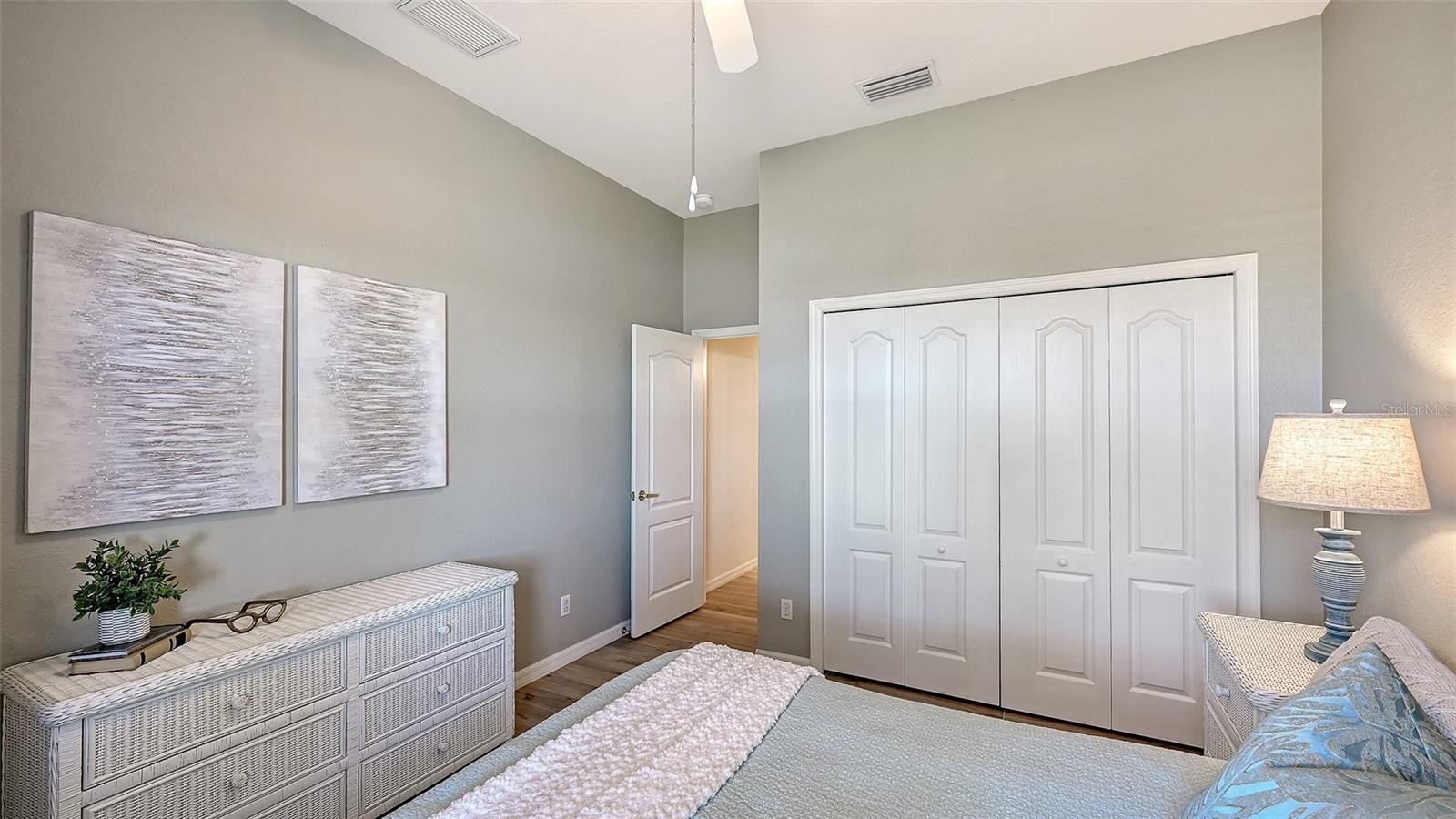 Located in the private, gated Stoneybrook section of Heritage Harbour, this thoughtfully updated three-bedroom, two-bath home offers flexible living and beautiful golf and lake views. Notable updates include porcelain plank flooring throughout the home, along with an updated kitchen and primary bath. The home is also equipped with a whole-house generator, while major systems have been updated, including the HVAC system, pool equipment, and all appliances—offering peace of mind and move-in-ready convenience. The home features crown molding throughout the main living spaces and a living room accented by a double tray ceiling and sliders to the extended lanai. Plantation shutters are found in the kitchen, dining room, office, and guest bedrooms. The primary suite offers sliding-door lanai access and includes two custom-organized walk-in closets and a spacious en-suite bath with a double-sink vanity, frameless glass walk-in shower, soaking tub, linen closet, and private water closet. A private office with double-door entry, wainscoting, and a closet provides the option of a fourth bedroom. Outdoor living is enhanced by an extended, air-conditioned lanai with motorized roll-down shades, overlooking a saltwater pool with spa jets and a sleek glass enclosure for added safety, surrounded by tropical landscaping and tranquil golf and lake views. Additional exterior features include a tile roof, paver driveway, private mailbox, and landscape lighting. The impressive garage offers wrap-around built-in cabinetry and its own split A/C. Stoneybrook residents have access to a community pool, club room, fitness center, sports courts, dog park, and dining. Golf memberships are optional. Conveniently located near shopping, dining, medical facilities, I-75, and just a short drive to Florida’s renowned Gulf Coast beaches. For those seeking added convenience, furnishings are negotiable.