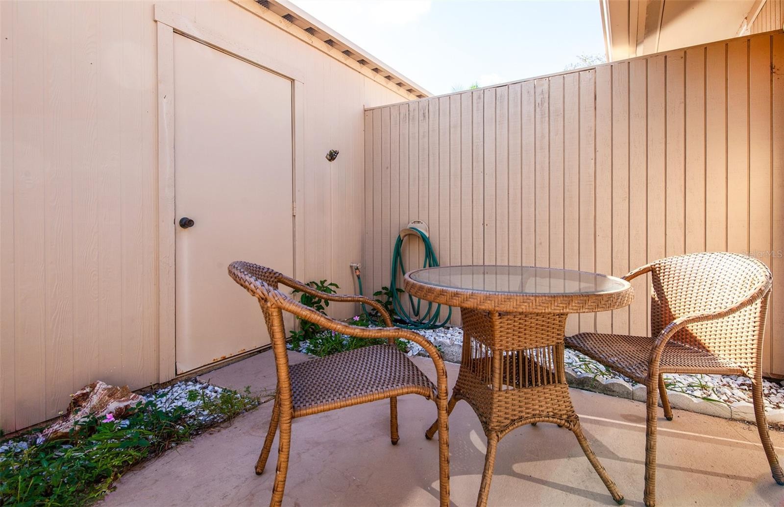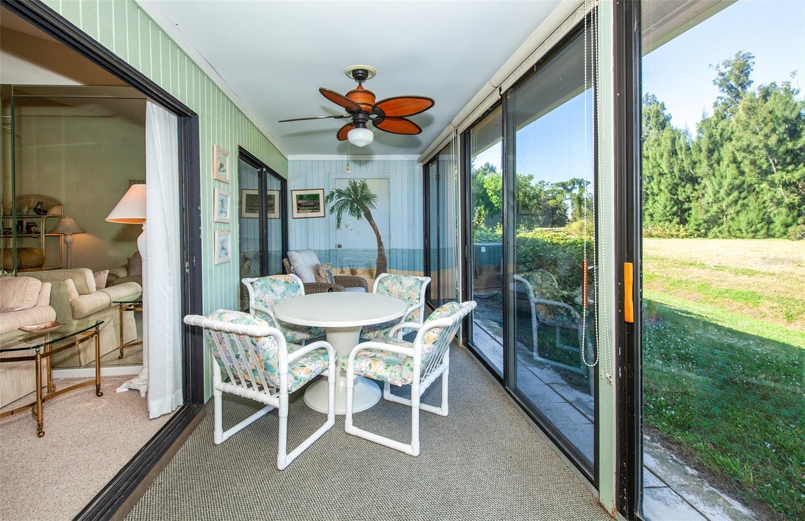 Welcome to Bird Bay Village, a fabulous resort-style condominium community less than a mile from historic Venice Island's downtown with its many restaurants, shops, the gorgeous Gulf beaches and sunsets! Your new home - a single story, end unit condo features nearly 1100 square feet of comfortable living space, updated kitchen, comfortable living/dining area, 2 bedrooms with en-suite baths, a huge enclosed lanai, a private patio, a carport, a separate storage unit with laundry! The 20+ foot enclosed lanai gives you a panoramic greenbelt view and additional storage. The New Air Conditioning System 2024, New Refrigerator, and Dishwasher 2025. Bird Bay Village offers 3 community pools, a clubhouse, tennis and pickle ball courts, fitness center, a library, shuffleboard and bocce courts, Venice is alive with many attractions including wonderful restaurants, unique shops, boating, boutiques, galleries, the Venice Theater, Legacy Trail, and 6 golf courses. Your new home is perfect for a primary residence, a snowbird escape or an investor-friendly property and is move in ready! The HOA fee covers Grounds Maintenance, Exterior Maintenance and insurance, Property Manager, Pest Control, Cable TV, Water, Trash, Sewer, Common Area Taxes, Community Pool, Pool Maintenance, Escrow Reserves Fund,and Recreational Facilities. The Village is in close proximity to the Legacy Trail, Sarasota Memorial Hospital, dozens of restaurants, music venues and a choice of several beaches. This move-in ready gem offers the perfect blend of serenity, convenience, and Florida lifestyle. Bird Bay Village creates life long friends because the community is very active with parties, barbecues, workshops, and many more activities to help enjoy life! Call for a private showing to start enjoying the Venice life-style!