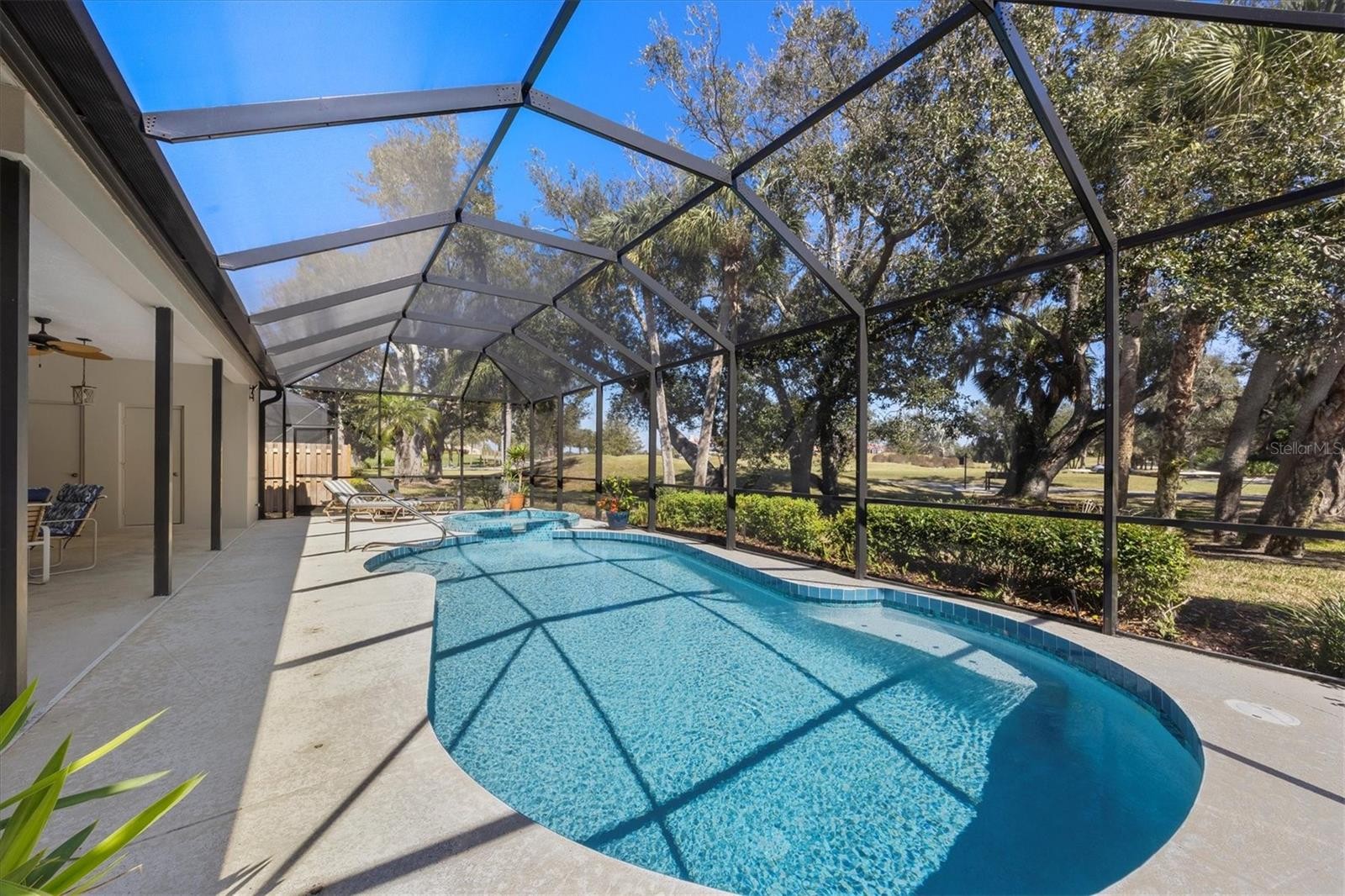 Step through the doorway of 7551 Calle Facil and experience the luxury of maintenance-free living in a fully renovated, like-new indoor–outdoor setting along the 10th fairway of the TPC Prestancia Stadium Course, set within one of Sarasota’s most established gated communities. High ceilings and panoramic views of the fairway and pool define the home’s five bedrooms and five bathrooms across more than 3,500 square feet, highlighted by the ease of first-floor living with a newly renovated, plush primary suite, a spa-inspired en-suite bath, a separate guest en suite, a gourmet kitchen, and a completely resurfaced pool and spa. This residence is positioned within Prestancia’s La Vista enclave, known for its privacy and mature, manicured surroundings. The dramatic two-story atrium living room sets an immediate tone of scale and light, featuring soaring ceilings, expansive windows, and wide-plank luxury vinyl flooring throughout the open-concept first level. Pocketing sliders in both the living and family rooms create a seamless transition to the lanai, offering effortless access to the pool and spa, resurfaced with new tile and new equipment (2025), alongside sweeping views of the fairway’s manicured greens and lush tropical landscaping. Upgraded fans, designer lighting, and a refreshed powder bath further enhance the relaxed Florida lifestyle. Inside, the living room’s wood-burning fireplace introduces warmth and architectural presence, complemented by a well-appointed wet bar beneath the soaring ceilings. Reimagined with a modern aesthetic, the refined kitchen showcases all-new LG smart appliances, quartz countertops, and custom cabinetry accented by premium fixtures, a wine refrigerator with beverage counter, and a generous closet pantry, equally suited for everyday living and entertaining. The primary suite serves as a private retreat, featuring bay windows, direct lanai access, and a spa-like bath with dual vanities, illuminated heated mirrors, a frameless walk-in rain shower, and a Jacuzzi whirlpool tub enveloped in floor-to-ceiling honeydew glass tile. The secondary en-suite bedroom on the main level provides ideal flexibility for guests or multigenerational living, complete with new cabinetry, a frameless glass shower, and a walk-in closet. Upstairs, three additional bedrooms, one currently styled as an office, offer serene golf course views, spacious walk-in closets, and a fully renovated bath with dual sinks and contemporary finishes. The home’s renovations reflect exceptional attention to detail, including 14 new interior doors and hardware, updated switches and dimmers, child-safe receptacles, energy-efficient lighting, a new water heater (2025), a new pool pump and heat pump heater (2025), a Maytag washer and dryer, custom window shades, Schlage door hardware and locks, and fresh interior and exterior paint. Complementing these turnkey improvements, the Prestancia La Vista neighborhood provides a maintenance-free focused lifestyle, covering landscaping, exterior upkeep, roof maintenance, pest control, and dwelling insurance. Optional membership at TPC Prestancia offers access to two championship 18-hole golf courses, dining, and an active social calendar, with the Prestancia Sports Club currently under construction. Located just minutes from Siesta Key and convenient to Sarasota’s premier shopping, dining, and cultural destinations, this home represents an exceptional balance of luxury, lifestyle, and location.