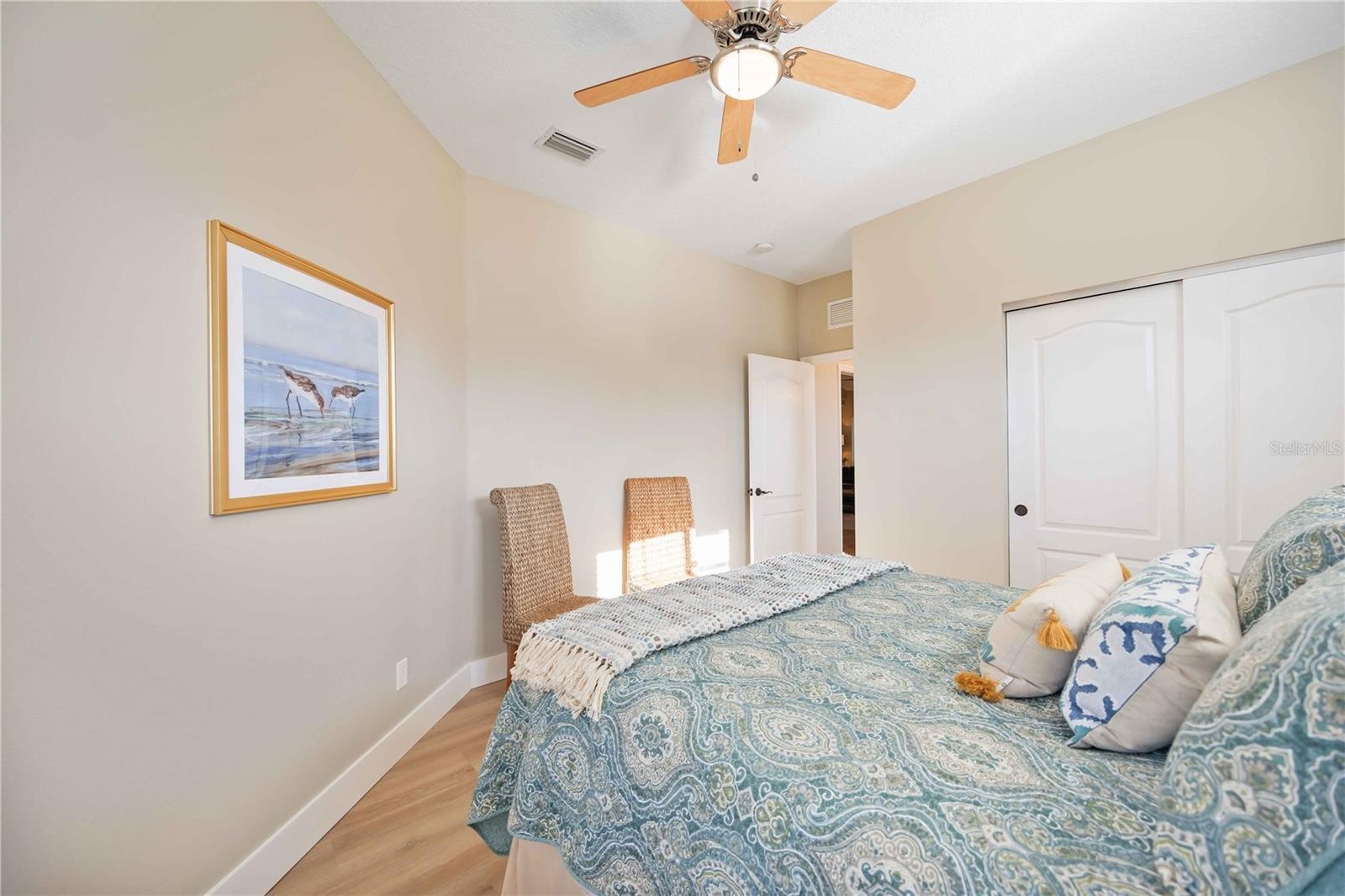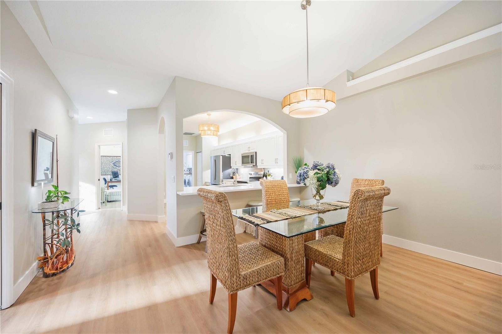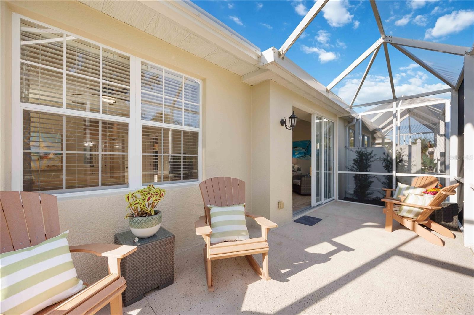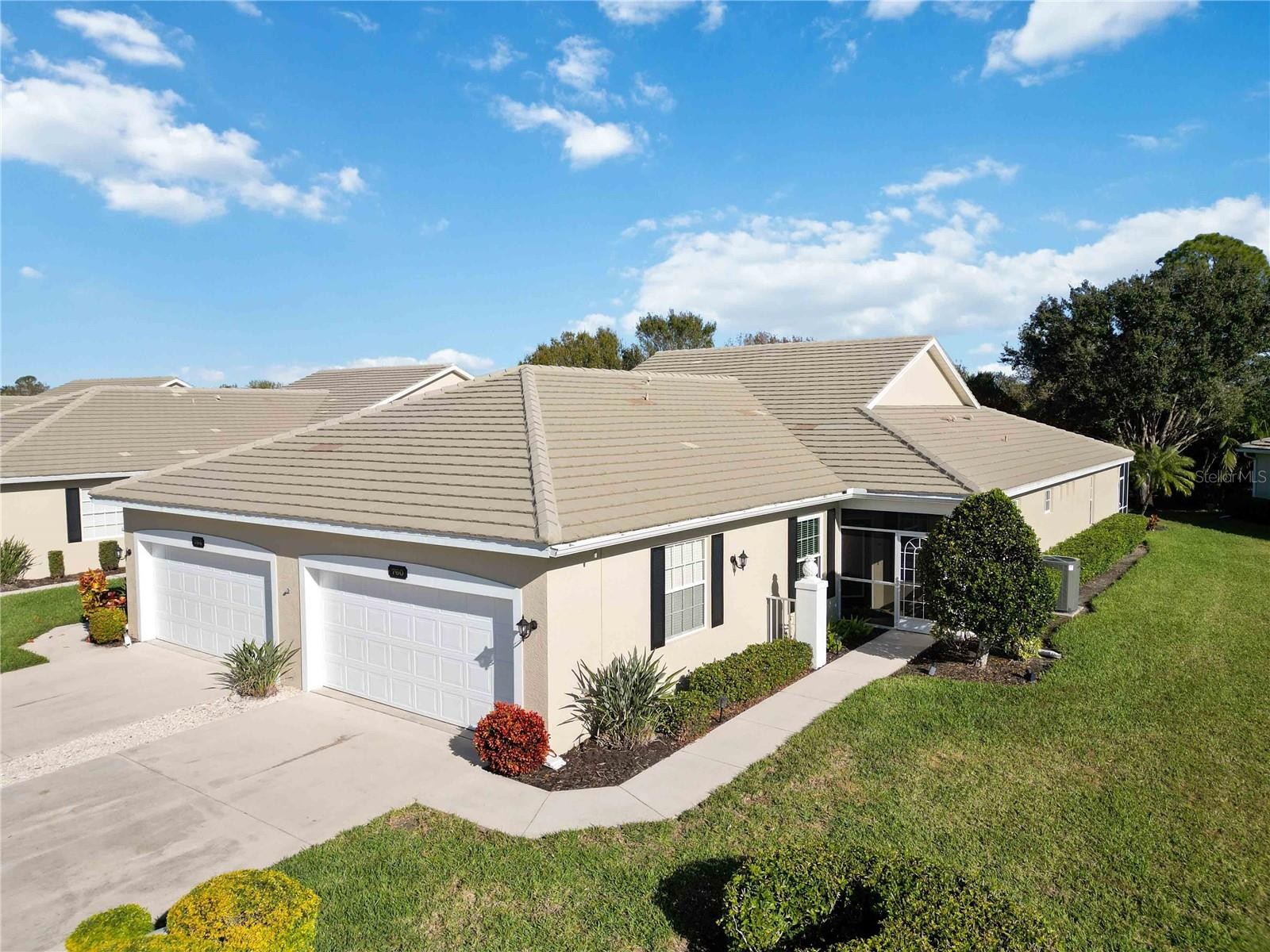 Under contract-accepting backup offers. Welcome to this beautifully updated two-bedroom plus den villa, offering comfort, style, and privacy in a desirable maintenance-free community. Thoughtfully renovated, this home features a BRAND-NEW AIR CONDITIONER, FLOORING AND BASEBOARDS, UPDATED LIGHTING AND CEILING FANS, GARAGE DOOR OPENER AND FRESHLY PAINTED, creating a clean, modern feel from top to bottom. Neutral colors flow through this home which can blend with any décor style. It is being sold partially furnished. The open and airy layout is enhanced by vaulted ceilings and abundant natural light. The kitchen shines with BRAND-NEW STAINLESS APPLIANCES, TILE BACKSPLASH AND NEW COUNTERTOPS MAKING it both functional and inviting for everyday living and entertaining. This home comes with a WHOLE HOUSE REVERSE OSMOSIS SYSTEM AND FILTERED WATER FAUCET in the kitchen. The versatile den is perfect for a home office, guest space, or hobby room. The options are endless. Step outside to the screened-in back patio, where you can relax and enjoy peaceful preserve views. A HUGE SIDE YARD provides exceptional space and privacy, offering a rare bonus for villa living. Enjoy the convenience of a two car garage with extra long driveway perfect for multiple vehicles, guests or added family. This MAINTENANCE-FREE HOME is in a vibrant community featuring two pools, a clubhouse, and an active social calendar. For those interested, the Plantation Golf & Country Club offers optional membership with three levels to choose from and a wide variety of amenities. With extensive updates, tranquil surroundings, and resort-style living options, this move-in-ready villa is truly a special place to call home.