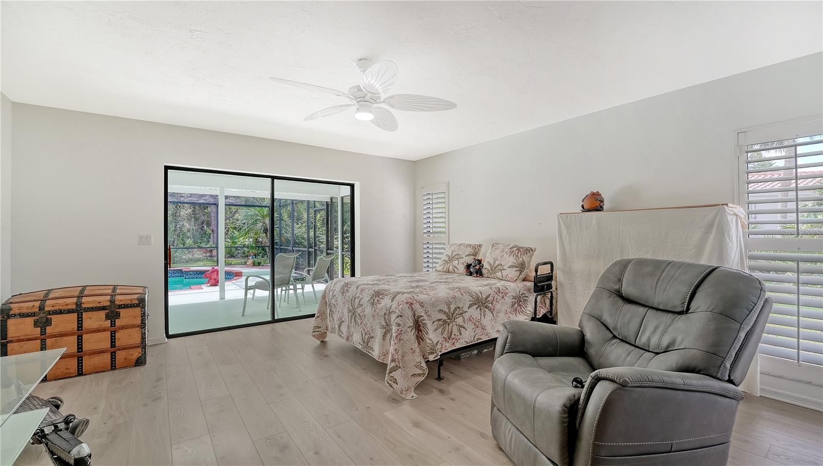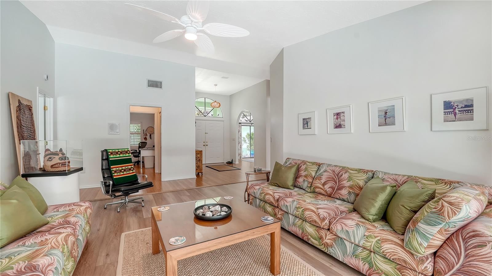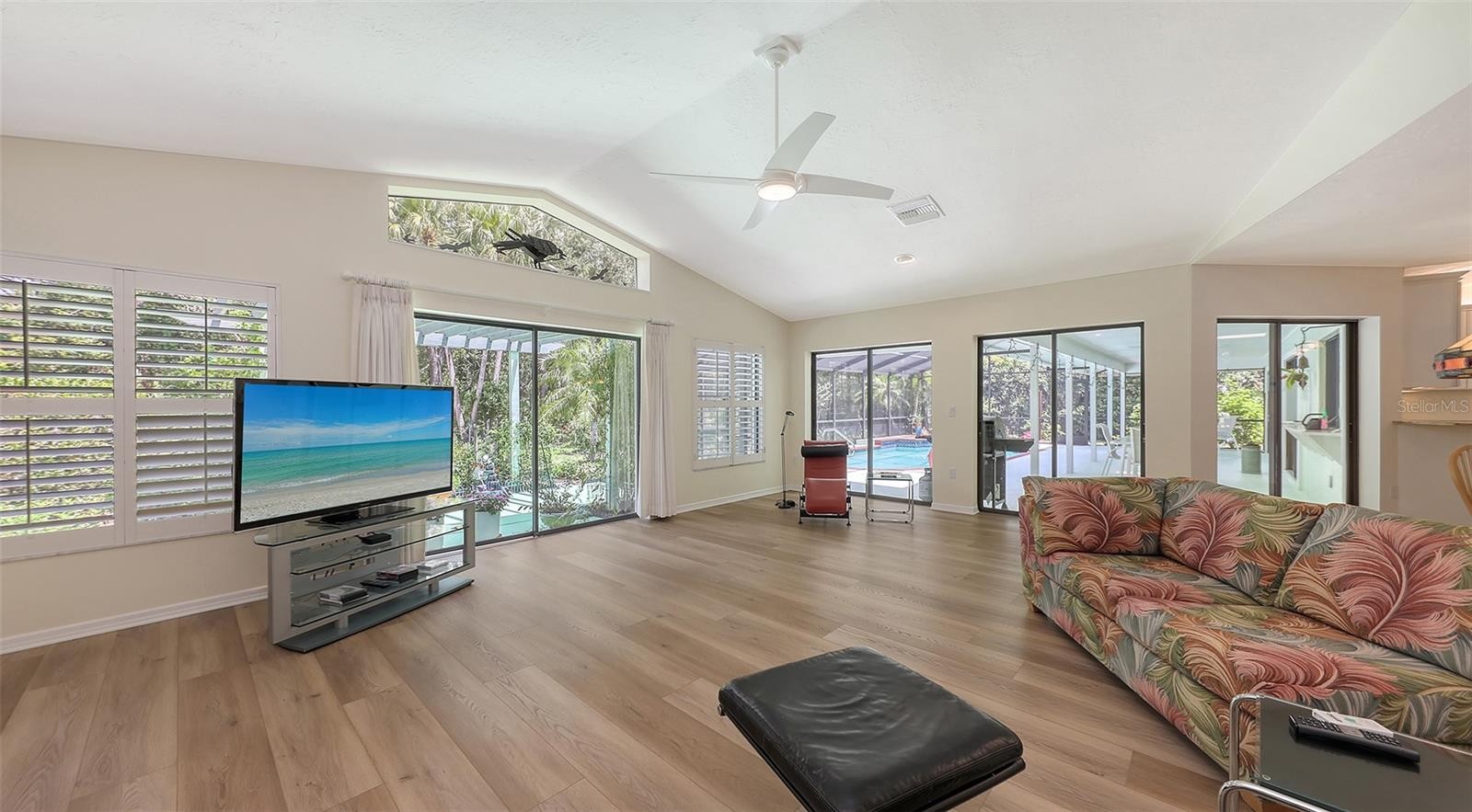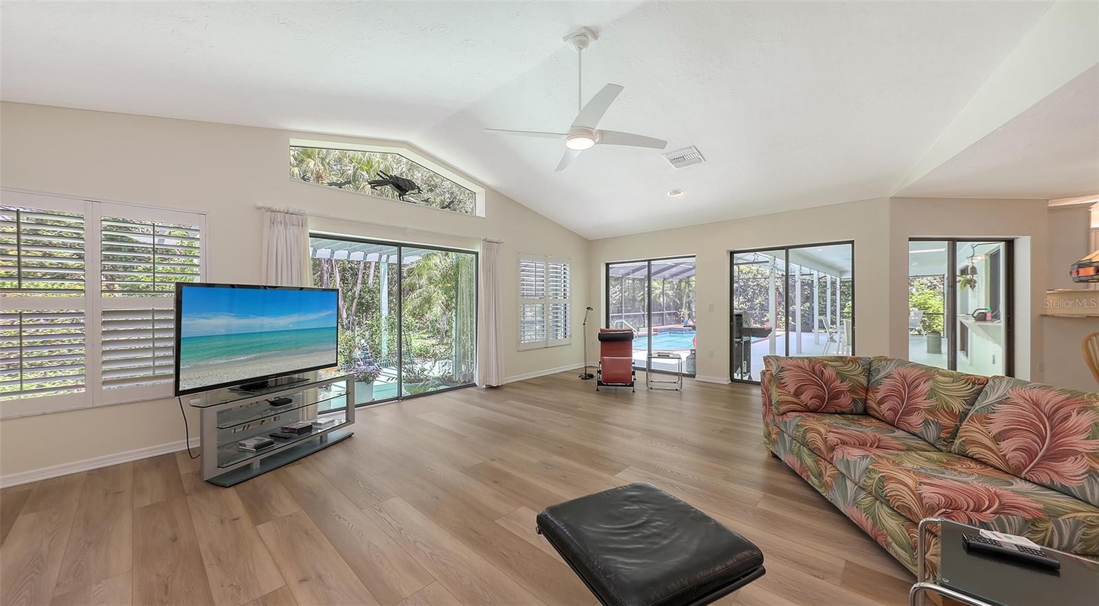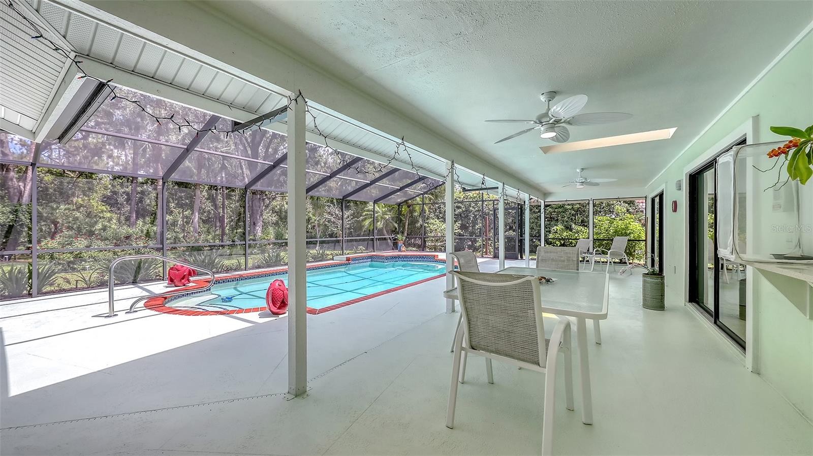 Discover this beautifully maintained three bedroom two and one half bath pool home, thoughtfully updated to provide comfort, efficiency, and contemporary style in a natural setting. The large kitchen has been updated with a new stove, refrigerator, dishwasher, disposal, and reverse osmosis drinking water equipment. Stylish luxury vinyl plank flooring has been installed in the living room, all three bedrooms, the great room, and kitchen. New ceiling fans have also been installed throughout the interior and lanai. The pool features a new pool sweep, and the entire pool cage frame has been freshly painted along with new screening installed in 2020. Fresh paint inside and out enhances every space with a clean, light, and bright look with abundant natural light provided by skylights throughout. The updates were more than just skin deep; A whole house water conditioner ensures pristine water quality, 2 separate water heaters and 2 HVAC systems provide peace of mind and redundancy. Recent enhancements include a reinforced roof structure with the addition of “third nail” and enhanced roof straps providing peace of mind and lowered insurance costs. Other improvements include a new washing machine, water heater (2021) and a new well pump for irrigation. The professionally designed and well maintained landscaping is amazing to behold and offers outstanding curb appeal in both the front and back yards. For those who love outdoor living, this home offers a sublime natural experience featuring a meticulously maintained butterfly garden including an elegant pergola just outside the family room’s sliding doors providing a serene and tranquil setting rarely found in even the most rural settings allowing you to watch the birds, butterflies and even the occasional deer cavort from the comfort of your family room. This property combines thoughtful upgrades, and inviting living spaces both inside and out—ready for you to move in and enjoy. Property being sold as-is. Schedule your tour today to experience this exceptional opportunity firsthand!