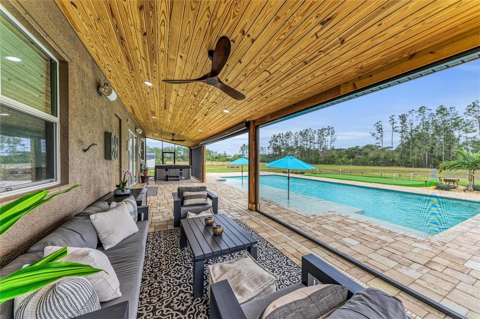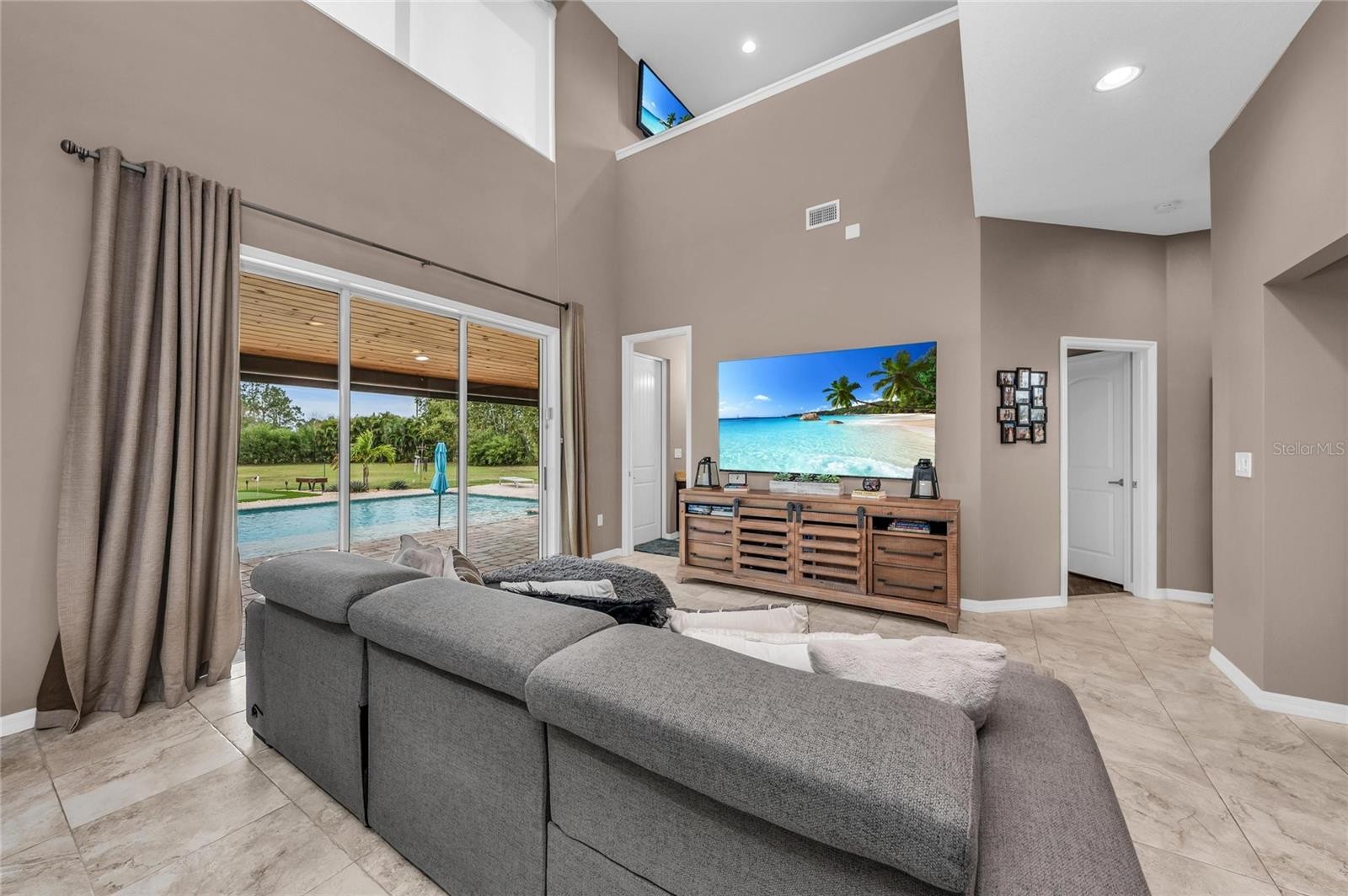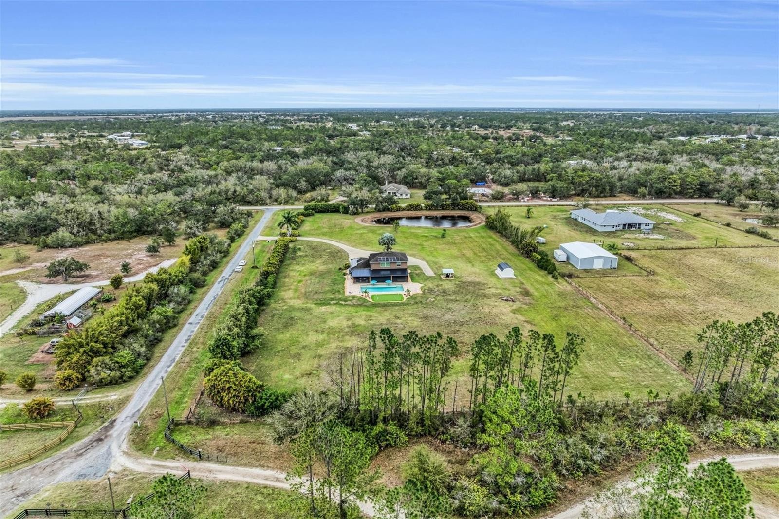 Discover the epitome of luxury living with this custom Mark Cahill home, nestled on a sprawling 4.5 acres with lush tropical landscape screening. This property offers the ultimate in privacy and freedom, featuring no deed restrictions or CDDs, and is fully fenced with a newly installed gated entry. The residence boasts three spacious bedrooms and two and a half baths, designed with an open floor plan that enhances the flow of natural light. The great room impresses with its volume ceilings, creating an airy atmosphere perfect for both relaxation and entertaining. The chef's kitchen is a culinary dream, equipped with a stylish tile backsplash and high-end stainless-steel appliances, ensuring that every meal is a delight. The main bedroom, conveniently located on the first floor, features an ensuite bath complete with dual sinks and a luxurious walk-in shower, providing a serene retreat at the end of the day. Upstairs, you will find two additional bedrooms accompanied by a cozy loft area, ideal for a home office or play space. This home is equipped with a new Carrier HVAC system, complete with an air purifier and UV lamps, along with Nest thermostats for optimal climate control, ensuring comfort year-round. Step outside to experience your own private oasis, featuring a stunning 20 x 40 saltwater sport pool with a 9-foot sun shelf, perfect for soaking up the sun. The outdoor patio extension, measuring 52'x12', showcases a tongue and groove ceiling adorned with recessed lighting and fans, creating an inviting space for gatherings. Unwind in the hot tub or enjoy the convenience of the 20' x 8' motorized Kevlar screen for added comfort. For the golf enthusiasts, a 30x20 golf green awaits, while the property's power is being assisted by 16 solar panels that generate an impressive 30-40 kWh per day accompanied by a 18 kWh Generac battery backup that keeps your necessities powered during challenging weather events or you can simply go off-grid. Making this home not only luxurious but also energy-efficient. Embrace the lifestyle you deserve in this exquisite property that combines elegance, functionality, and sustainability.