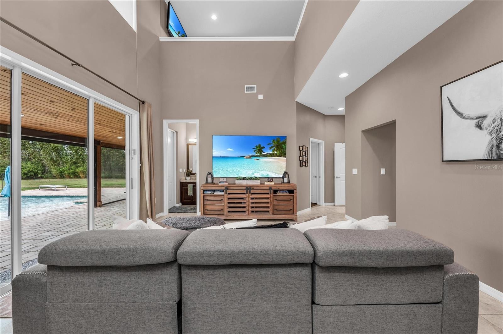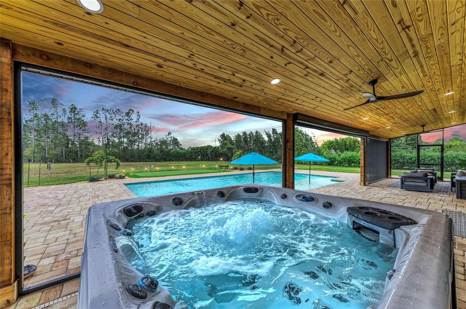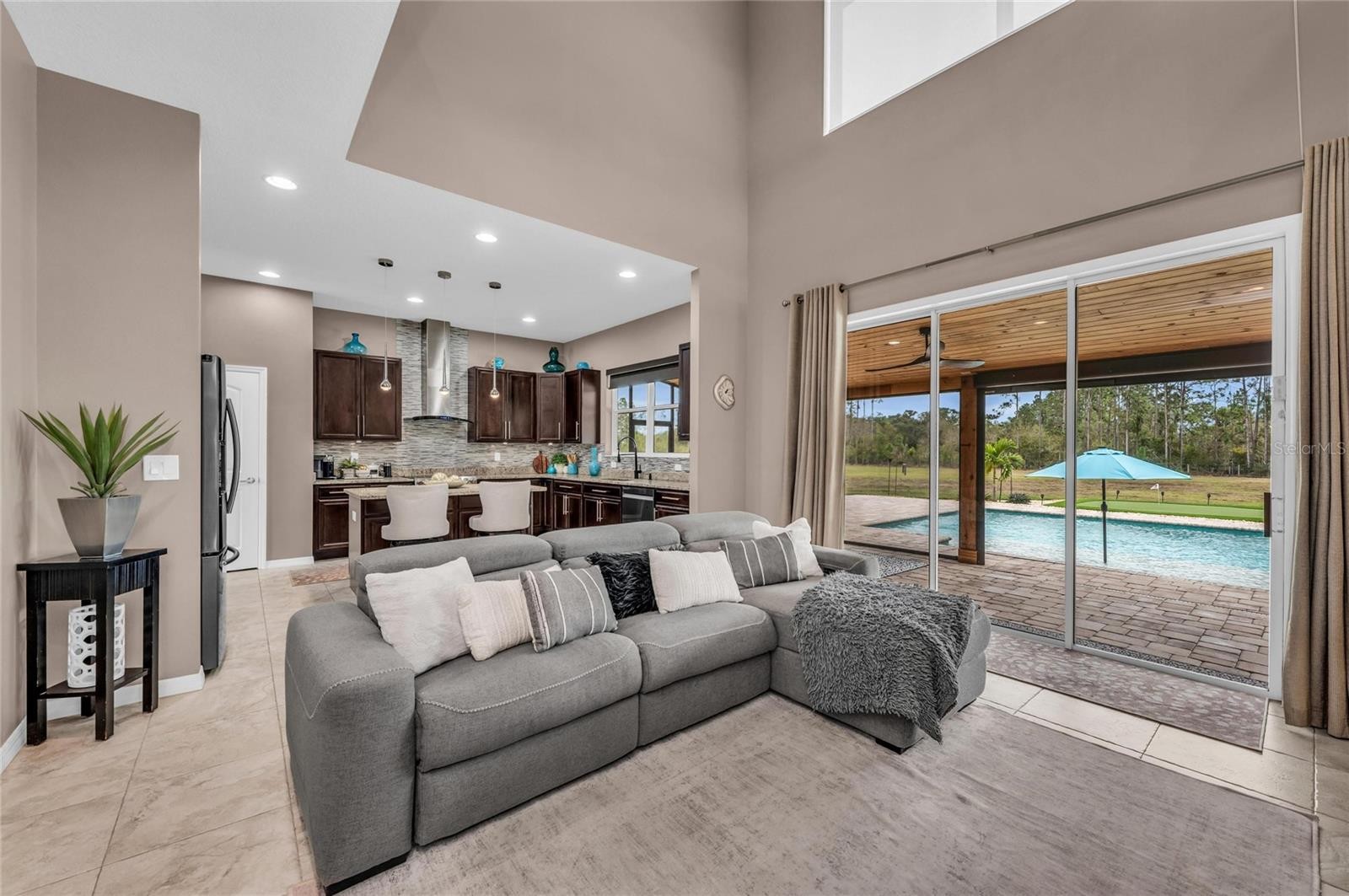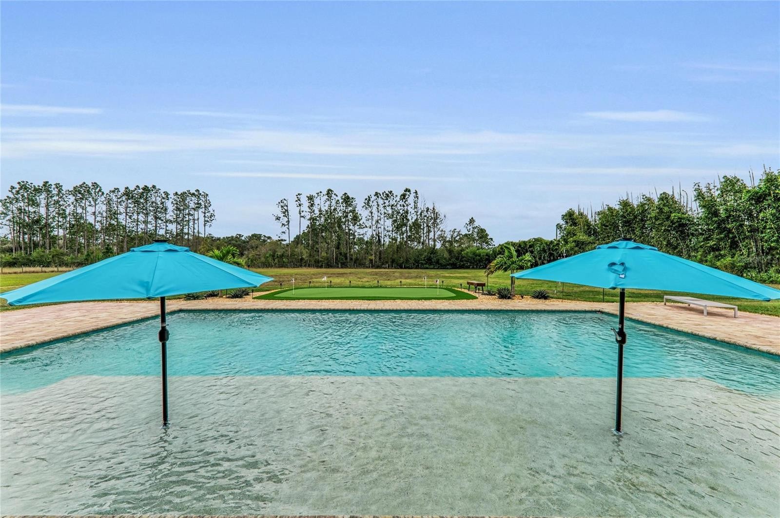 Discover the epitome of luxury living with this custom Mark Cahill home, nestled on a sprawling 4.5 acres with lush tropical landscape screening. This property offers the ultimate in privacy and freedom, featuring no deed restrictions or CDDs, and is fully fenced with a newly installed gated entry. The residence boasts three spacious bedrooms and two and a half baths, designed with an open floor plan that enhances the flow of natural light. The great room impresses with its volume ceilings, creating an airy atmosphere perfect for both relaxation and entertaining. The chef's kitchen is a culinary dream, equipped with a stylish tile backsplash and high-end stainless-steel appliances, ensuring that every meal is a delight. The main bedroom, conveniently located on the first floor, features an ensuite bath complete with dual sinks and a luxurious walk-in shower, providing a serene retreat at the end of the day. Upstairs, you will find two additional bedrooms accompanied by a cozy loft area, ideal for a home office or play space. This home is equipped with a new Carrier HVAC system, complete with an air purifier and UV lamps, along with Nest thermostats for optimal climate control, ensuring comfort year-round. Step outside to experience your own private oasis, featuring a stunning 20 x 40 saltwater sport pool with a 9-foot sun shelf, perfect for soaking up the sun. The outdoor patio extension, measuring 52'x12', showcases a tongue and groove ceiling adorned with recessed lighting and fans, creating an inviting space for gatherings. Unwind in the hot tub or enjoy the convenience of the 20' x 8' motorized Kevlar screen for added comfort. For the golf enthusiasts, a 30x20 golf green awaits, while the property's power is being assisted by 16 solar panels that generate an impressive 30-40 kWh per day accompanied by a 18 kWh Generac battery backup that keeps your necessities powered during challenging weather events or you can simply go off-grid. Making this home not only luxurious but also energy-efficient. Embrace the lifestyle you deserve in this exquisite property that combines elegance, functionality, and sustainability.
