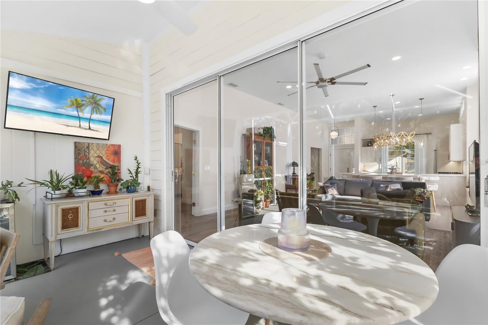 When Only the Best Will Do! Welcome to this exceptional villa-style home, completely renovated from floor to ceiling with top-of-the-line, high-end finishes throughout. Offering 2 bedrooms and 2 full baths, this home features an open and airy living and dining floor plan designed for both everyday comfort and elegant entertaining. The chef’s kitchen is a true showpiece, thoughtfully redesigned with locally crafted custom wood cabinetry, Kitchen Craft pull-outs, soft-close doors and drawers, under- and over-cabinet accent lighting, a coffee nook, convenient drop-off counter, farmhouse sink, and thick quartz countertops. High-end stainless steel appliances and a built-in quartz table create the perfect space for casual breakfasts or effortless dinners—delivering a true culinary experience. Designer lighting and fans, solid pocket doors, soaring ceilings, updated LED lighting, and additional electrical outlets added during renovation elevate both form and function. Luxury vinyl flooring flows through the main living areas, complemented by new base molding and fully customized closets throughout. Major updates include a 2020 roof and a 2025 tankless hot water heater. The primary suite is a private retreat, featuring a spa-inspired ensuite with an oversized seamless shower, custom cabinetry, dual sinks, 8-foot porcelain tile, comfort-height commode, and a dream-worthy custom walk-in closet. Enjoy peaceful outdoor living in the newly added screened lanai extension, overlooking a serene preserve backdrop. Completing the property is a beautifully maintained courtyard, 2-car detached garage with additional storage, conveying with the home. This is a rare opportunity to own a truly re-designed villa where luxury, quality, and thoughtful design come together beautifully! Whitebridge Court is a sought-after neighborhood within University Park Country Club, celebrated for its maintenance-free lifestyle, community pool, and proximity to the Club’s amenities. University Park Country Club is consistently ranked one of the top courses in Florida featuring 27 holes of championship golf, tennis and pickleball, fitness center, croquet – as well as an array of social and group activities. Just a short drive outside this peaceful enclave is downtown Sarasota, with shopping, arts & theatres, museums, dining and entertainment, top-ranked healthcare, award winning beaches and SRQ International Airport. You will enjoy the resort style club amenities with the required Social membership at UPCC, which is owned by the residents through a Recreation District.