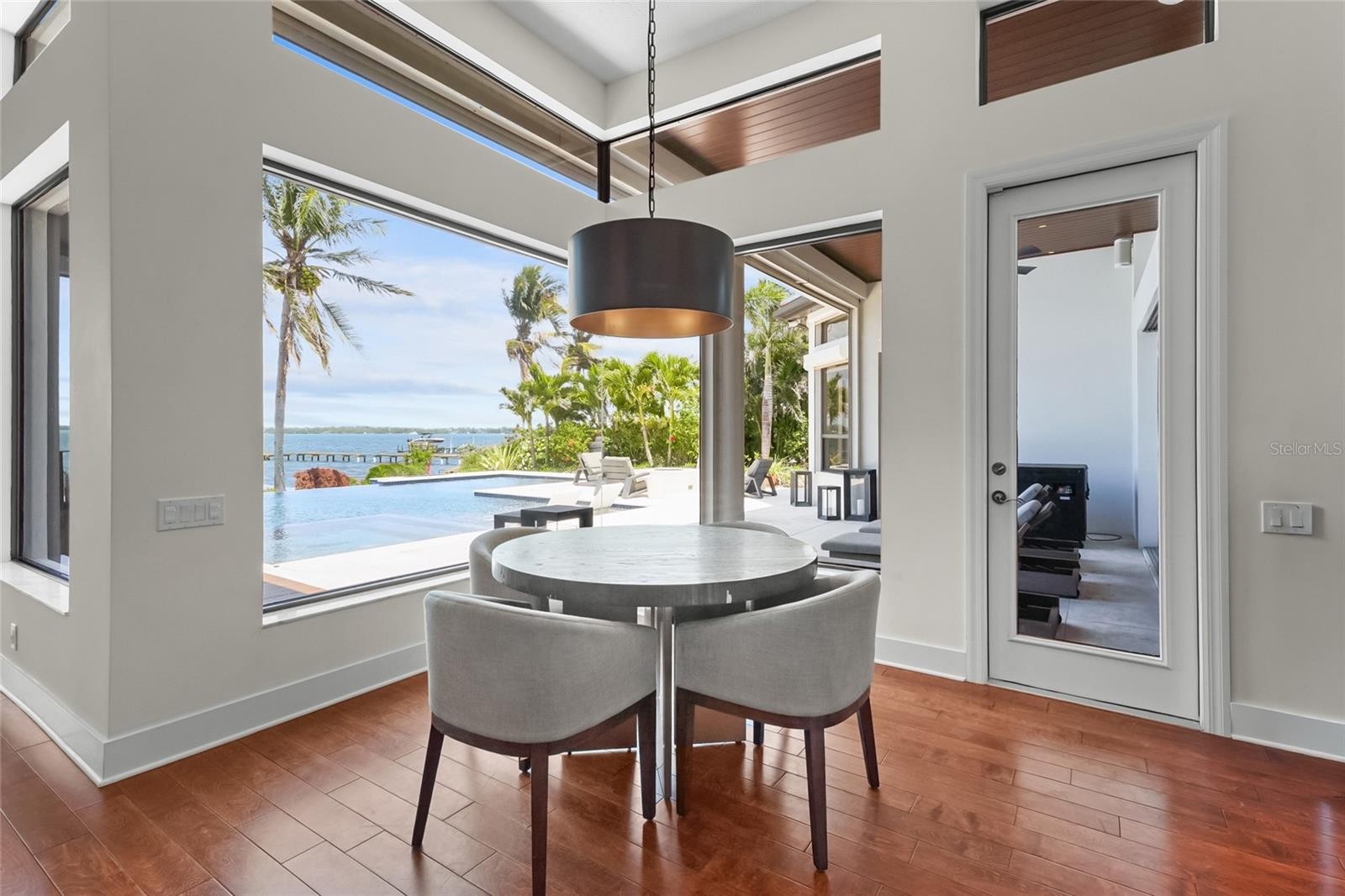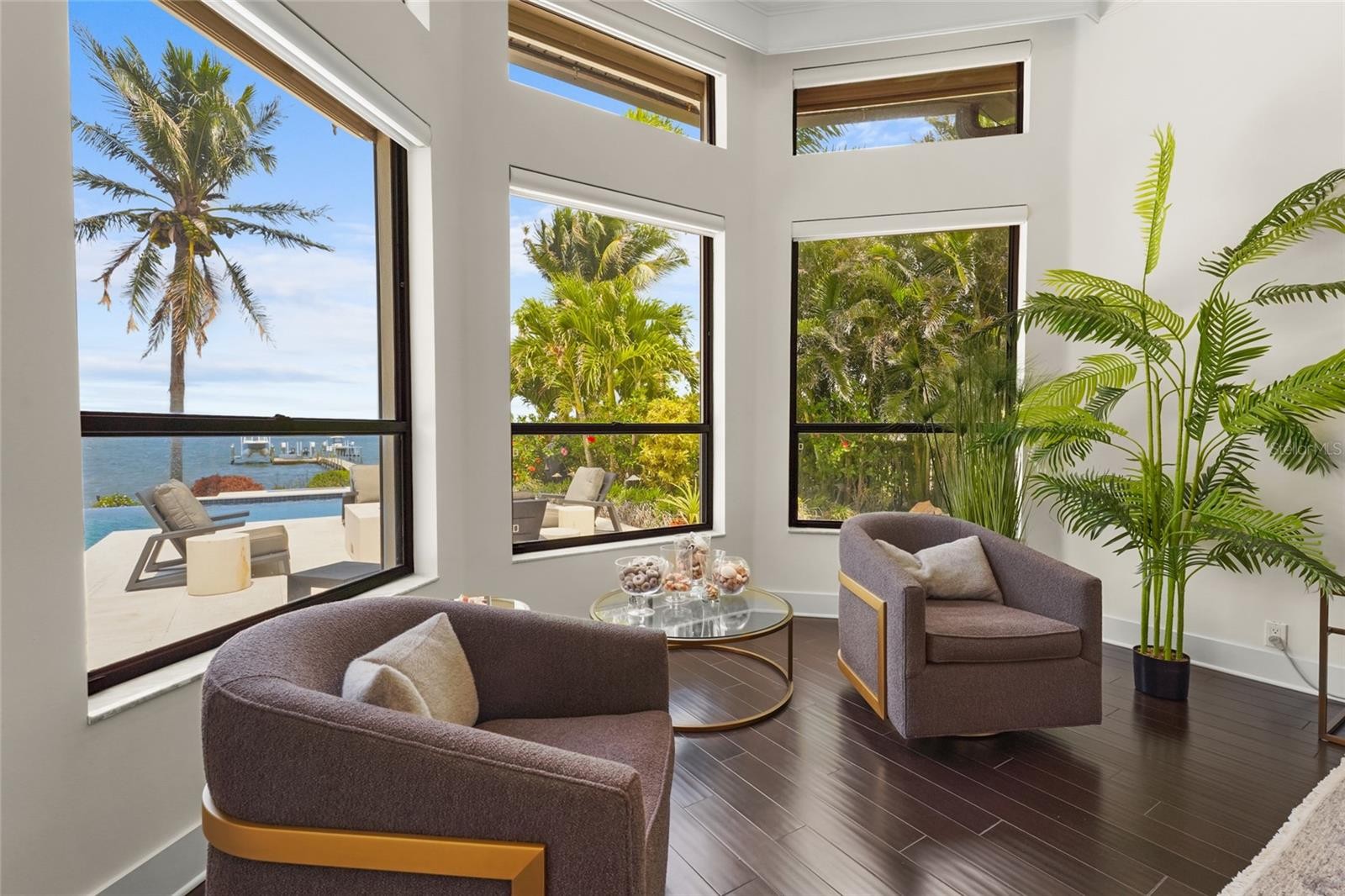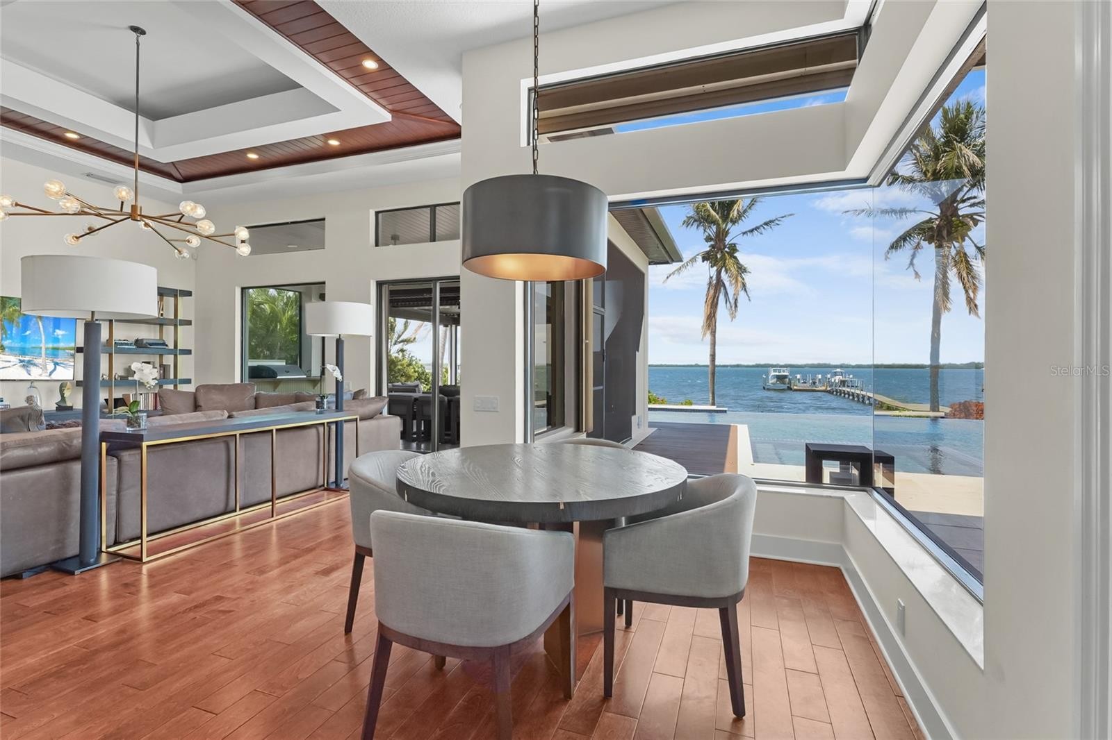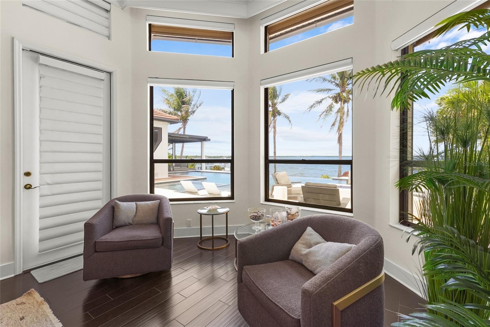 A rare waterfront estate along the Manatee River. Set on a private homesite with expansive water views stretching toward the Skyway Bridge, this property offers a unique combination of land, water frontage, and open water views. From sunrise reflecting across the river to evening sunsets along the horizon, the setting is centered around the water. The first floor is designed for a seamless blend of living and entertaining, featuring a primary suite with water views and a spa-like en-suite bathroom with a walk-in shower overlooking tropical greenery and a soaking tub positioned near large windows. Two additional bedrooms and two and a half bathrooms complete the level. Formal living and dining spaces—including a dining room with wine wall, a living room with fireplace, and a custom study with rich wood built-ins and West Indies-inspired architectural detailing—flow effortlessly into an expansive family room overlooking the water. At the center of the home, a high-end kitchen anchors the living space, opening to the main areas where walls of glass frame the water beyond and create a natural gathering point.Upstairs, a loft-style en-suite retreat offers a sense of privacy and flexibility, complete with custom wall cabinetry, a full bathroom, walk-in closet, and access to a private balcony with water views—well suited for guests or additional living space. Outdoor living is thoughtfully arranged to maximize the waterfront setting. A covered patio features an outdoor kitchen and grilling area, complemented by an outdoor shower. Just beyond, the infinity-edge pool and integrated spa are positioned along the water’s edge, creating a seamless visual connection to the water. A sun shelf and generous deck space provide multiple areas for lounging and entertaining, all oriented toward the expansive views. For boating enthusiasts, a deep-water dock with T-head platform, 16,000-pound boat lift, and jet ski lift extends into open water with access to Tampa Bay and the Gulf of Mexico. A new seawall lines the waterfront. The approach is enhanced by an extended pavered driveway with multiple parking areas, complemented by a three-car garage, providing generous space for vehicles and guest arrivals. The home has been extensively updated, including a new roof, generator, well system, HVAC components, hurricane-rated window and transom installation, refinished and expanded outdoor living areas with updated lighting and landscaping, and a renovated outdoor shower. Interior improvements include new flooring, custom built-ins, renovated bathrooms, upgraded closet systems, and smooth-finish walls throughout, along with refined design details. Located near Robinson Preserve, De Soto National Memorial, the property offers convenient access to trails, kayaking, preserved land, and local markets. Gulf beaches, including Anna Maria Island and Longboat Key, are approximately 6–8 miles away, providing easy access to coastal destinations while maintaining a private residential setting.