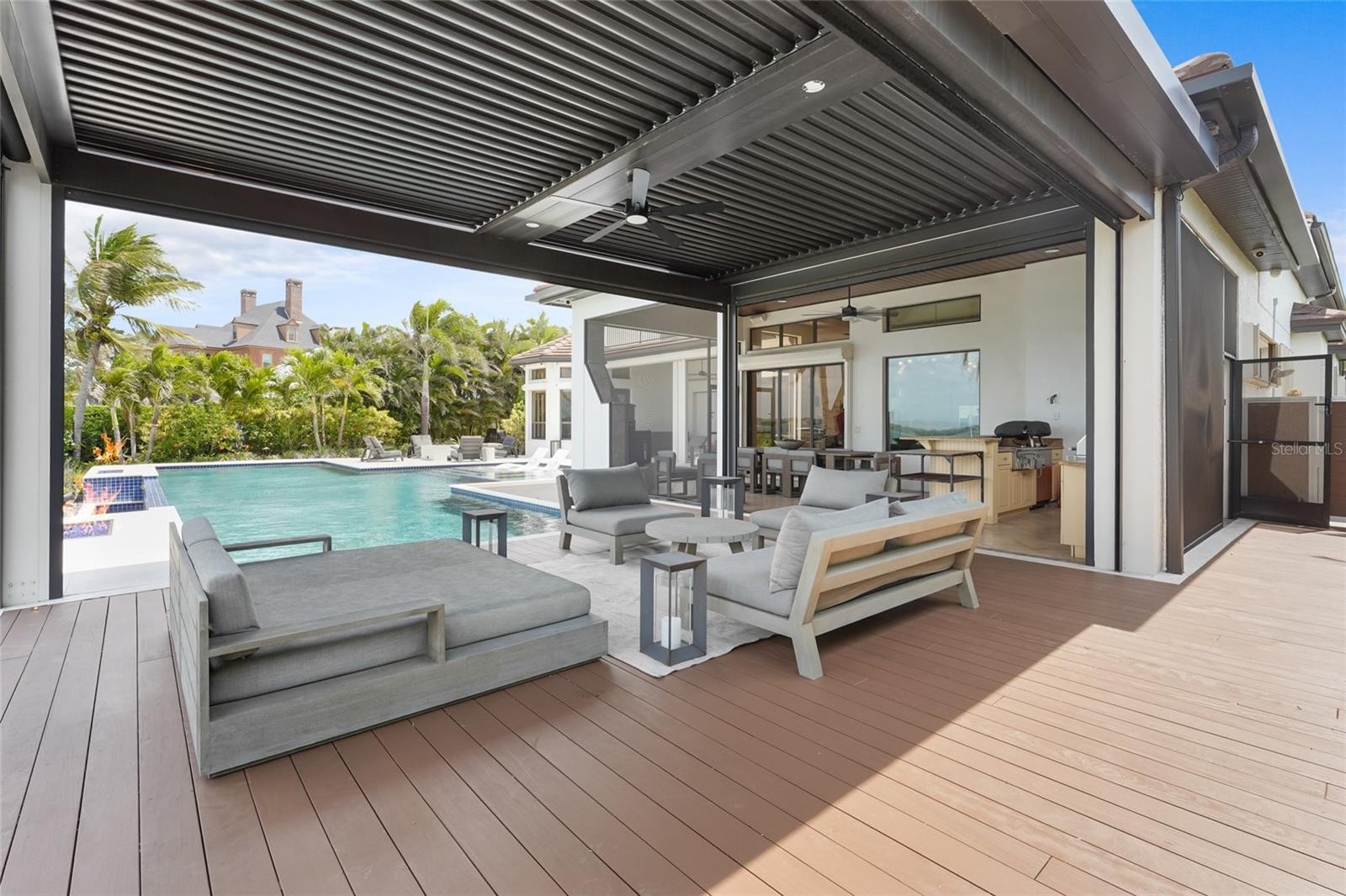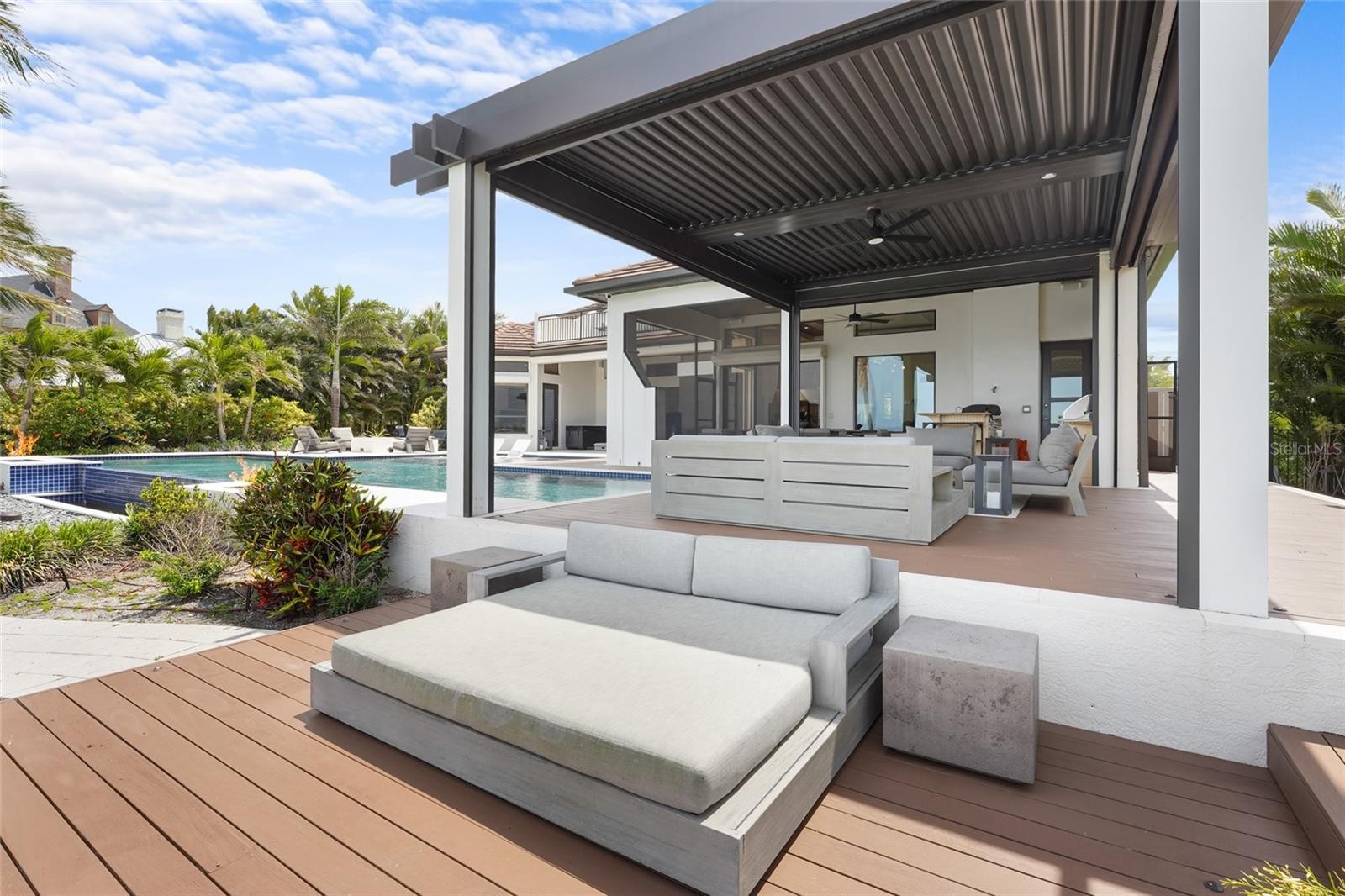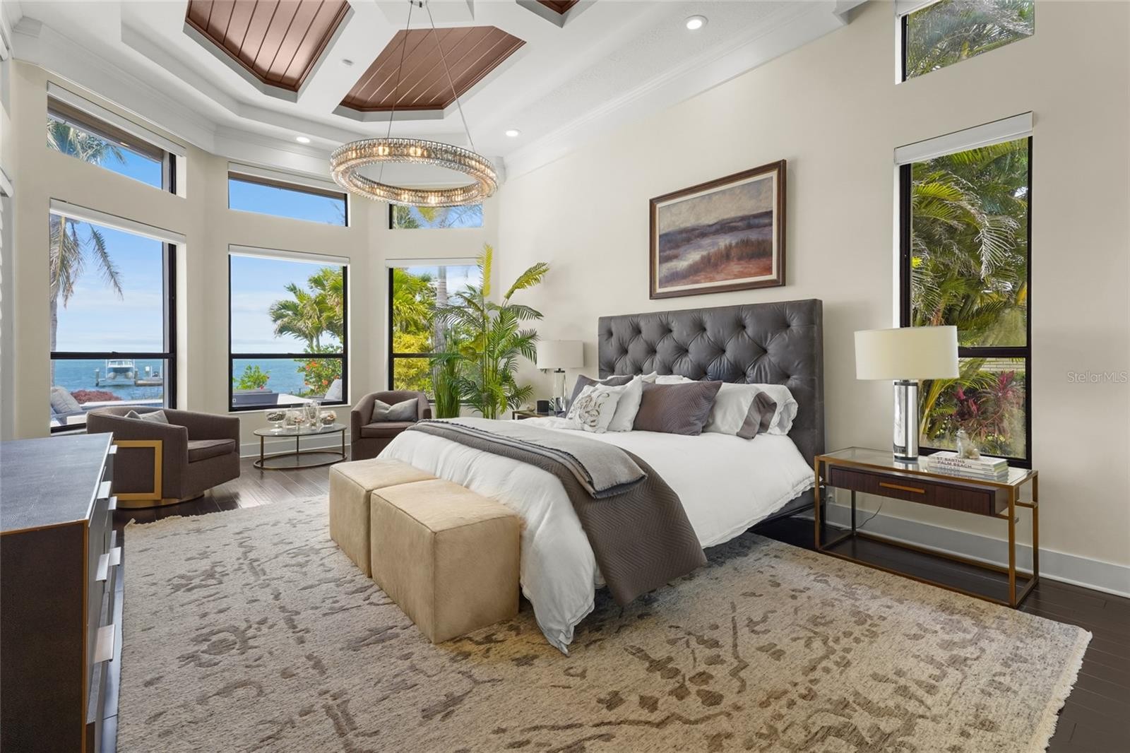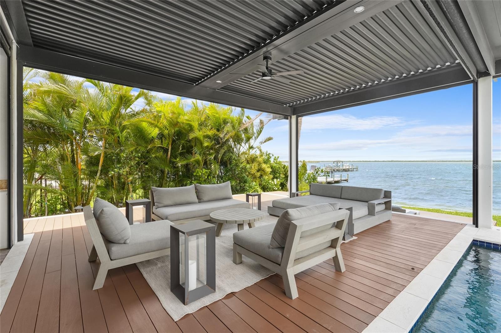 A rare waterfront estate along the Manatee River. Set on a private homesite with expansive water views stretching toward the Skyway Bridge, this property offers a unique combination of land, water frontage, and open water views. From sunrise reflecting across the river to evening sunsets along the horizon, the setting is centered around the water. The first floor is designed for a seamless blend of living and entertaining, featuring a primary suite with water views and a spa-like en-suite bathroom with a walk-in shower overlooking tropical greenery and a soaking tub positioned near large windows. Two additional bedrooms and two and a half bathrooms complete the level. Formal living and dining spaces—including a dining room with wine wall, a living room with fireplace, and a custom study with rich wood built-ins and West Indies-inspired architectural detailing—flow effortlessly into an expansive family room overlooking the water. At the center of the home, a high-end kitchen anchors the living space, opening to the main areas where walls of glass frame the water beyond and create a natural gathering point.Upstairs, a loft-style en-suite retreat offers a sense of privacy and flexibility, complete with custom wall cabinetry, a full bathroom, walk-in closet, and access to a private balcony with water views—well suited for guests or additional living space. Outdoor living is thoughtfully arranged to maximize the waterfront setting. A covered patio features an outdoor kitchen and grilling area, complemented by an outdoor shower. Just beyond, the infinity-edge pool and integrated spa are positioned along the water’s edge, creating a seamless visual connection to the water. A sun shelf and generous deck space provide multiple areas for lounging and entertaining, all oriented toward the expansive views. For boating enthusiasts, a deep-water dock with T-head platform, 16,000-pound boat lift, and jet ski lift extends into open water with access to Tampa Bay and the Gulf of Mexico. A new seawall lines the waterfront. The approach is enhanced by an extended pavered driveway with multiple parking areas, complemented by a three-car garage, providing generous space for vehicles and guest arrivals. The home has been extensively updated, including a new roof, generator, well system, HVAC components, hurricane-rated window and transom installation, refinished and expanded outdoor living areas with updated lighting and landscaping, and a renovated outdoor shower. Interior improvements include new flooring, custom built-ins, renovated bathrooms, upgraded closet systems, and smooth-finish walls throughout, along with refined design details. Located near Robinson Preserve, De Soto National Memorial, the property offers convenient access to trails, kayaking, preserved land, and local markets. Gulf beaches, including Anna Maria Island and Longboat Key, are approximately 6–8 miles away, providing easy access to coastal destinations while maintaining a private residential setting.