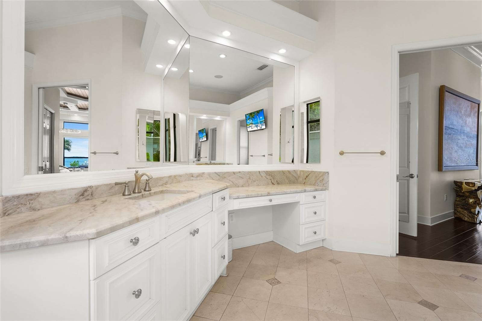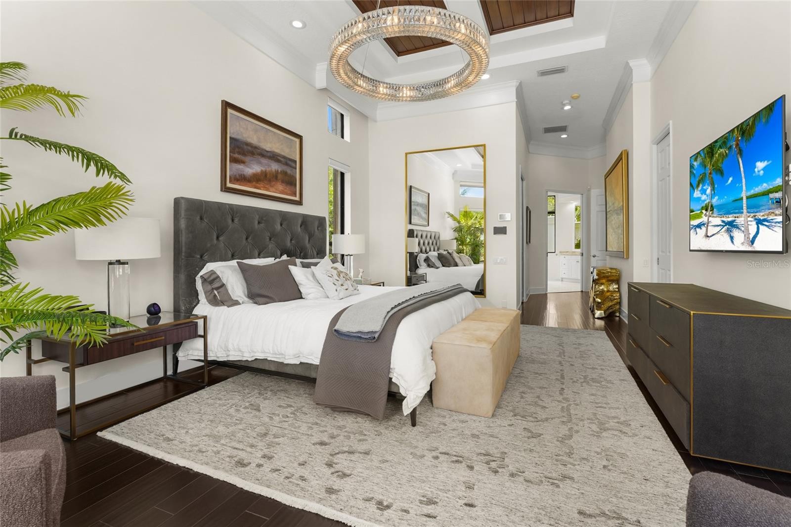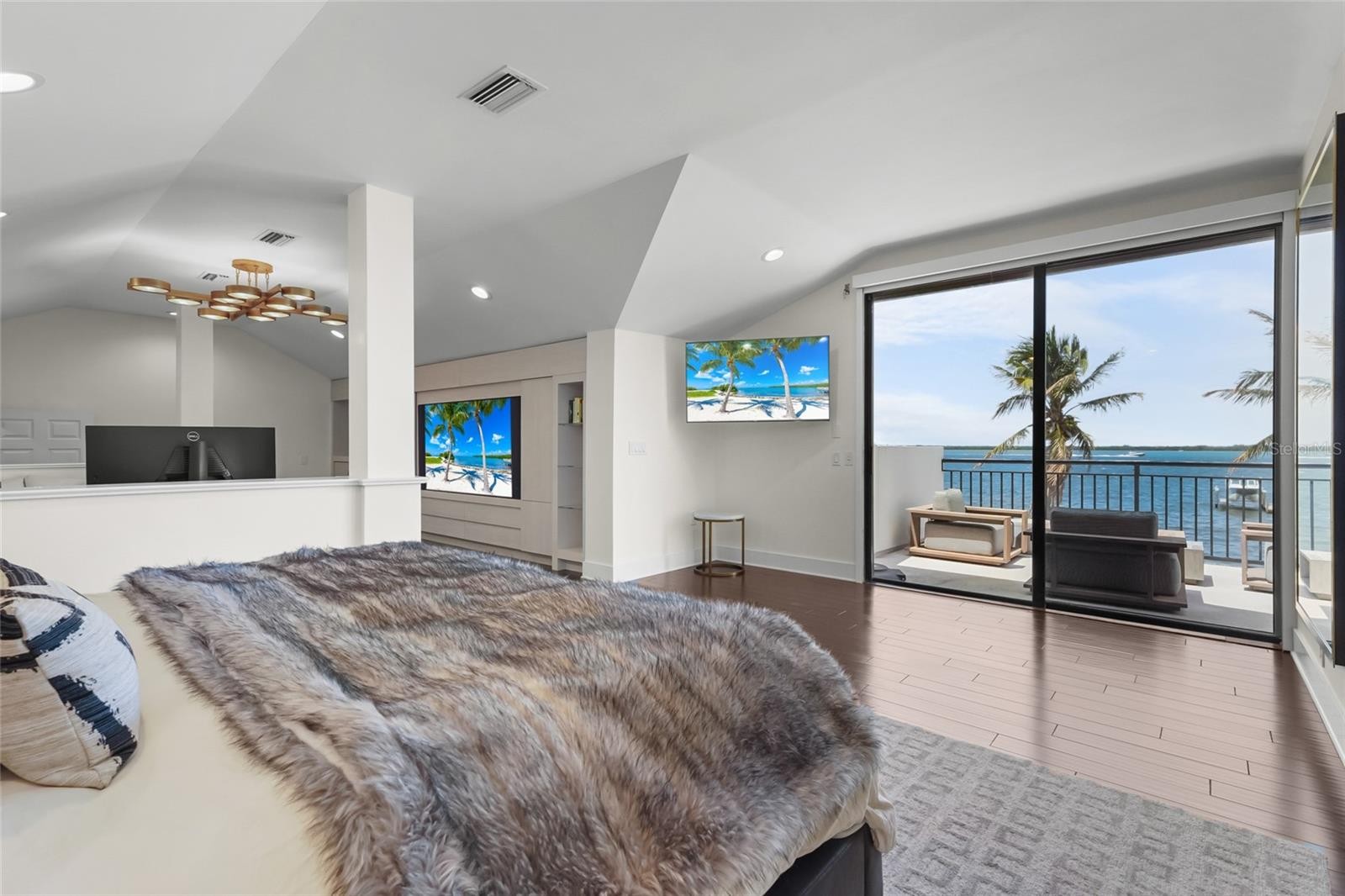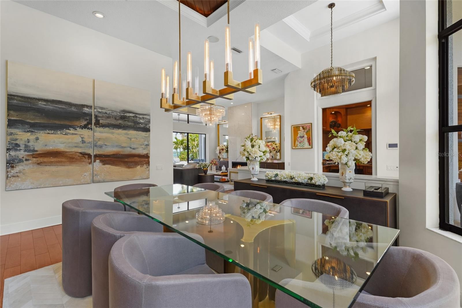 A rare waterfront estate along the Manatee River. Set on a private homesite with expansive water views stretching toward the Skyway Bridge, this property offers a unique combination of land, water frontage, and open water views. From sunrise reflecting across the river to evening sunsets along the horizon, the setting is centered around the water. The first floor is designed for a seamless blend of living and entertaining, featuring a primary suite with water views and a spa-like en-suite bathroom with a walk-in shower overlooking tropical greenery and a soaking tub positioned near large windows. Two additional bedrooms and two and a half bathrooms complete the level. Formal living and dining spaces—including a dining room with wine wall, a living room with fireplace, and a custom study with rich wood built-ins and West Indies-inspired architectural detailing—flow effortlessly into an expansive family room overlooking the water. At the center of the home, a high-end kitchen anchors the living space, opening to the main areas where walls of glass frame the water beyond and create a natural gathering point.Upstairs, a loft-style en-suite retreat offers a sense of privacy and flexibility, complete with custom wall cabinetry, a full bathroom, walk-in closet, and access to a private balcony with water views—well suited for guests or additional living space. Outdoor living is thoughtfully arranged to maximize the waterfront setting. A covered patio features an outdoor kitchen and grilling area, complemented by an outdoor shower. Just beyond, the infinity-edge pool and integrated spa are positioned along the water’s edge, creating a seamless visual connection to the water. A sun shelf and generous deck space provide multiple areas for lounging and entertaining, all oriented toward the expansive views. For boating enthusiasts, a deep-water dock with T-head platform, 16,000-pound boat lift, and jet ski lift extends into open water with access to Tampa Bay and the Gulf of Mexico. A new seawall lines the waterfront. The approach is enhanced by an extended pavered driveway with multiple parking areas, complemented by a three-car garage, providing generous space for vehicles and guest arrivals. The home has been extensively updated, including a new roof, generator, well system, HVAC components, hurricane-rated window and transom installation, refinished and expanded outdoor living areas with updated lighting and landscaping, and a renovated outdoor shower. Interior improvements include new flooring, custom built-ins, renovated bathrooms, upgraded closet systems, and smooth-finish walls throughout, along with refined design details. Located near Robinson Preserve, De Soto National Memorial, the property offers convenient access to trails, kayaking, preserved land, and local markets. Gulf beaches, including Anna Maria Island and Longboat Key, are approximately 6–8 miles away, providing easy access to coastal destinations while maintaining a private residential setting.