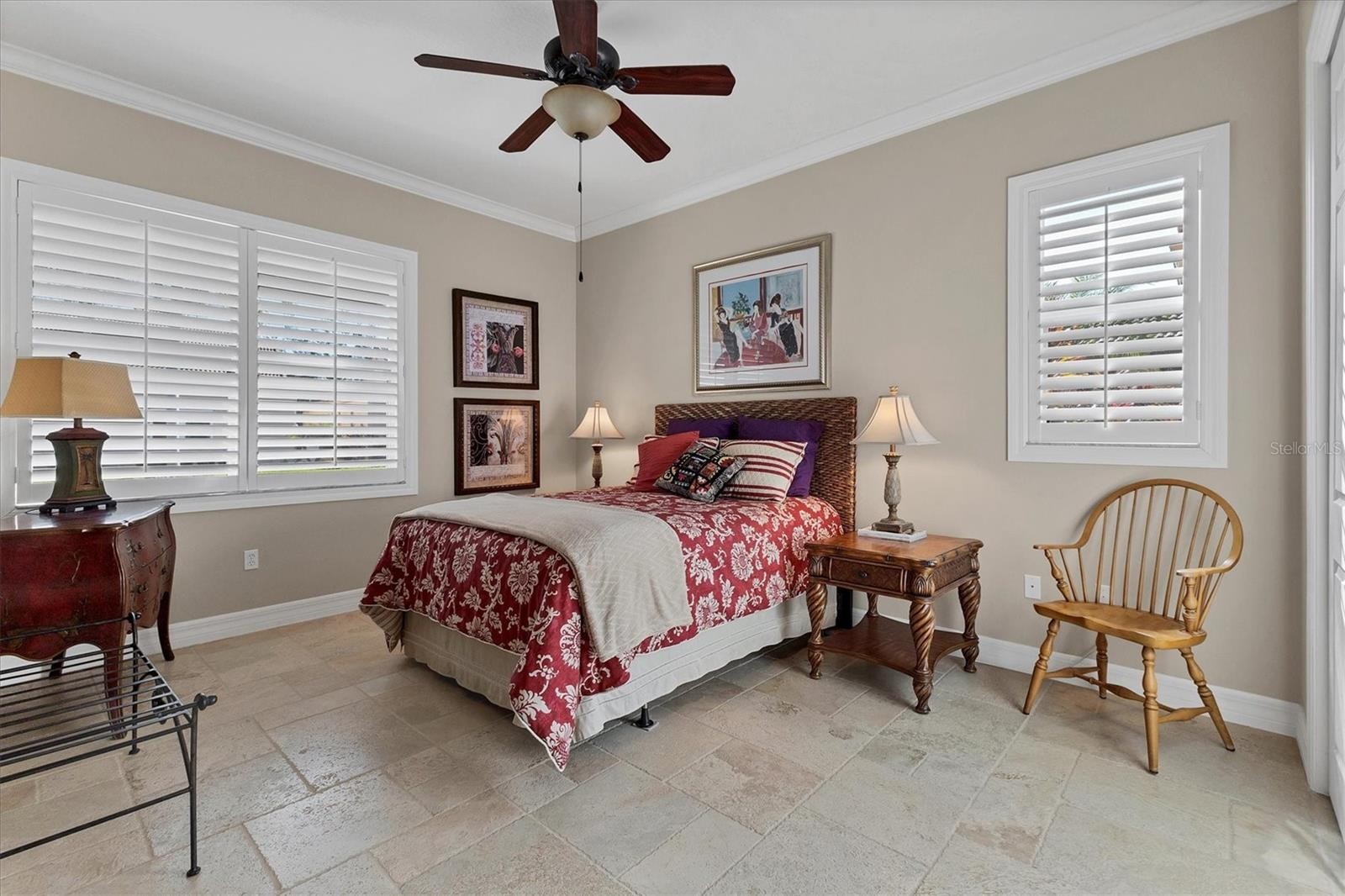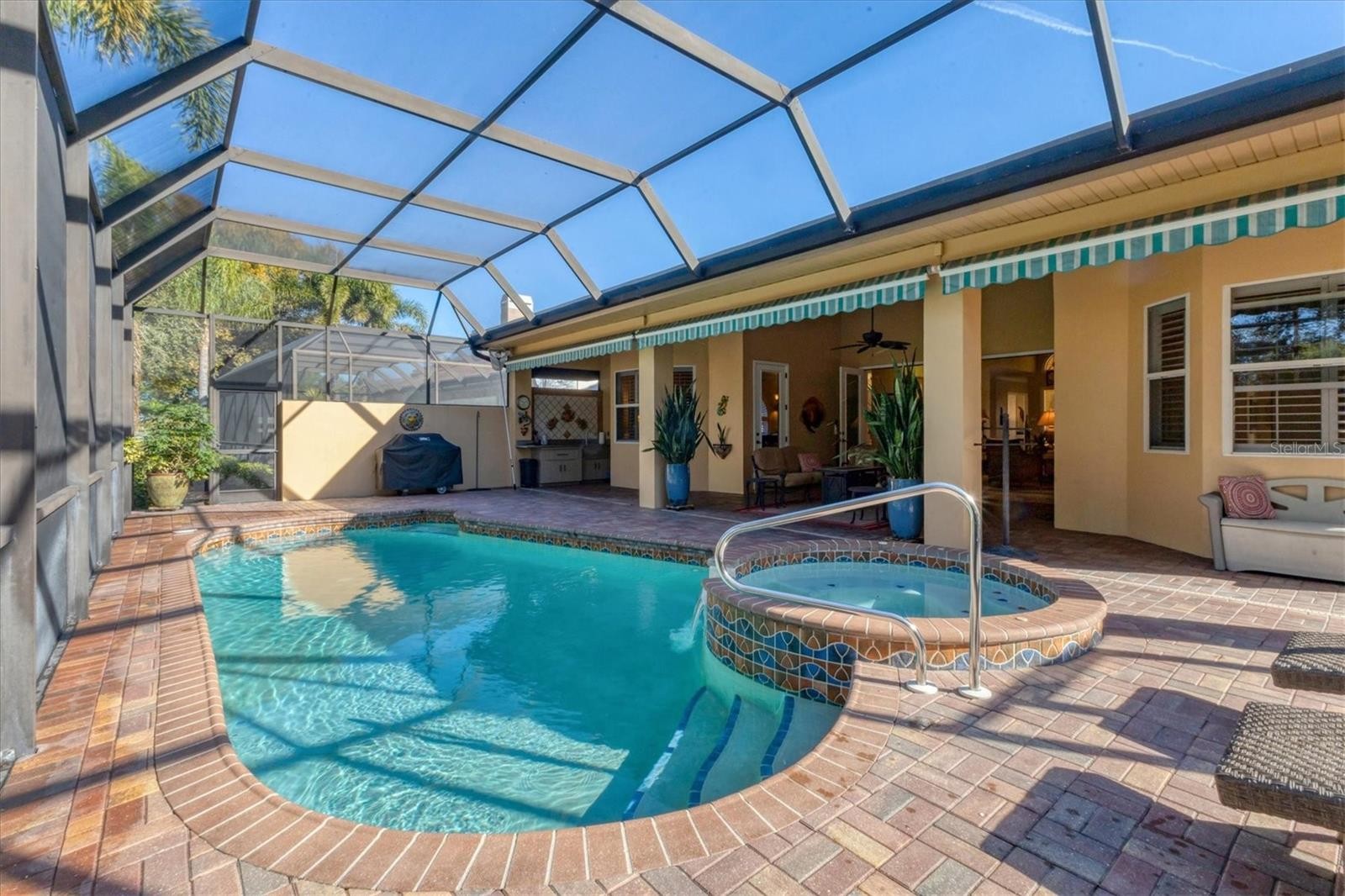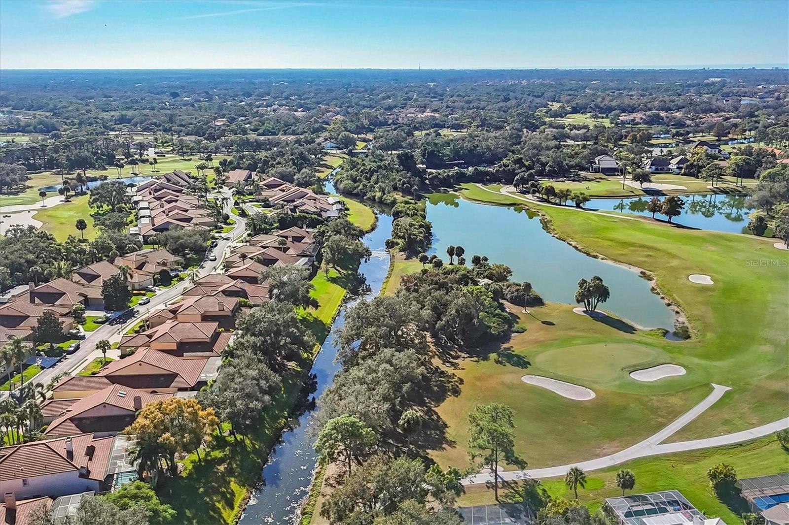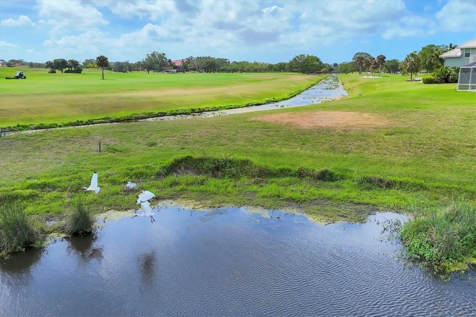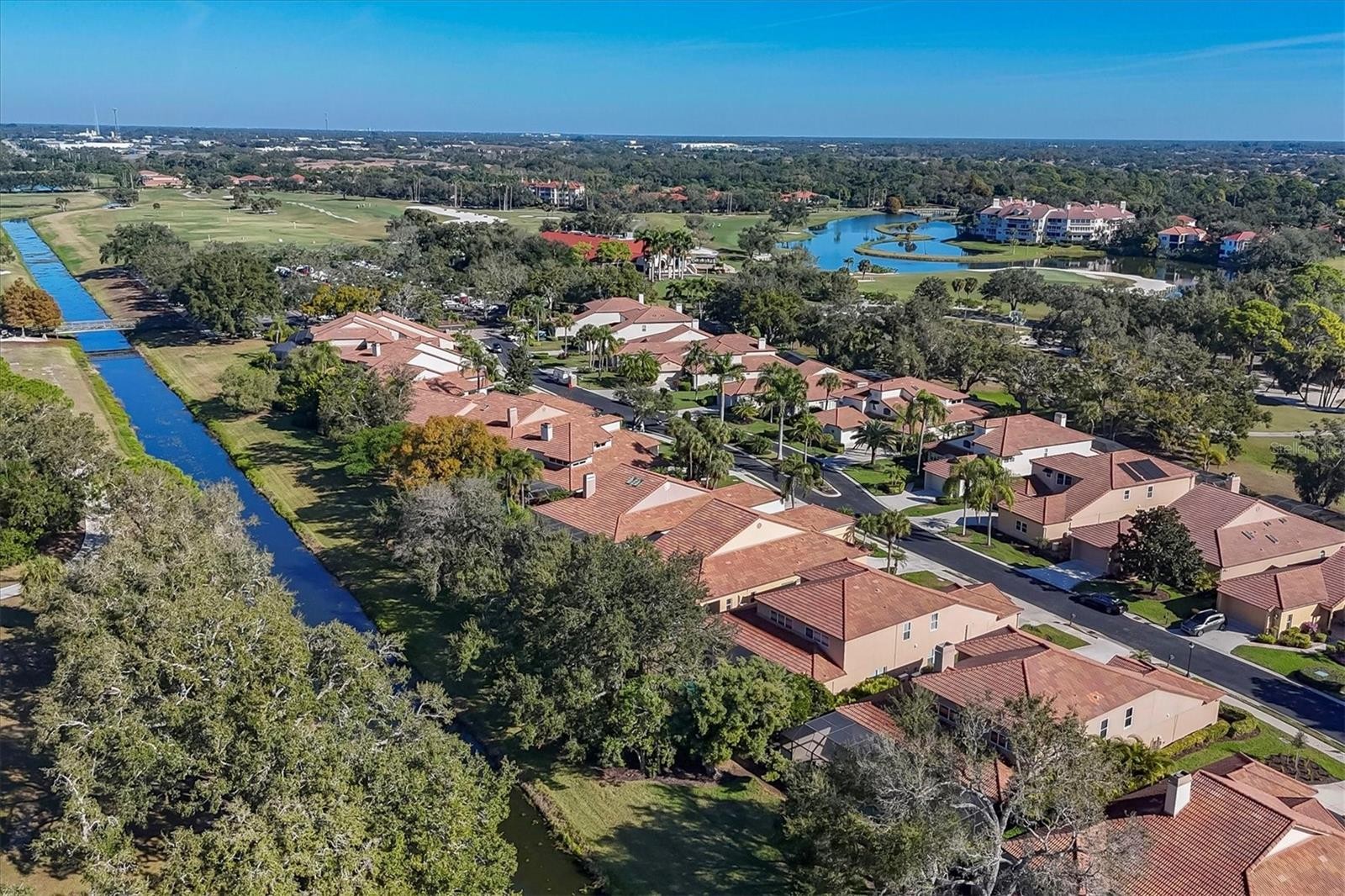 Located in the picture-perfect private gated community of TPC Prestancia, this one level free standing home is the perfect indoor-outdoor living arrangement with awesome views of water and the golf course. Beautifully maintained, the home features travertine flooring in most rooms, vaulted and trey ceilings, recessed lighting and plantation shutters on most windows. From the moment you enter, every where you look portrays an inviting welcome. The main living area has two French doors that extend the living area to the expansive screened-in outdoors with an in-ground pool with spa, wet bar and two separate sitting areas; one with a fire pit and one under cover. The kitchen is open to the living room and the family room. The bedrooms are a split plan with the primary bedroom viewing the pool and outdoor areas and separate his and her bathrooms. Two car attached side entry garage. Residents of Prestancia enjoy 24-hour guard-gated security, beautifully manicured grounds, and the option to join the prestigious TPC Prestancia Golf Club, home to two championship 18-hole courses and a vibrant social community. The community provides landscape maintenance, exterior upkeep including roof repairs, pest control and dwelling insurance.