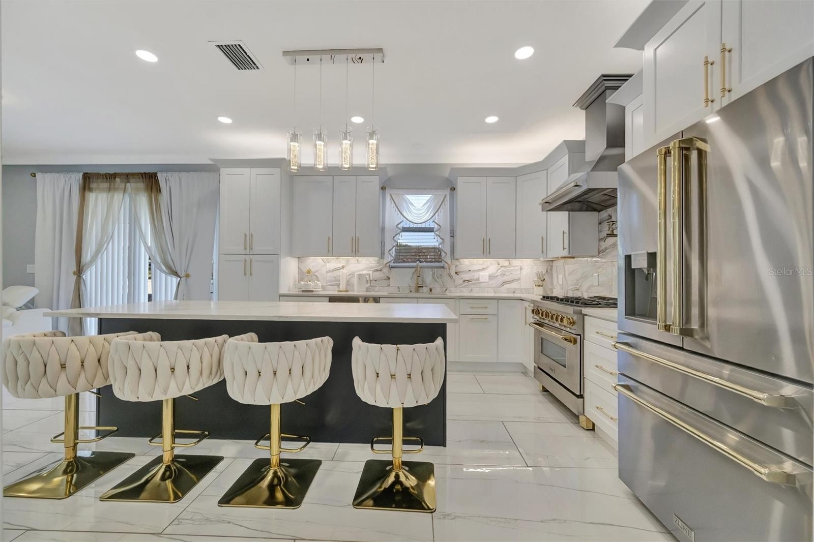 Beautifully crafted 2023 concrete-built home offering two stories of modern comfort, quality, and durability. This stunning residence features 5 spacious bedrooms and 4 full bathrooms, with elegant ceramic tile flooring throughout. The home boasts a large, beautiful, and luxurious kitchen designed to impress, featuring premium ZLINE appliances, including a high-end range and refrigerator, a stylish range hood, a spacious pantry, and luxury finishes and accessories—ideal for both everyday living and entertaining. Additional upscale features include solid wood interior doors, impact-resistant windows, an insulated garage, and a striking wood and wrought-iron staircase that adds architectural character. The impressive wrought-iron front door enhances both curb appeal and security. Enjoy a fully private backyard oasis complete with an outdoor kitchen, pergola, low-maintenance synthetic grass, and mature fruit trees—perfect for relaxation and gatherings. Ideally located just minutes from Sarasota–Bradenton International Airport, with easy access to US-301, and a short drive to some of Florida’s most desirable beaches, including Coquina Beach, Longboat Key, and Anna Maria Island. A perfect blend of upscale living, privacy, and unbeatable location.