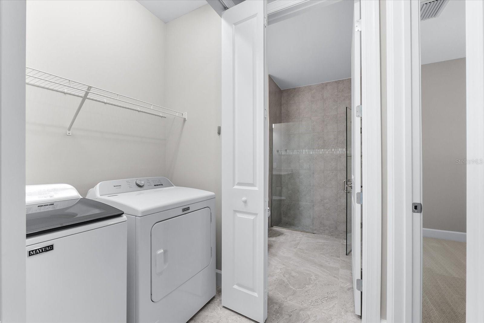 Secure this NEARLY NEW waterfront villa! Don’t miss your chance to embark on the “cruise ship” experience of active adult living in Del Webb, situated in the nation’s top master-planned community, Lakewood Ranch. Whether you’re an investor or seeking a home of your own, this opportunity is not to be overlooked. Shows like a model, this Seagrove beauty includes modern designer touches not to be missed. The Seagrove Villa, part of a 4-plex, boasts an open floor plan with 2 bedrooms and 2 bathrooms, a den, and an extended screened lanai with a stunning water view. The gathering room has ample space to entertain guests while the cook in the home will appreciate the convenient kitchen layout with ample light cabinets, a gas range, and a microwave. Boasting neutral porcelain tile in the main living areas and den, the bedrooms have upgraded plush carpet to provide comfort and style. The owner’s retreat has a water view while the ensuite comes with dual sink vanities and a walk-in frameless glass shower with tile to the ceiling, adding a contemporary touch. The guest room is strategically separated from the owner’s retreat, ensuring privacy for your guests. There is plenty of light shining through this charming property, making it bright and cheery. The 2-car garage is super clean with epoxy flooring and a utility sink. Act swiftly as these villas are in high demand! Don’t let this excellent opportunity slip away. Seize the chance to own a piece of the highly sought-after Del Webb community in Lakewood Ranch---a vibrant haven for active adult living.