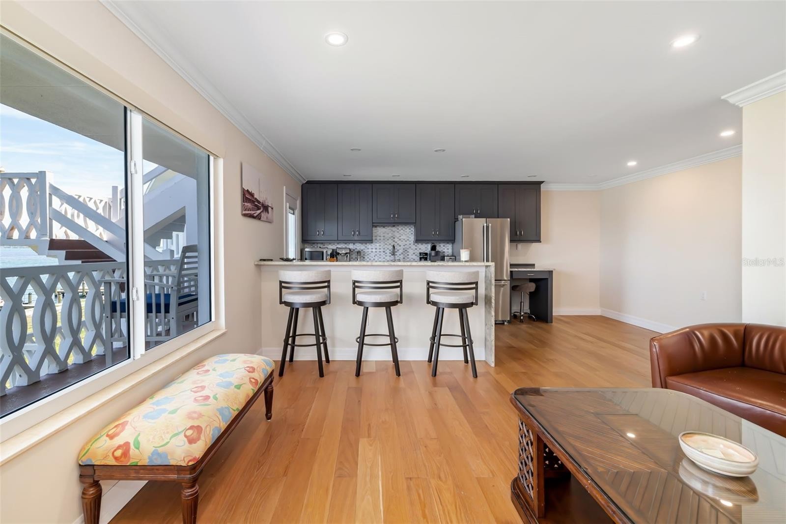 Few addresses in all of Sarasota deliver what 763 John Ringling Blvd offers every single day: direct, unobstructed views across Sarasota Bay with St. Armands Circle, Lido Key, and the sparkling Gulf of Mexico as your permanent backdrop. This is one of the most coveted waterfront corridors on the Gulf Coast, and this beautifully updated two-bedroom, one-bath residence puts you right in the middle of it. Step outside and you are standing on the bay seawall with private community boat docks at your feet and open water stretching to the horizon. Dolphins cruise the shoreline in the morning. The Ringling Causeway glows gold at sunset. The bayfront community pool, shuffleboard courts, and waterfront walkway give residents every reason to stay close to home, while St. Armands Circle sits just minutes away across the bridge with its world-class European-style dining, boutique shopping, and lush tropical gardens. Inside, the residence has been thoughtfully updated with hardwood floors, a refreshed kitchen with new appliances, and the rare convenience of an in-unit washer and dryer. The layout offers the right balance of comfort and ease, ideal for a full-time residence, seasonal retreat, or income-producing rental. The address itself carries genuine historical significance. Unit 22 sits within the Harding Circle Historic District, a landmark community envisioned by circus magnate John Ringling and listed on the National Register of Historic Places since January 2001. This is not just a home. It is a piece of Sarasota's founding story. Downtown Sarasota's waterfront arts district, marina, and restaurant scene are minutes away. Lido Beach is just over the causeway. For buyers relocating from the Northeast or Midwest, this property delivers the Gulf Coast lifestyle at an exceptional entry point: waterfront, walkable, and fully updated, with boat docking access and panoramic bay views that simply cannot be replicated at this price.