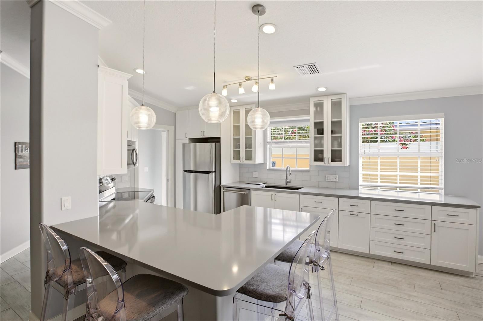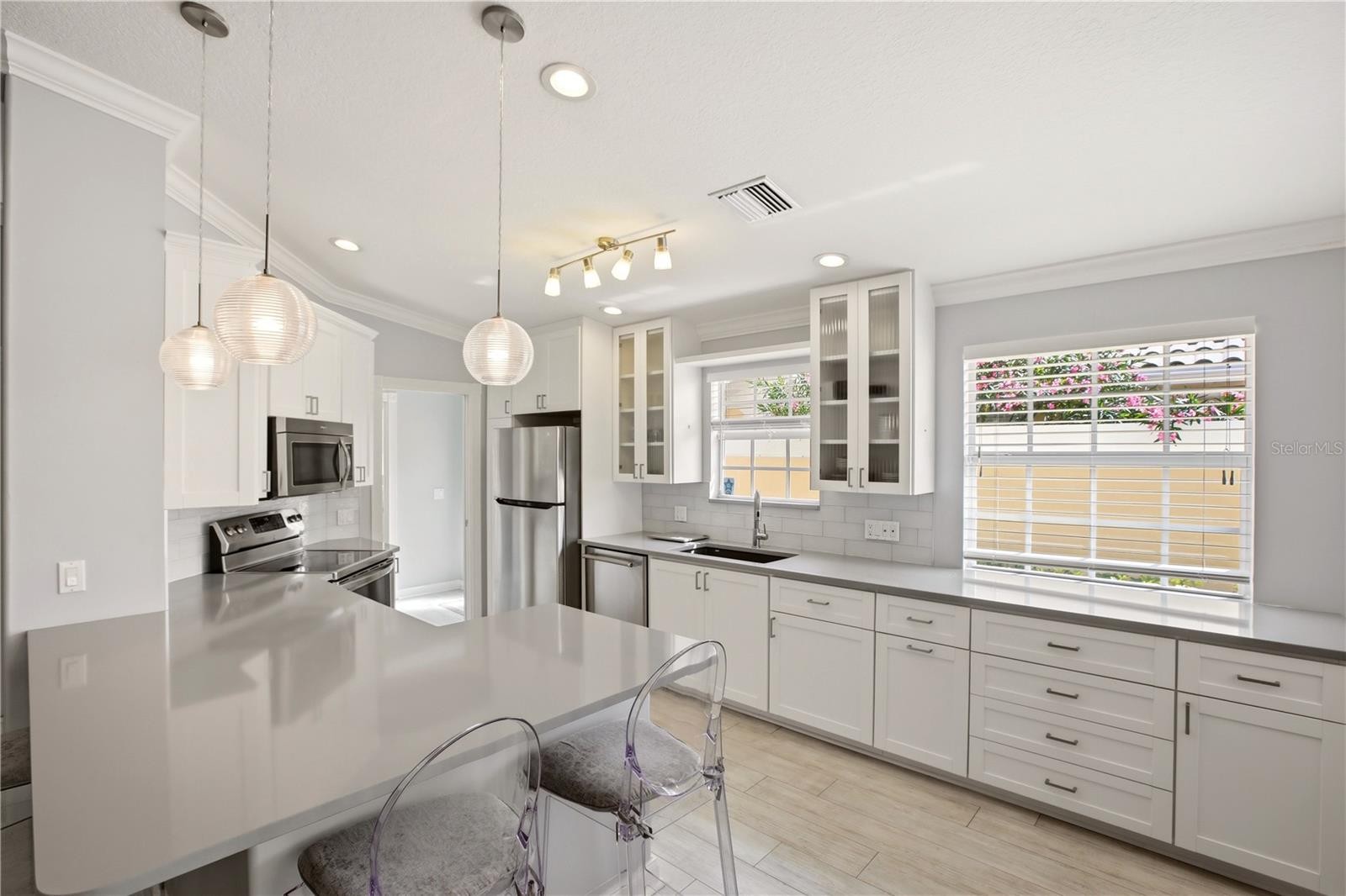 STOP LOOKING FOR THE 'RIGHT' VILLA...STOP searching for a 'deal', a 'VALUE'...STOP adding up how much renovations will cost you...the RIGHT home is ready for you...located in the one of the most desirable Gated communities in Sarasota...Village Walk. AND...it is TRULY...MOVE IN READY! You will be hard pressed to find a comparable property at this price with major renovations that don't look like grandma's ...FOR REAL! Let's talk recent improvements and vibe...THE KITCHEN...it was GUTTED...she now sports: 42 inch cabinetry, cool quartz countertops that were super extended, pendant lighting, stainless appliances (including a double oven), a modern twist on the classic subway tile for the backsplash, a deep sink and display upper cabinets. The floor plan couldn't be better! OPEN living and dining areas feature vaulted ceilings and crown molding accenting to really take advantage of the florida sunlight. Engineered hardwood in the main living areas adds cohesiveness to the decor. The villas have 2 separate and totally private bedroom suites. Both feature large walk in closets, large windows, and upgraded bathrooms. The Primary bath had a wonderful shower created to the tune of $12,000! Newer washer and dryer in the laundry room as well as upgraded counters and a sink. Many of these high end upgrades were made by the previous owner. So much so, that the current seller paid $535,000 in 2023! With a present list price of $429,900, you will walk into equity immediately! The homes in Village Walk were created by the well respected builders of DeVosta Homes LLC, known for their quality builds. Poured in place concrete with rebar...it does not get much better. Placement of the villas is really ingenious. Strategic walls throughout the community create private havens for all the homes. The extended, screened lanai, draws you to the outdoors...but you see NO ONE...just your landscaped rear lawn. HEAVEN Finally, the garage. Room for your vehicle AND the racing golf cart you know you want. Mini Split in the garage...YOU BET! Keeps your fancy car cool and certainly, creates a work space for that hobby you need to do outside your living room. Amenities? Village Walk wrote the book! 24 hour security and gate guard. You are greeted by the Bahamian vibe as soon as you pull in! Elegant club house, bocce ball courts, real tennis courts, lap pool, pickleball courts, gas station, restaurant, gym with Cybex equipment (if you know you know), and finally, yes, the tiki bar by the lagoon pool. Village Walk is a LIFESTYLE. Miles of wide walkways that can accommodate your bikes or carts. The neighborhood is resplendent with natural surroundings of lakes , mature landscaping, and birds, with numerous Venetian-like bridge walk ways throughout the community adding a beautiful visual feast. Get your Tommy Bahama on, pack your bags, and get ready to change your lifestyle. Whether for a 2nd home, or full time residence, stop looking for the perfect location...THIS IS IT! 10 minutes to the most beautiful beach in the USA...Siesta Key! A foodie paradise with a plethora of restaurant options. Top notch medical facilities. You will never be at a loss for things to do in beautiful Village Walk in Sarasota Florida. Come live the life you have been waiting for!