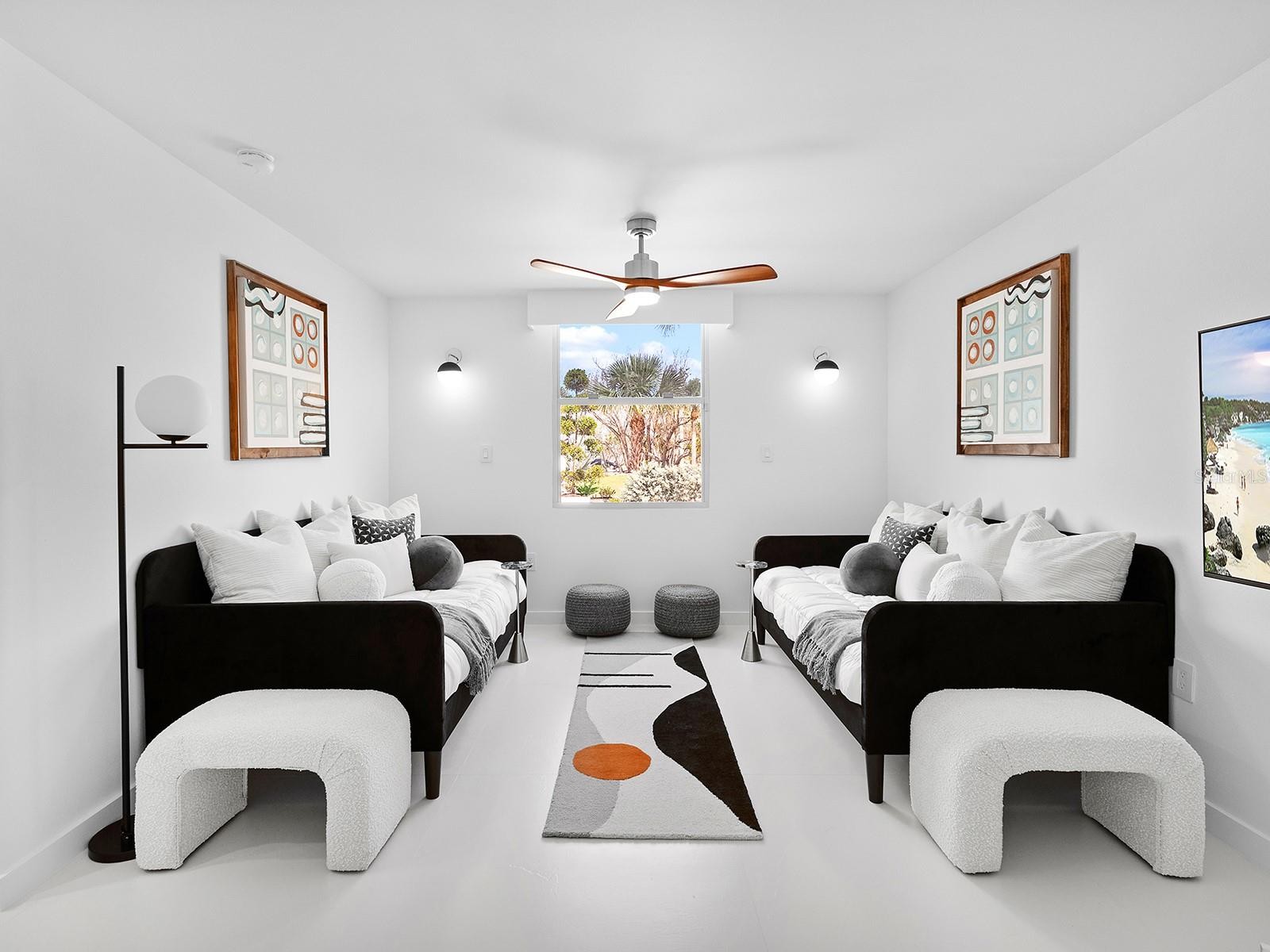 An architectural masterpiece reimagined for those with a passion for modernist living. The Ness House, named for its original owners who worked with architect Tim Seibert on a 1971 renovation, was originally built in 1961 using the innovative Lambo lithic poured concrete method developed by builder John Lambie Sr.—a pioneering example of Sarasota School of Architecture design. It features an advanced rainwater collection system and stays naturally cool with roof outlets and north-facing walls. Awarded historic designation in 2011, this waterfront retreat masterfully blends Seibert’s vision with modern, design-forward living, all in harmony with its lush subtropical setting. Set on nearly an acre with 135 feet along Heron Lagoon, the 4,006-square-foot home was meticulously renovated to enhance flow and entertaining. The minimalist yet inviting interior features large-format white tile floors, abundant skylights and seamless transitions between spaces. Clean lines, natural light and a strong connection to the outdoors define the living experience. The gallery-style foyer serves as a striking entry and an elegant space to showcase the home’s architecture and proficiency. Large solid wood and frosted glass sliding doors reveal a versatile space, currently a lounge but easily converted to an office or private guest room with its walk-in closet, floor-to-ceiling windows, built-in bookcase and separate entrance from the front door. Just beyond the private room and through the gallery, the home unfolds into the expansive family living area. The seating area, great room, and thoughtfully reimagined kitchen are designed for aesthetic appeal and everyday function. Outfitted with a Samsung induction cooktop, built-in oven and refrigerator, as well as an LG microwave, the kitchen’s minimalist composition is enhanced by a walk-in pantry featuring quartz countertops and concealed appliances, creating a seamless, gallery-like feel. A dramatic tiled counter-to-ceiling backsplash encloses an oversized picture view of nature, connecting interior life to the outdoors and beyond. The Florida room, wrapped in retractable glass, offers the ultimate flexibility—fully enclosed for intimate dinners or opened wide for breezy indoor-outdoor entertaining. The primary suite provides a tranquil sanctuary with designated seating, sleeping and dressing areas. The en-suite bath combines clean-lined surfaces with warm wood accents, stone countertops, a soaking tub, and a walk-in shower, creating a spa-like ambiance. Three well-appointed guest bedrooms include two with private courtyards, one features an en-suite bath, while the other two share a beautifully designed full bath. Designed for entertaining, the home’s open gathering spaces flow seamlessly to a striking outdoor setting with a covered kitchen, bar seating, grill, beverage area, spacious lounge and dining zones, and an open-air space for yoga, meditation or evening soirées. True to its roots in the Sarasota School’s philosophy, the feeling of being outside when inside the home is seamless. Native landscaping, shell-inlaid hardscape, and a one-of-a-kind Ipe wood treehouse are thoughtfully designed to withstand the test of time. In the gated Sanderling Club—a private enclave with 24-hour security, a private beach and marina access—The Ness House is a celebration of art, architecture and the Florida lifestyle at its most refined.