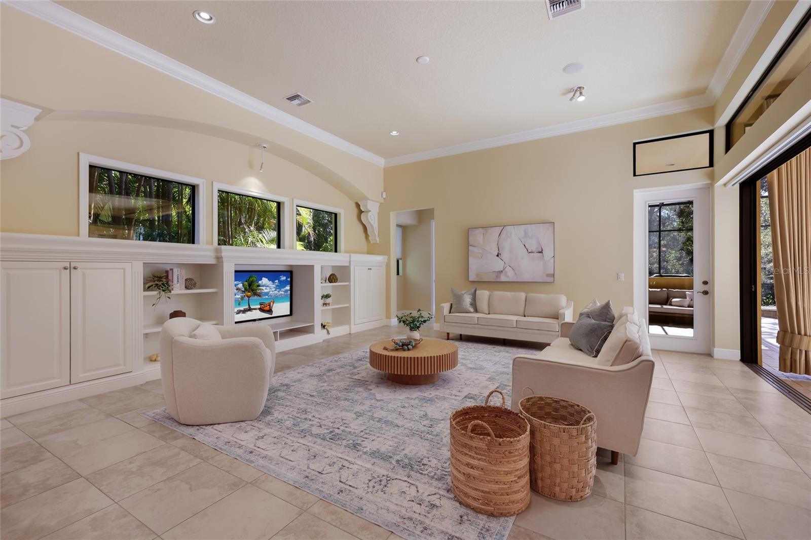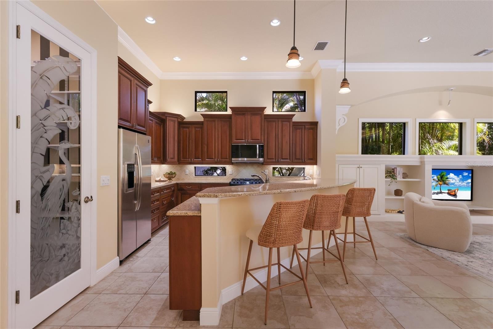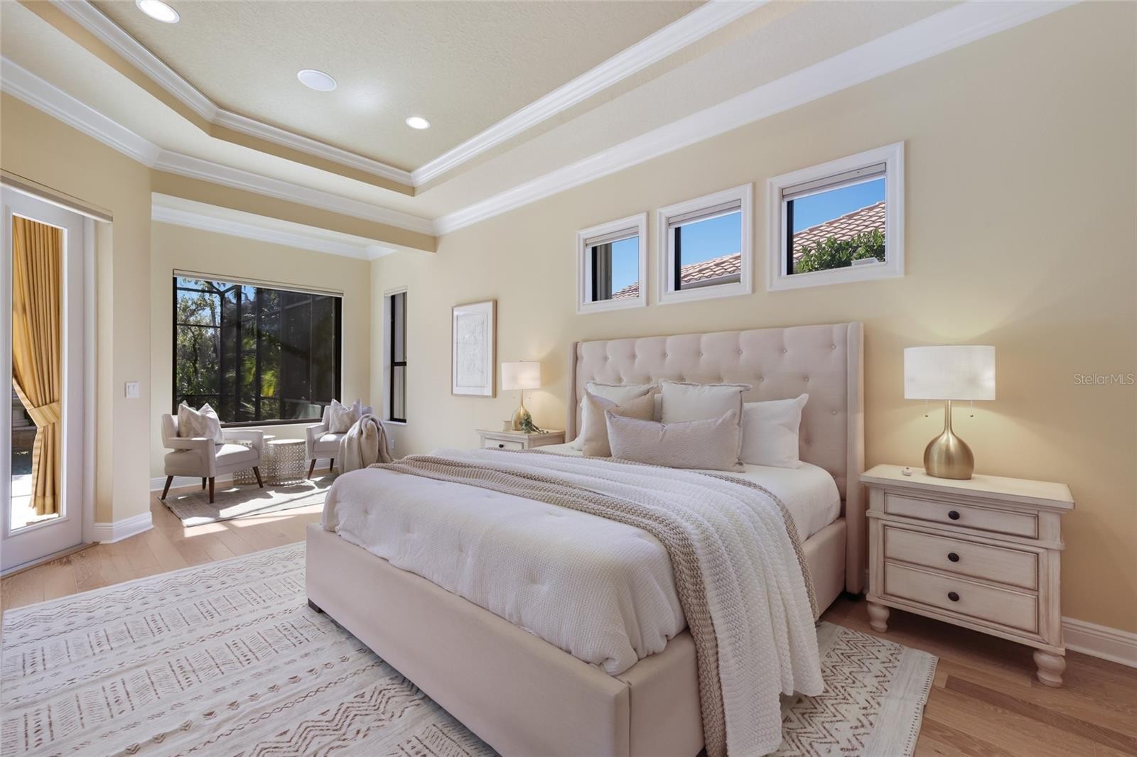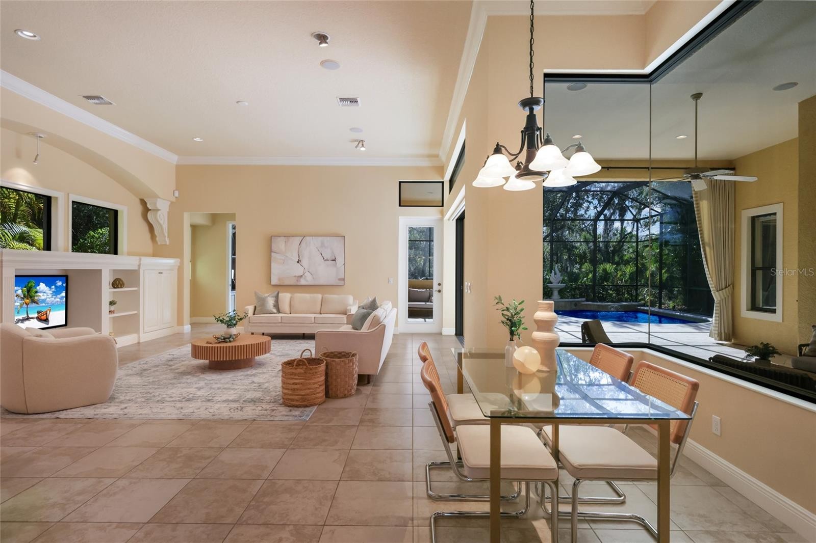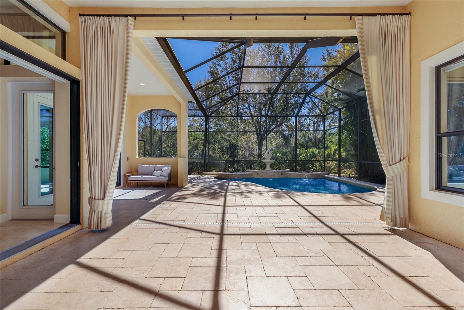 Under contract-accepting backup offers. Situated on a lushly private and open south-facing preserve setting in The Country Club of Lakewood Ranch, this one-story three bedroom plus den residence showcases elegant architectural detailing throughout, volume coffered designer ceilings, a combination of IMPACT windows/sliders and hurricane protection throughout, and even a GENERATOR. Enlarged by four feet from Neal Signature’s original Salerno floor plan offering 2,805 square feet of one-story living with an inviting lanai, abundant under cover entertainment spaces, a large heated pool, travertine decking, and pre-plumbed for an outdoor kitchen. Seamlessly connecting this resort-styled lanai to the oversized great room, living room, kitchen and den are glass doors that reveal a large open living concept with voluminous designer ceilings, large scale windows, crown moldings, corinthian columns and built-in details. Chefs will delight in the well appointed kitchen with sprawling counters, wood cabinetry, stainless steel appliances, wine fridge, a large walk-in pantry, an oversized breakfast nook area, and a light-filled formal dining room. Relax and unwind in the elegant owner’s retreat offering two walk-in closets, direct lanai access, wood flooring, remote window coverings, and a spa-like bath with a dual sink vanity, large soaking tub, invigorating shower and separate water closet. Guests will be right at home in this split bedroom floorplan with two additional guest suites with plantation shutters, newly installed carpeting, and centered by a full bath. Additionally this fine residence offers a privately situated den with built-in office, double tray ceilings, plantation shutters, and the home’s third full bath strategically positioned with direct access off lanai doubling as the home’s pool bath. Other notable highlights of this all encompassing 3,773 total square foot residence in the gated and maintenance-included enclave of Silverwood includes, GENERATOR, a combination of hurricane enclosures and impact windows/slider, 2024 and 2019 AC units, a large laundry room with sink and cabinetry, 8’ interior doors, a 2024 pool heater, and a two-car garage. Within the #1 top-selling master-planned community Lakewood Ranch, known for its vibrant lifestyle and proximity to dining, shopping, polo, community events, etc. PLUS non-mandatory membership opportunities to become a member of Lakewood Ranch Golf & Country Club, which include four 18-hole championship golf courses, tennis, state-of-the-art Fitness center, clubhouses, junior Olympic-sized pool, pickleball and more.