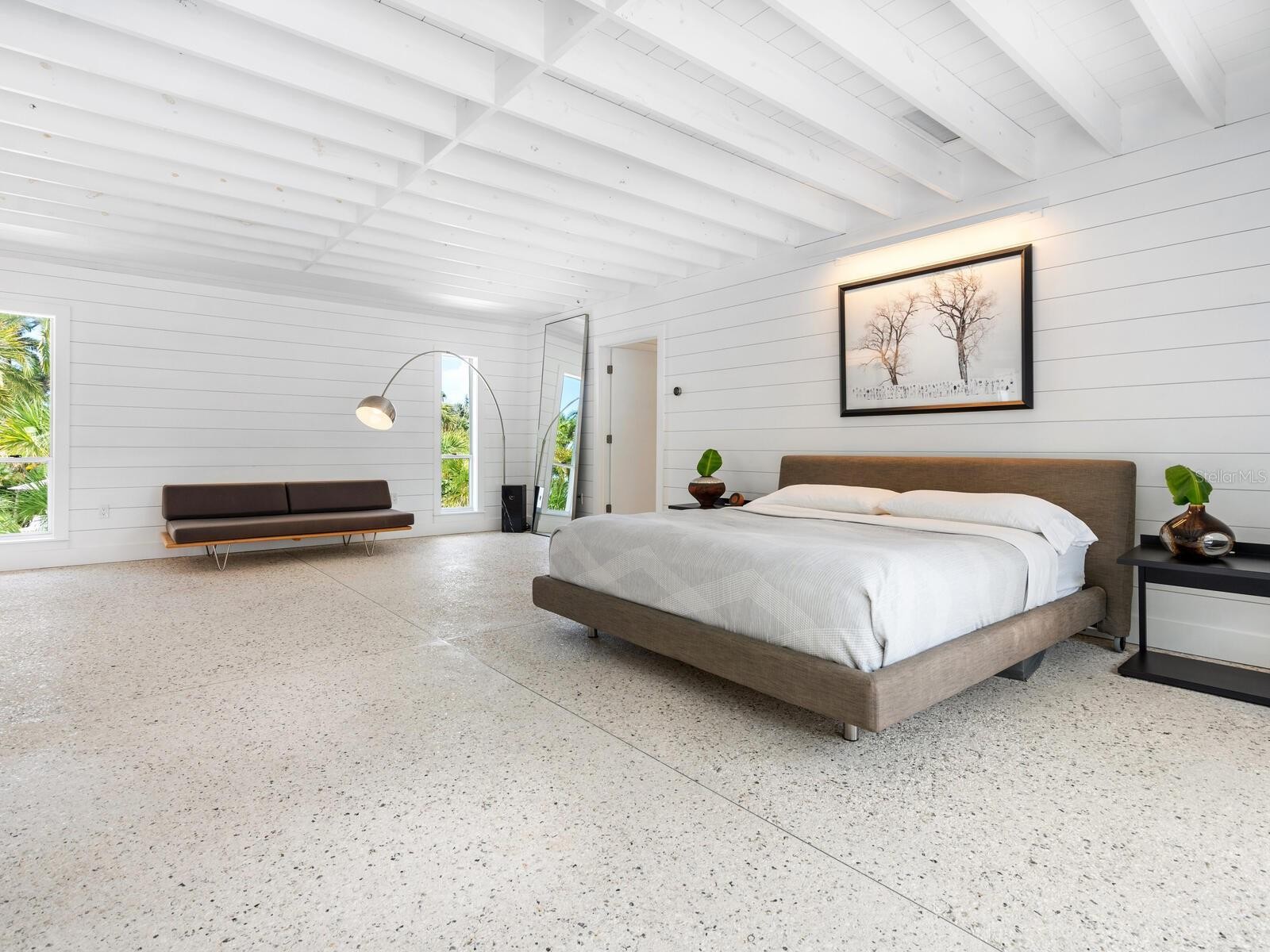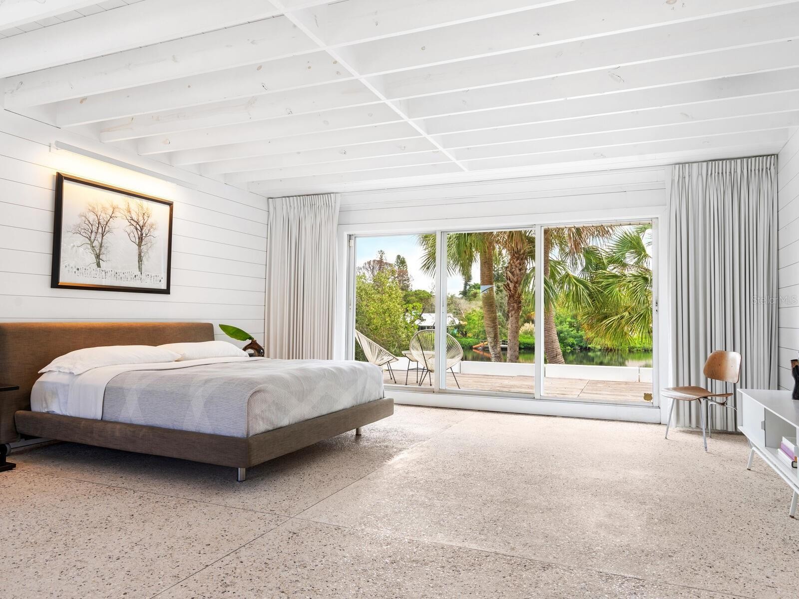 Photos 1–3 showcase preliminary renderings of a proposed architectural concept for this exceptional property. Envisioned as a modern coastal retreat, the design celebrates the relaxed luxury of mid-century architecture while maximizing the natural beauty of its surroundings. This residence is a modern coastal retreat set on over an acre and blends luxury with the charm of mid-century design. Enjoy the property just as it is or explore the endless possibilities for building your dream home or compound to take advantage of endless water and sunsets views. This residence greets you with an expansive circular shell stone driveway, offering a grand approach to the home. Upon arrival, you’re welcomed into an open entryway that flows into the main living areas. The living room offers a relaxed setting with terrazzo floors, built-in shelving, a large picture window, and a cozy fireplace framed by shiplap accent walls. Tri-fold glass doors open to a bright Florida room, also with terrazzo floors, creating seamless indoor-outdoor living. A distinctive concrete wall separates the space from the dining area with built-in bar seating. The kitchen features custom soft-close cabinetry, quartzite countertops, and Bosch appliances—including a gas cooktop, oven, refrigerator, and dishwasher—framed by large windows with peaceful lagoon views. Outside, enjoy a shell-crete pool deck with ample room for lounging and dining. A heated pool, shuffleboard court, and firepit seating area complete the inviting outdoor space. Upstairs, a flexible bonus room includes built-in closets, water-view windows, and a full bath with a tub/shower, vanity, and stylish tile. Step out to the rooftop deck with panoramic views of the pool, grounds, and Heron Lagoon. The primary suite offers high beamed ceilings, shell-crete floors, sliding glass doors to a private lagoon-view deck, and an en-suite bath with a floating dual-sink vanity, glass walk-in shower, private water closet, and linen closet. A custom walk-in closet with built-ins and soft-close drawers completes the suite. Two guest bedrooms, a full guest bath, a butler’s pantry, spacious laundry room, and half bath round out the main level. Despite being impacted by the 2024 hurricanes, the house and property have recovered quickly. The Sanderling Club has released renderings that envision a new era for its historic clubhouse and private waterfront setting. The Miami-based architectural firm STRANG has designed a new residence for the expansive site. The elevated design highlights the opportunity for tremendous Gulf views. The property’s unique setting amidst Heron Lagoon and the Gulf of Mexico allows for stunning vistas of sunrises and sunsets. This property is one of the largest lots on Heron Lagoon in Sanderling – prime for redevelopment as it would offer amazing views and is large enough to accommodate a significant home/compound. The property is located minutes from Siesta Key’s crystal quartz sand beaches and Siesta Village for shopping and restaurants. Culturally rich downtown Sarasota restaurants, theater, ballet, opera, museums, galleries, and shopping are a short drive away.