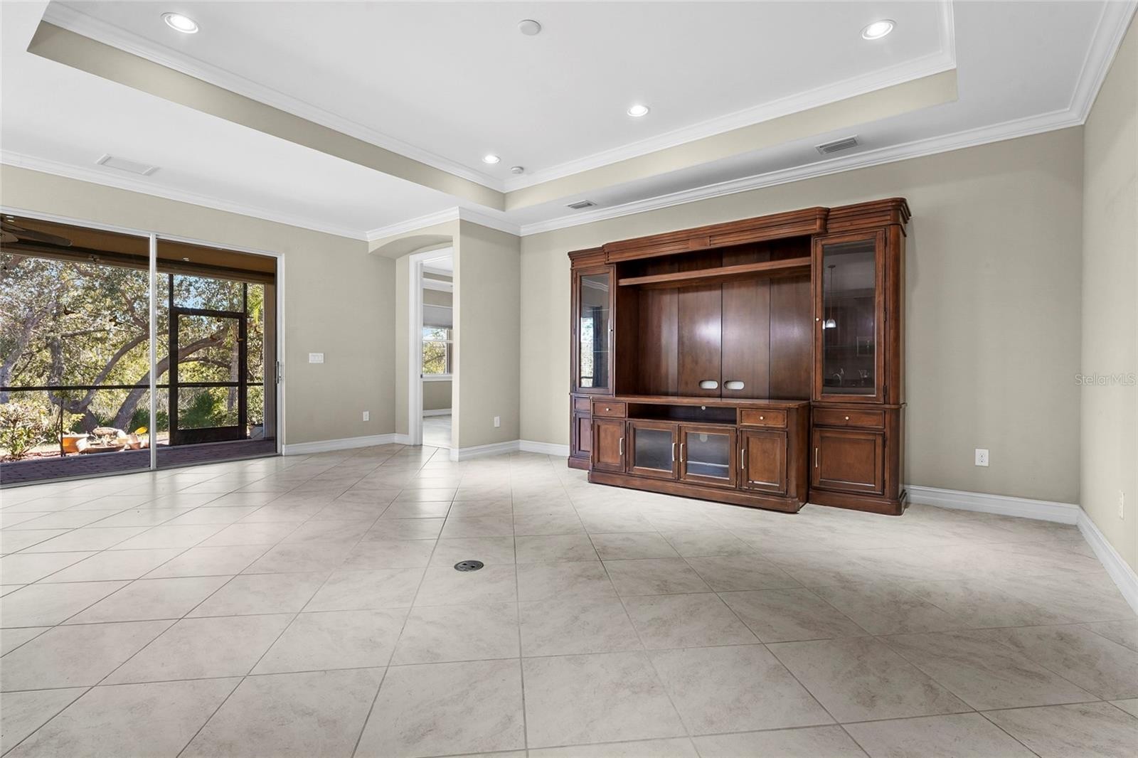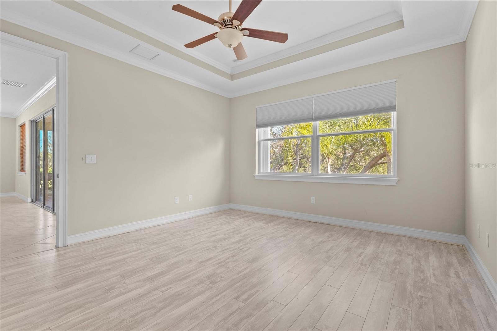 Located in the gated, active-lifestyle community of Talon Bay, this beautifully appointed home offers a rare blend of resort-style living and serene natural surroundings. Set within 100 acres of lush landscaping, scenic lakes, and nature preserves, Talon Bay features a clubhouse with a fitness center, meeting space, heated community pool, tennis courts, outdoor kitchen and dining patio, private kayak and canoe launch, and miles of walking and biking trails surrounded by six lakes and 15 acres of preserved land. Built in 2016, this DR Horton Edison custom floor plan offers 3 bedrooms, 2 bathrooms, plus a den, designed with an open and functional layout ideal for both everyday living and entertaining. The home is enhanced by crown molding throughout and tray ceilings in the family room, primary bedroom, and primary bathroom. The kitchen features stainless steel appliances, granite countertops, and rich dark cabinetry, seamlessly opening to the main living areas finished with tile flooring. Laminate plank flooring is found in two bedrooms and the den, with carpet in one bedroom for added comfort. The spacious primary suite offers dual walk-in closets and a spa-inspired bathroom with dual sinks, a soaking tub, and a walk-in shower. Additional highlights include accordion hurricane shutters, an extended-width driveway, a brand new AC, water heater approximately 2–3 years old, both with a 10-year transferable warranty for peace of mind. Low HOA and no CDD fees make this home a perfect pick. Step out onto the lanai and enjoy tranquil riverfront views of the Myakka River, creating a peaceful outdoor retreat rarely found. This home delivers comfort, quality, and lifestyle in one of North Port’s most sought-after gated communities.