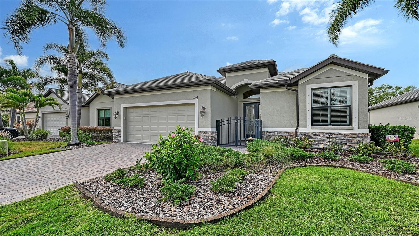 One or more photo(s) has been virtually staged. Discover exceptional value in one of Sarasota’s most desirable locations. This meticulously maintained, maintenance-free home in the gated community of Riva Trace offers the perfect blend of quality, convenience, and lifestyle—all with low HOA fees and no CDD. Built in 2013, this thoughtfully designed three-bedroom, two-bath residence showcases upscale finishes throughout. Inside, you’ll find diagonal tile flooring spanning the entirety of the home, soaring 10–12 foot ceilings, 8-foot doors, and an open, airy layout filled with natural light. The kitchen is both stylish and functional, featuring granite countertops, stainless steel appliances including a new refrigerator, gas cooking, glass tile backsplash, under-cabinet lighting, and solid wood cabinetry with pull-outs. Enjoy a newly remodeled walk-in shower in the primary bathroom. Additional upgrades include plantation shutters, hurricane protection, double-pane windows, built-in closet systems, designer lighting, and a whole-home air purification system. Step outside to an extended lanai overlooking a peaceful, private backyard with extra side-yard space—perfect for relaxing, entertaining, or gardening. A Sunsetter canopy and fenced area add flexibility for pets or outdoor enjoyment. Located just west of I-75 along the highly sought-after University Parkway corridor, this home places you minutes from everything. Enjoy close proximity to The Mall at University Town Center, featuring over 150 shops and restaurants, as well as easy access to downtown Sarasota, parks, and the area’s renowned Gulf Coast beaches. Residents of this intimate community of just 86 homes enjoy tile roofs, paver driveways, and a beautifully maintained setting. A rare highlight is private water access—offering a community park with a fishing and observation deck, canoe launch, and storage. Combining low-maintenance living with upscale features and an unbeatable location, this home is an outstanding opportunity—ideal for downsizing, seasonal living, or simply enjoying the best of Sarasota.