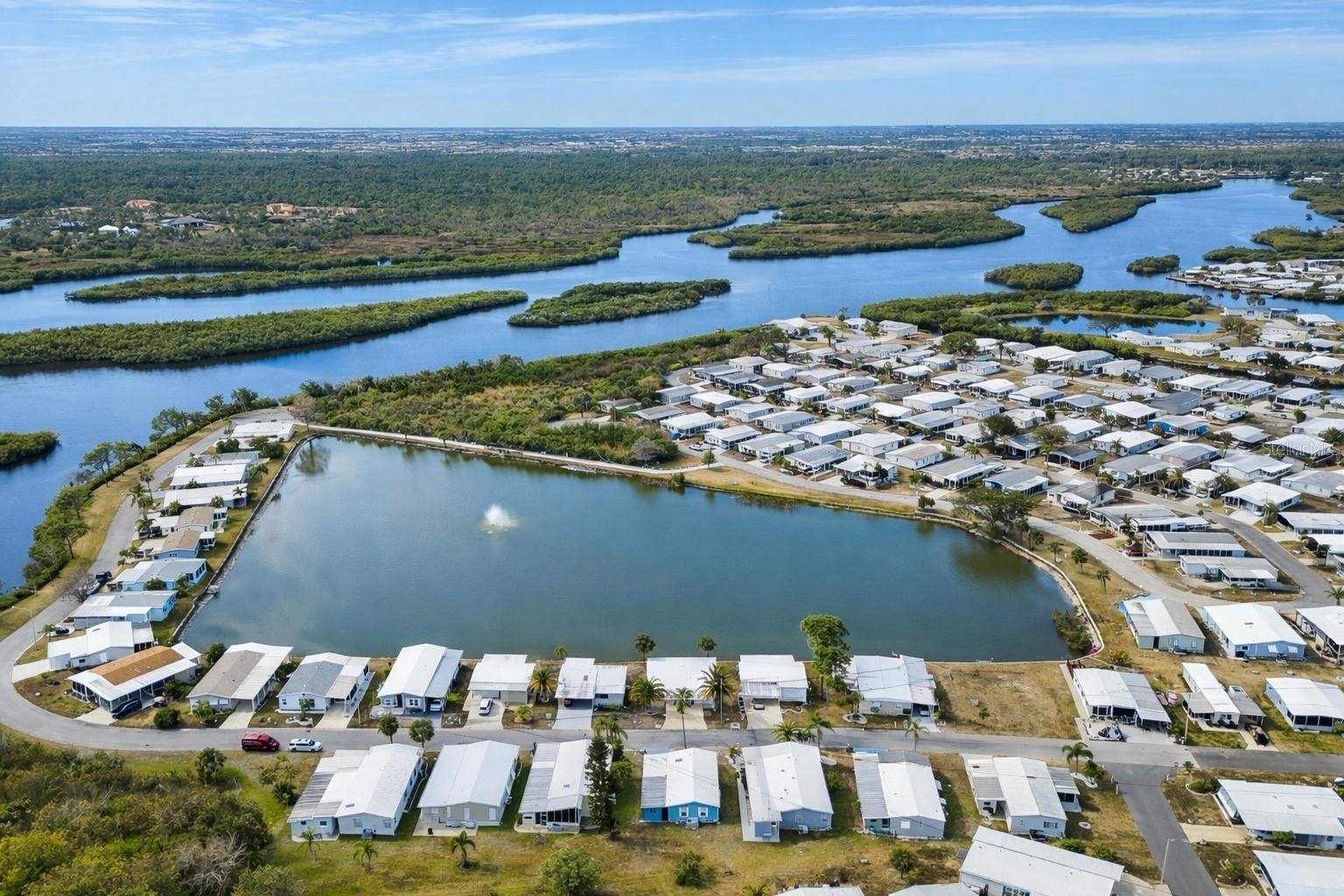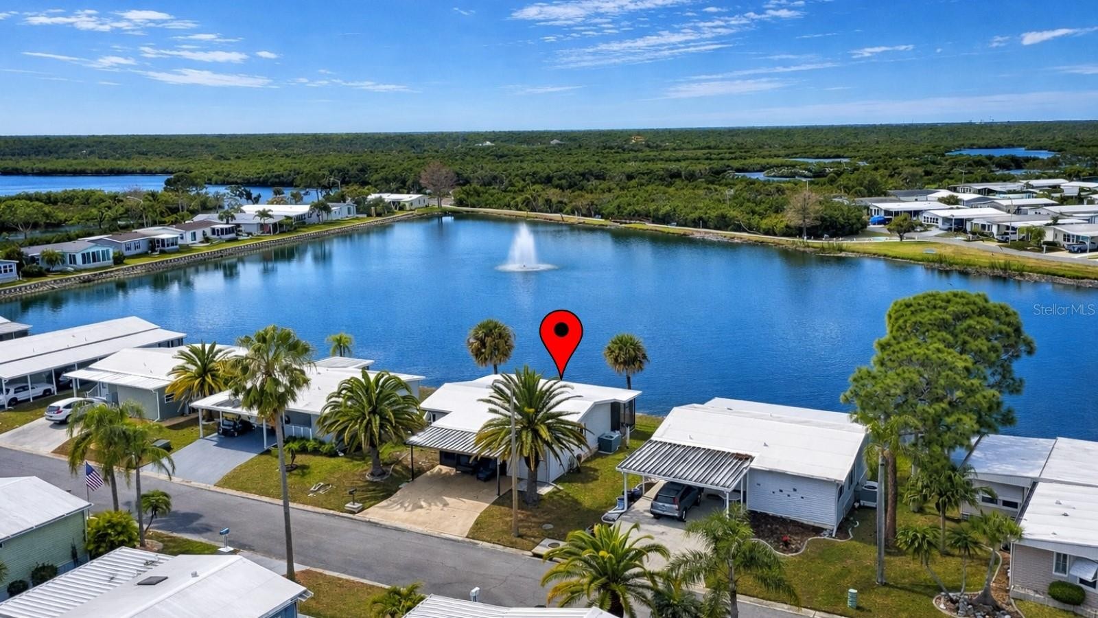A peaceful lakefront escape framed by spectacular sunset skies. Updated, modern turnkey home offered furnished and move-in ready for immediate enjoyment. Perfectly situated on Lake Imperial in the premier 55+ community of Harbor Cove. This home offers unobstructed, panoramic views of Lake Imperial and is just a short distance to the clubhouse and pools. Features: Roof 2023 All Weather Roofing: Membrane, Windows 2017, Kitchen Water Filter and Faucet 2025, Newer Floors. The spacious sunroom is a true highlight of the home, offering breathtaking sunset views over Lake Imperial. Filled with natural light, this inviting space is perfect for morning coffee, relaxing with a book, comfortably hosting overnight guests, or entertaining while enjoying serene water views and colorful evening skies. Generous extra-wide driveway allows for convenient parking for multiple vehicles and guests. Large primary bedroom featuring an ensuite bathroom and dual closets. Spacious guest bedroom with ample closet space. City water and sewer. NO LOT rent. Low monthly HOA fee of just $175 a month! Includes access to two sparkling heated pools, a relaxing spa, a well-equipped fitness center, a clubhouse overlooking the stunning marina, shuffleboard, horseshoes, pickleball, tennis, and bocce courts. Socialize and stay active with dances, parties, water aerobics, fitness classes, art classes, woodworking, golf cart parades, bingo, dances, and more. Boat clubs, a craft room, picnics on the patio, golf clubs, bowling clubs and much more. Community Boat Ramp with Access to the Myakka River that runs into the Gulf of America. There is plenty of wildlife to enjoy in this 190-acre community; herons, egrets, cranes, ibis, parrots, even alligators and manatees! Conveniently located within minutes of Downtown Wellen Park, Costco, shopping, restaurants, and a short drive to beautiful Gulf Beaches. Schedule a viewing today and let this dream home become your reality!