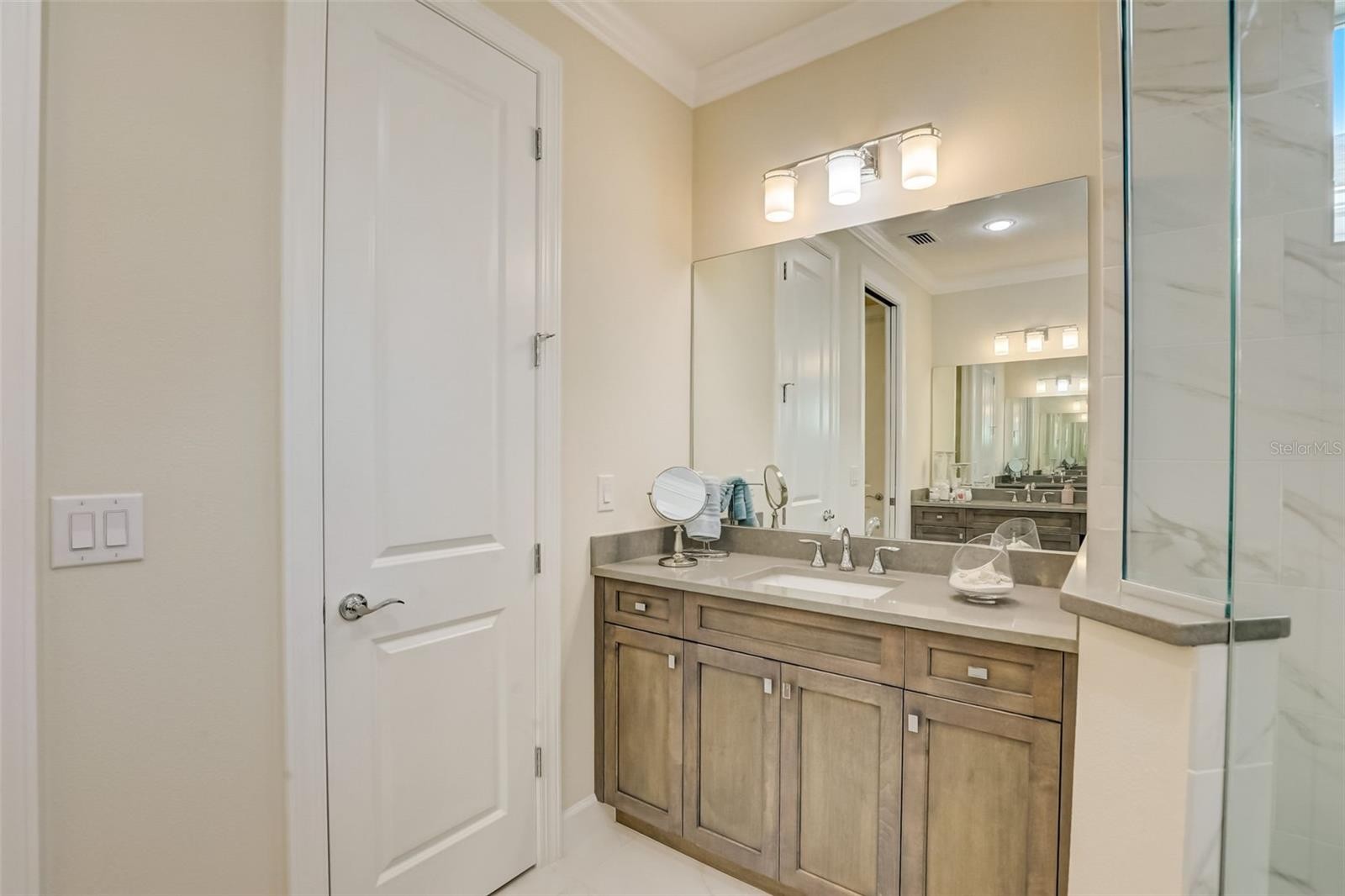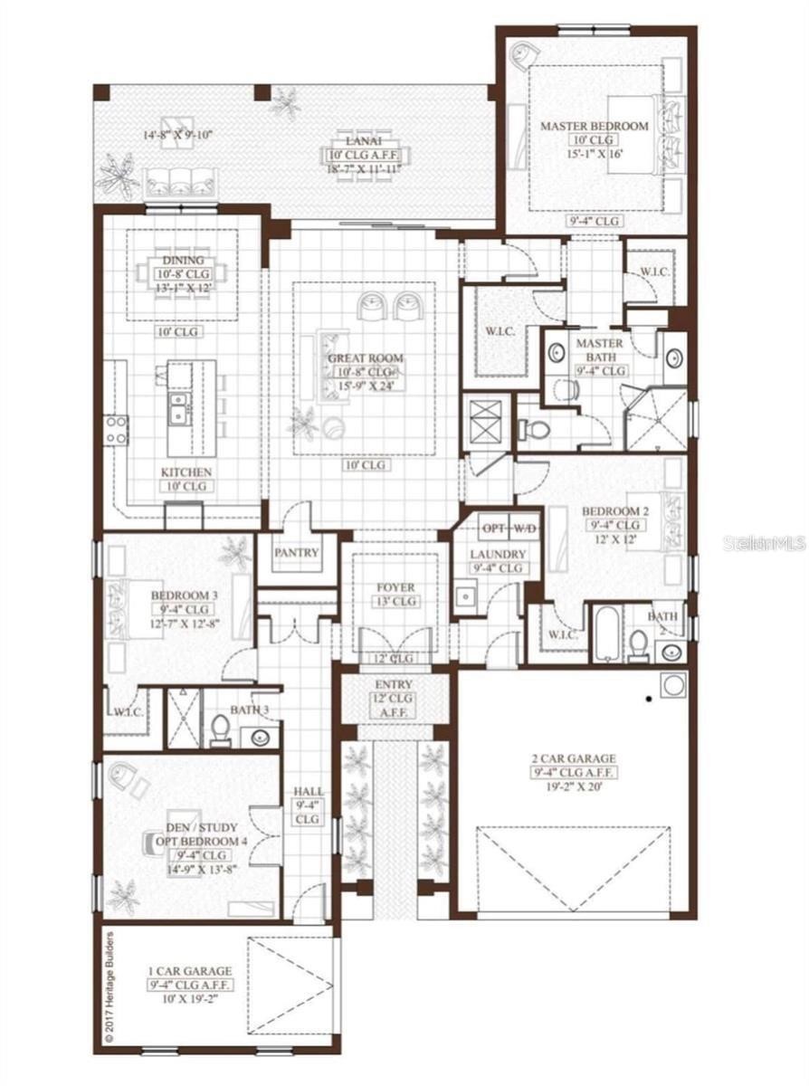 One or more photo(s) has been virtually staged. Welcome to your dream home! This stunning Magnolia designer model, quality built by the esteemed luxury builder Heritage Builders, offers an impressive 3 bedrooms, 3 bathrooms, and a versatile den, all within a spacious 2,600 square feet of expertly crafted living space. Ideal for multi-generational living, this home features two separate garages; one accommodating a single car and the other providing room for two, ensuring ample parking and convenience. Step inside to discover an award-winning open floor plan enhanced by soaring 12-foot ceilings and an abundance of natural light. Elegant laminated flooring and crown molding create a welcoming ambiance throughout. The gourmet kitchen is a chef's delight, featuring brand-new quartz countertops, a gas stove, custom cabinetry, and a walk-in pantry. Entertain effortlessly as the dining area opens directly to your heated saltwater pool and spa, beautifully illuminated by new pool lights and surrounded by lush landscaping for maximum privacy. The main bedroom offers direct pool access, a stylish tray ceiling, and two spacious custom walk-in closets. The spa-like en suite bathroom features porcelain tile and a generous shower for a truly indulgent experience. Outdoor entertaining is a breeze with the pre-plumbed area ready for your dream outdoor kitchen. This exquisite home also includes a new refrigerator, new garbage disposal, and a one-year home warranty for your peace of mind. Conveniently located just minutes from fantastic dining, premier golf courses, and the breathtaking Siesta Key beach, this residence boasts low HOA fees that cover lawn maintenance and pest control, with no CDD fees. Plus, it’s situated in a highly-rated school district, making it perfect for families. Don’t miss out on this exceptional lifestyle in a welcoming gated community; check out the attached Upgrades/Features Sheet for more details! Experience comfortable living at its finest today!