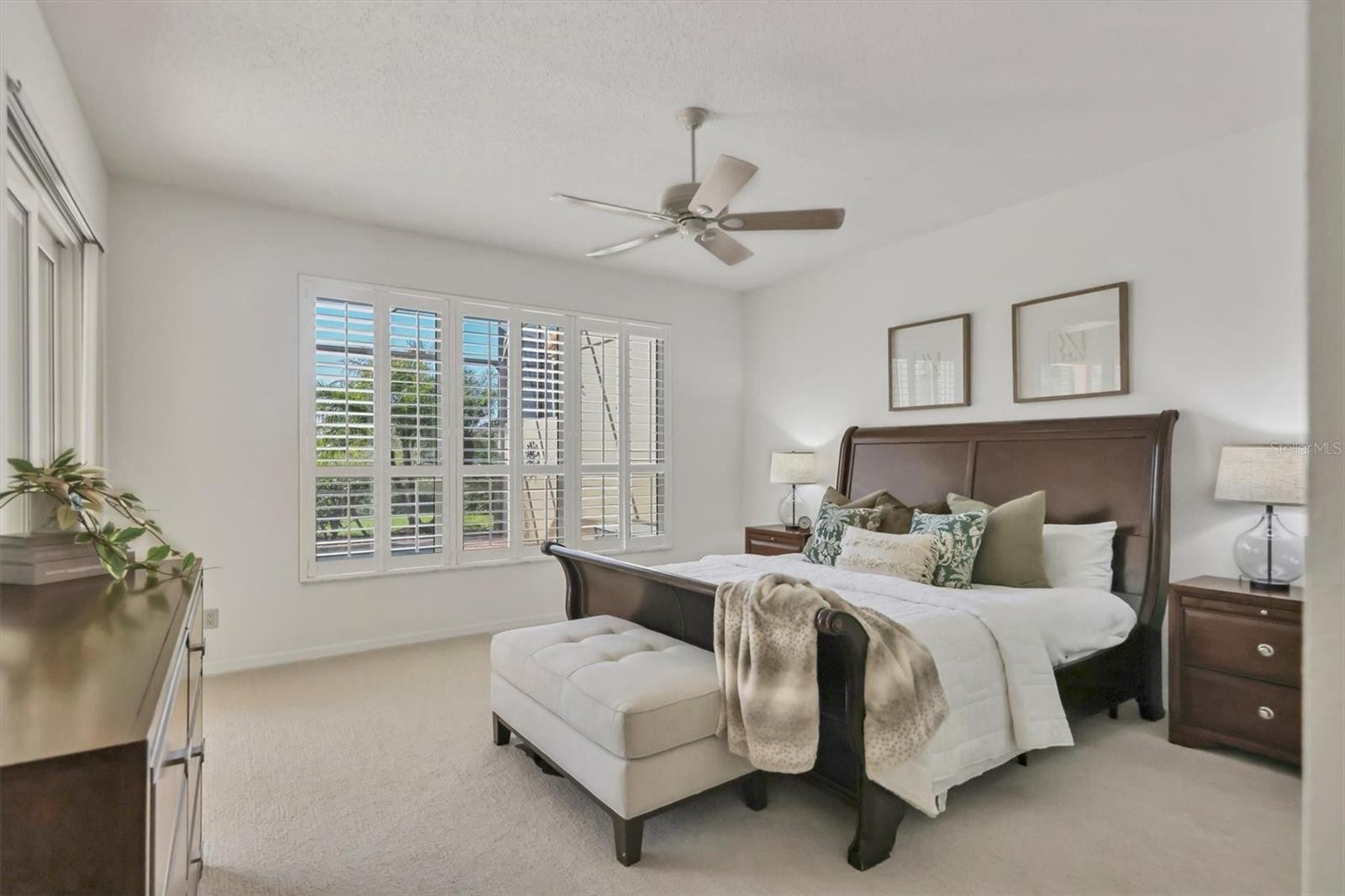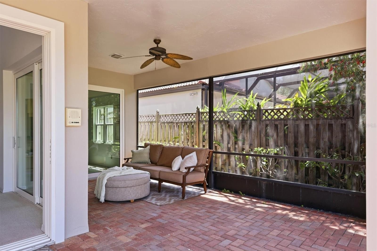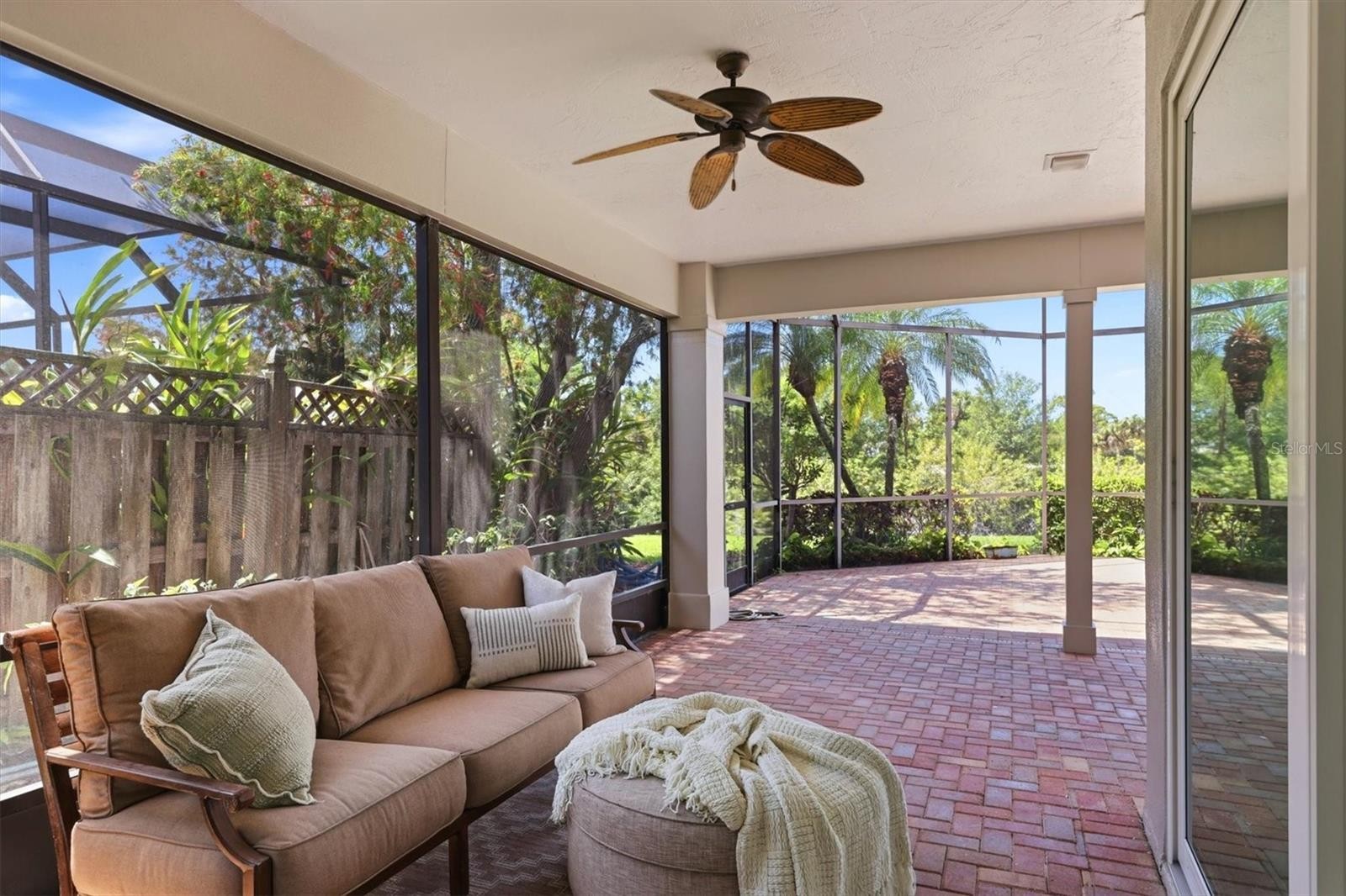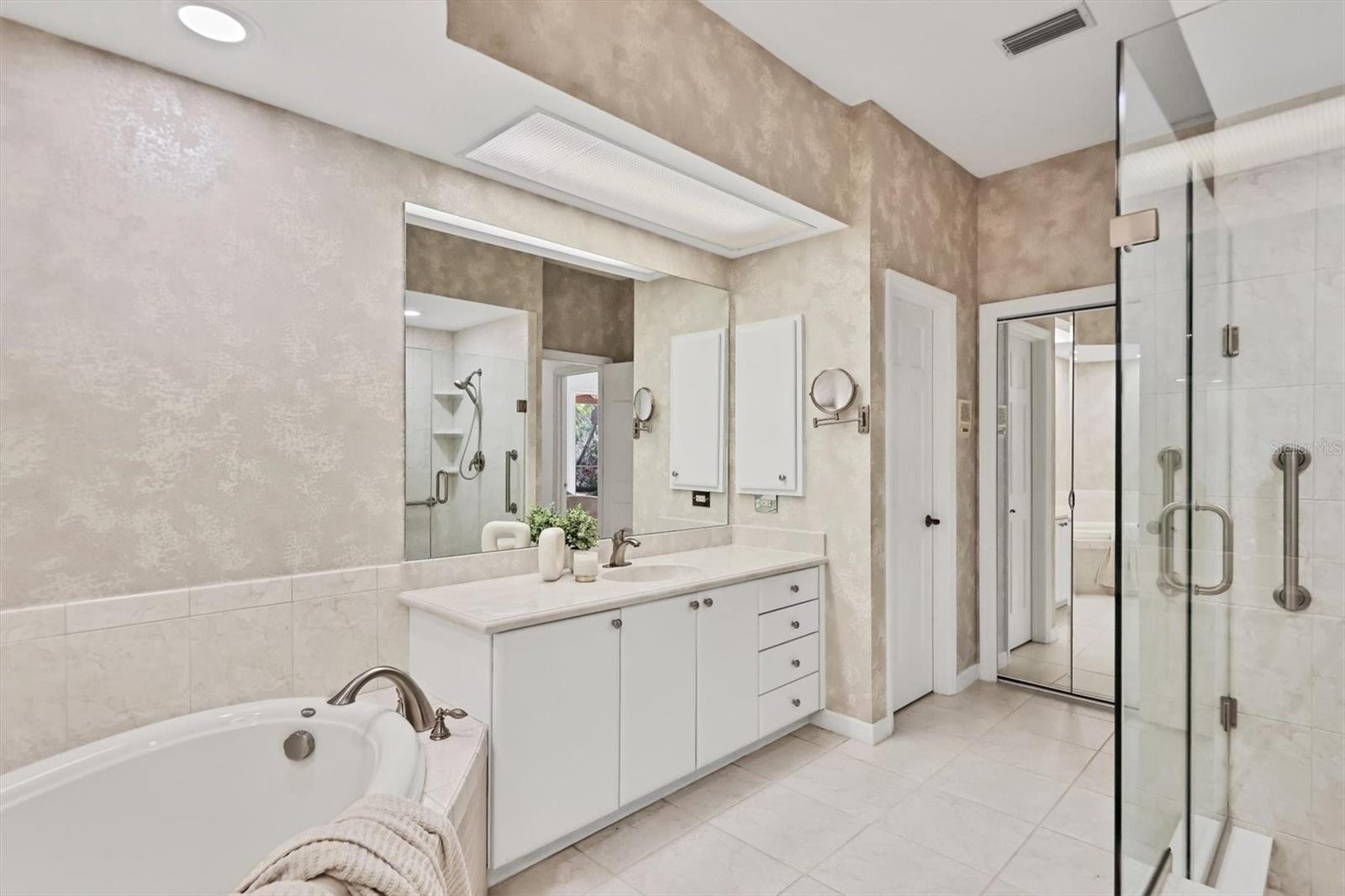Experience the ease of refined living in this beautiful La Vista single-family villa, nestled within one of Prestancia’s most sought-after maintenance-free enclaves. Perfectly situated within walking distance of the TPC Clubhouse, this residence offers an ideal blend of comfort, elegance, and convenience. Recently refreshed with new interior paint and carpeting, the home exudes understated sophistication and provides an inviting canvas for your personal style. Soaring vaulted ceilings and expansive windows fill the interiors with natural light, creating a warm and open ambiance—ideal for showcasing art and entertaining in effortless style. The spacious living room flows seamlessly to the outdoors through pocketing sliding glass doors that open to an L-shaped covered patio and screened lanai—perfect for enjoying Florida’s signature indoor-outdoor lifestyle. The thoughtfully designed kitchen features a large center island with seating, abundant counter space, wall oven and microwave with warming drawer, dual sinks, and a charming breakfast nook surrounded by sliding glass doors. A formal dining room offers an elegant space for gatherings and celebrations. The primary suite serves as a tranquil retreat with direct lanai access, plantation shutters, a generous closet, and a spa-inspired bath with dual vanities, a soaking tub, and a glass-enclosed shower. A guest suite with a private bath, a powder room, and a laundry room complete the main level. Upstairs, two additional bedrooms share a full bath—each offering privacy and ample closet space. Hurricane-impact glass throughout provides comfort and peace of mind. The lanai is an outdoor sanctuary featuring both covered and open seating areas, a sparkling solar-heated pool, and serene views that encompass a lush preserve, peaceful water, and TPC Prestancia’s 18th fairway beyond. Residents of Prestancia enjoy 24-hour guard-gated security, beautifully manicured grounds, and the option to join the prestigious TPC Prestancia Golf Club—home to two championship 18-hole courses and a vibrant social community. Ideally located near Siesta Key’s world-renowned beaches, The Legacy Trail, and Sarasota’s acclaimed shopping, dining, and arts scene. Discover the best of Florida living in this lovely home and community—you won’t be disappointed.