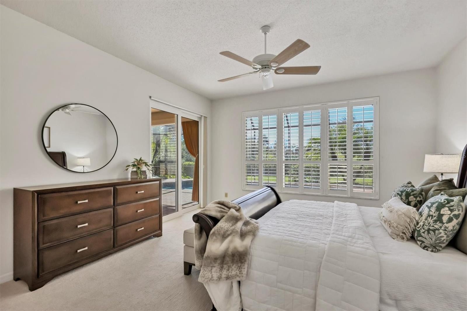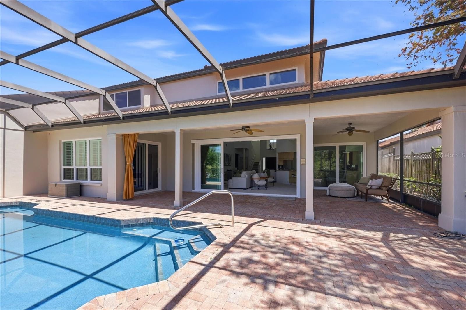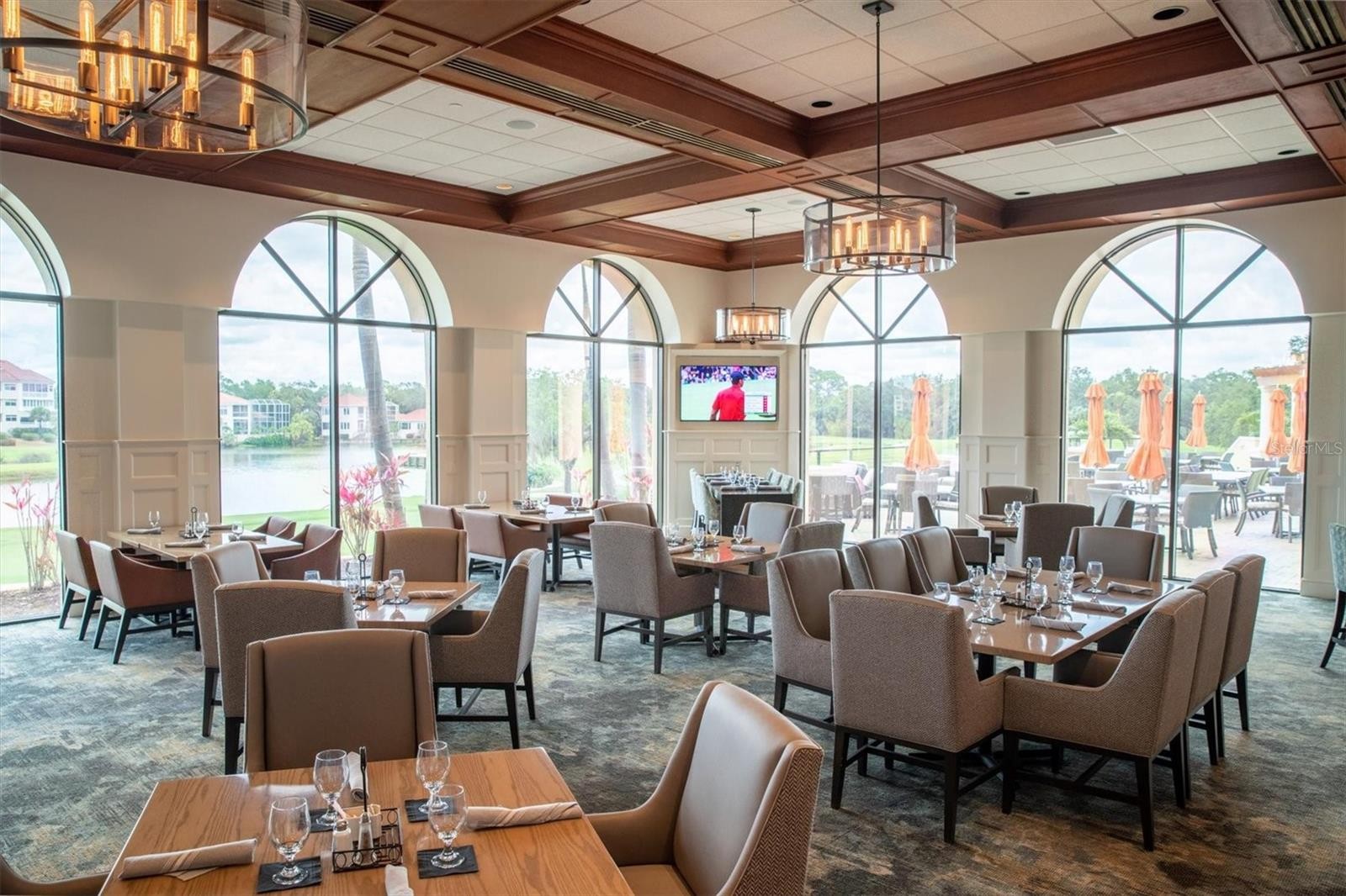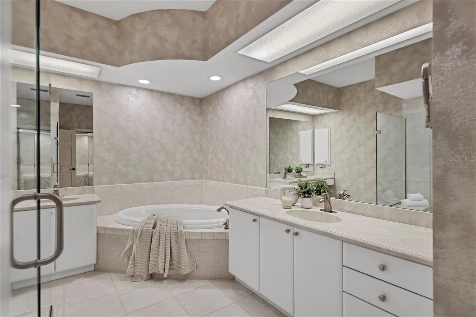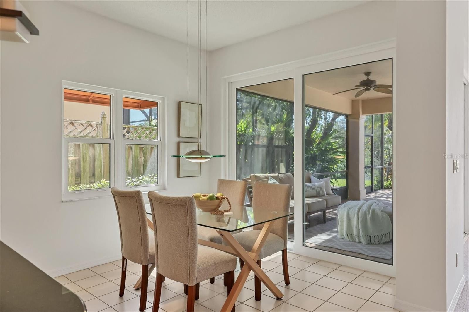 Experience the ease of refined living in this beautiful La Vista single-family villa, nestled within one of Prestancia’s most sought-after maintenance-free enclaves. Perfectly situated within walking distance of the TPC Clubhouse, this residence offers an ideal blend of comfort, elegance, and convenience. Recently refreshed with new interior paint and carpeting, the home exudes understated sophistication and provides an inviting canvas for your personal style. Soaring vaulted ceilings and expansive windows fill the interiors with natural light, creating a warm and open ambiance—ideal for showcasing art and entertaining in effortless style. The spacious living room flows seamlessly to the outdoors through pocketing sliding glass doors that open to an L-shaped covered patio and screened lanai—perfect for enjoying Florida’s signature indoor-outdoor lifestyle. The thoughtfully designed kitchen features a large center island with seating, abundant counter space, wall oven and microwave with warming drawer, dual sinks, and a charming breakfast nook surrounded by sliding glass doors. A formal dining room offers an elegant space for gatherings and celebrations. The primary suite serves as a tranquil retreat with direct lanai access, plantation shutters, a generous closet, and a spa-inspired bath with dual vanities, a soaking tub, and a glass-enclosed shower. A guest suite with a private bath, a powder room, and a laundry room complete the main level. Upstairs, two additional bedrooms share a full bath—each offering privacy and ample closet space. Hurricane-impact glass throughout provides comfort and peace of mind. The lanai is an outdoor sanctuary featuring both covered and open seating areas, a sparkling solar-heated pool, and serene views that encompass a lush preserve, peaceful water, and TPC Prestancia’s 18th fairway beyond. Residents of Prestancia enjoy 24-hour guard-gated security, beautifully manicured grounds, and the option to join the prestigious TPC Prestancia Golf Club—home to two championship 18-hole courses and a vibrant social community. Ideally located near Siesta Key’s world-renowned beaches, The Legacy Trail, and Sarasota’s acclaimed shopping, dining, and arts scene. Discover the best of Florida living in this lovely home and community—you won’t be disappointed.