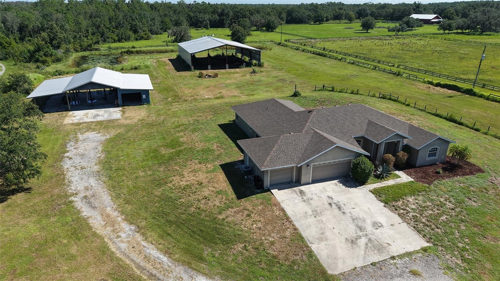 Charming 3 bed, 2 bath home on over 6 acres, built in 2021! Welcome to your private retreat! This beautifully maintained 3-bedroom, 2-bathroom home sits on over 6 fully fenced and cross-fenced acres, offering the perfect blend of comfort, functionality and space. Built in 2021, the home features modern systems throughout - including the roof, AC, septic, and well, all just a few years old. Inside, you'll find beautiful granite countertops, stainless steel appliances and a dual sinks in the primary bathroom, combining style and functionality. The open floor plan flows seamlessly onto a large covered back patio. Enjoy peaceful country living with standout outdoor features such as a 30x30 pole barn, 2 20-foot storage containers, and a spacious, approximately 15x50, covered back porch - ideal for entertaining or relaxing while overlooking your land. The property is gated for added privacy and security, making it ideal for livestock, equipment, or simply enjoying the open space. Whether you're looking for a full-time homestead or a peaceful weekend getaway, this property offers endless potential and room to grow.