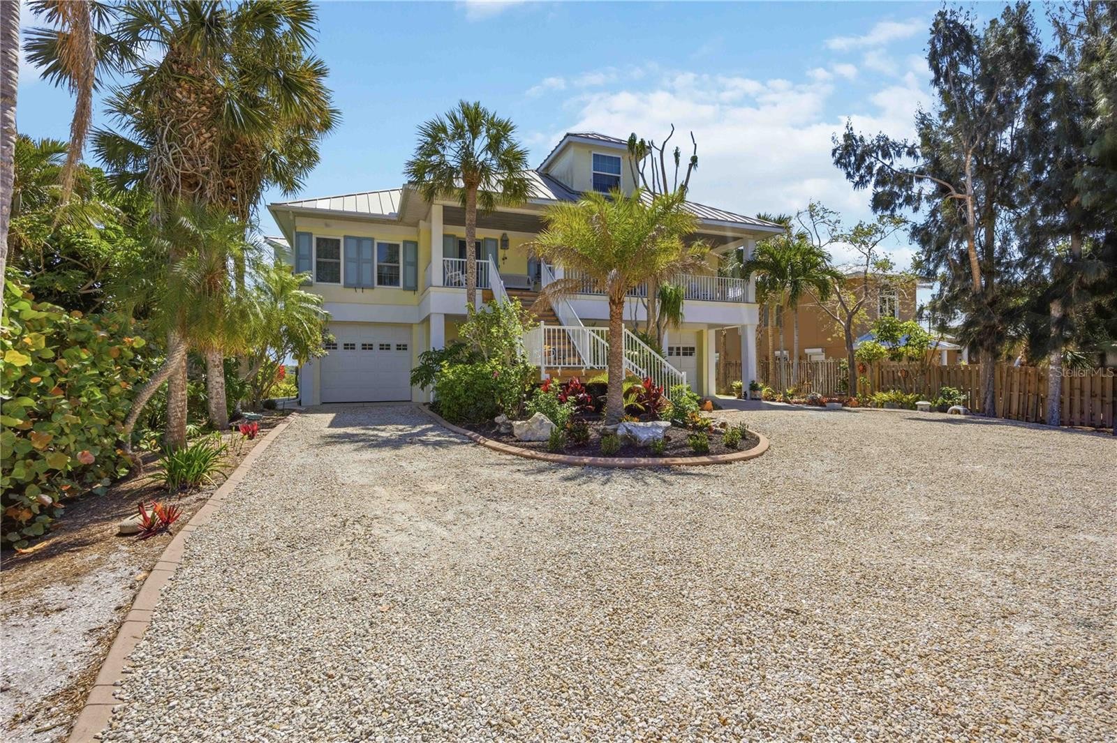 Picture pulling up your own palm-lined private drive on nearly an acre of premier Manasota Key waterfront. Right away, you feel that sense of arrival—this is your exclusive slice of paradise. Step inside this custom-built 4-bedroom, 4-bath bayfront gem, and the first thing that hits you is the light. Soaring vaulted ceilings, bold angles, and walls of glass pour in natural sunshine, making every room feel open, bright, and effortlessly sophisticated. Front and rear balconies let you step out into the tropical breeze, surrounded by lush greenery and the gentle sounds of the area. The heart of the home is the seamless open layout: a grand living room flooded with that gorgeous natural light, flowing right into the dining area, chef’s kitchen, and primary suite. Everything opens to a full-width screened balcony overlooking the expansive 40+ foot heated pool, brand-new deep-water dock (installed 2025), and tranquil Lemon Bay—perfect for hosting sunset gatherings or just relaxing year-round with the water right there. You’ll love the chef’s kitchen—equipped with premium appliances, beautiful quartz countertops, and direct bay views so you never miss the action on the water. The spacious primary suite feels like a true retreat: step out to the screened porch for panoramic bay vistas, then unwind in the spa-like bath with dual vanities and a huge walk-in shower. There’s a flexible main-level guest bedroom that’s perfect as an office, studio, or extra space. The home is thoughtfully elevated for coastal protection, with the state-of-the-art elevator (installed 2023) providing seamless access from the garage directly to the first (main living) floor. Upstairs, two mirrored guest suites offer soaring ceilings, charming dormer windows, and cozy window-seat alcoves—great private getaways for family or guests. Outside, it’s pure resort living: an expansive 40+ foot heated pool with a full bath and outdoor shower, a private workshop for your hobbies or projects, and a backyard deck leading to your sandy shoreline—ideal for launching paddleboards, kayaks, or just kicking back barefoot. Best of all, you have private deeded beach access to the pristine Gulf of Mexico, so those sugar-sand beaches and turquoise waters are just steps away for ultimate convenience. The oversized 4-car garage with tall ceilings and tons of built-in storage handles vehicles, an RV, boats, or toys—you name it. And then there’s Lemon Bay itself: pristine, protected waters alive with playful bottlenose dolphins, graceful manatees, soaring brown pelicans, elegant herons and egrets, cormorants, and so much more. You’ll catch these moments right from your backyard—nature’s show, every day. This rare bay-to-Gulf property on exclusive Manasota Key gives you total privacy, real distinction, and that seamless indoor-outdoor Florida lifestyle—with the added bonus of your own private path to the Gulf. It’s not just a house—it’s where breathtaking views and relaxed luxury come together to create something timeless for you and your family.