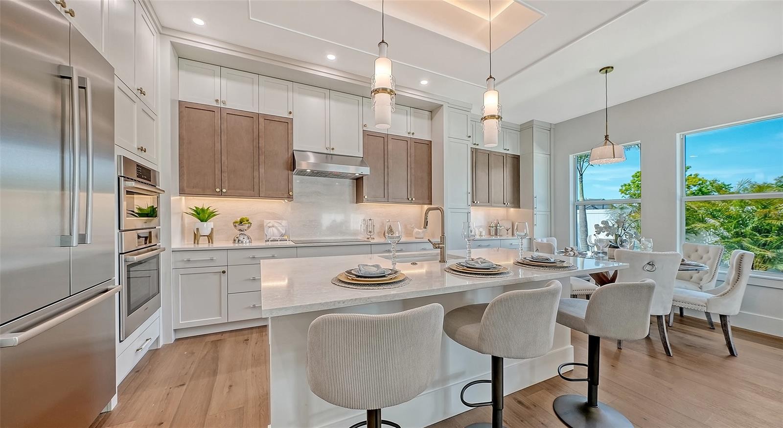*Cambria Model-Lot Included* Community Award winner in Parade of Homes. Palma Sola Grande is an Exclusive Gated Community in West Bradenton featuring 16 new construction homes overlooking Palma Sola Bay. The Cambria Model is a coastal contemporary two-story home with a spacious great room, gourmet kitchen, office, and private primary suite on the first floor. The second floor features two additional bedrooms and bathrooms, plus a bonus room/den. All plans are open-concept and built to entertain, with brilliant natural light pouring into the expansive living space and shining throughout the home. The gourmet kitchen is perfect for cooking and entertaining, featuring Thermador stainless-steel high-end appliances and stunning quartz countertops. The private primary suite features a roomy walk-in closet, ensuite bathroom featuring a spacious walk-in shower with glass enclosure and sleek finishes. This original masterpiece features volume ceilings, an oversized two car garage, metal roof system, and large hurricane impact-resistant windows and doors. The front yard and the backyard feature lush low maintenance tropical landscaping and irrigation. You will love the ideal location with close proximity to the Gulf Beaches of Anna Maria Island, IMG Academy and Golf Course, Robinson Preserve, Historic DeSoto National Park, downtown Bradenton, St. Pete, the cultural and culinary arts of Sarasota, shopping, stores, restaurants, and medical facilities. Keep your boat at one of several nearby Marinas. Walk or ride bikes to the Robinson Preserve, a 682-acre nature preserve offering trails, kayak launches & a picnic area. This is the ultimate Florida lifestyle location! Contact us today to set up a private tour and experience the beauty and lifestyle firsthand before the community sells out! The Cambria model floor plan is designed specifically for Cul De Sac Lots 9 and Lot 12. The Cambria model on lot 9 is available with a 6 mo to 1 year leaseback or turn key move in.