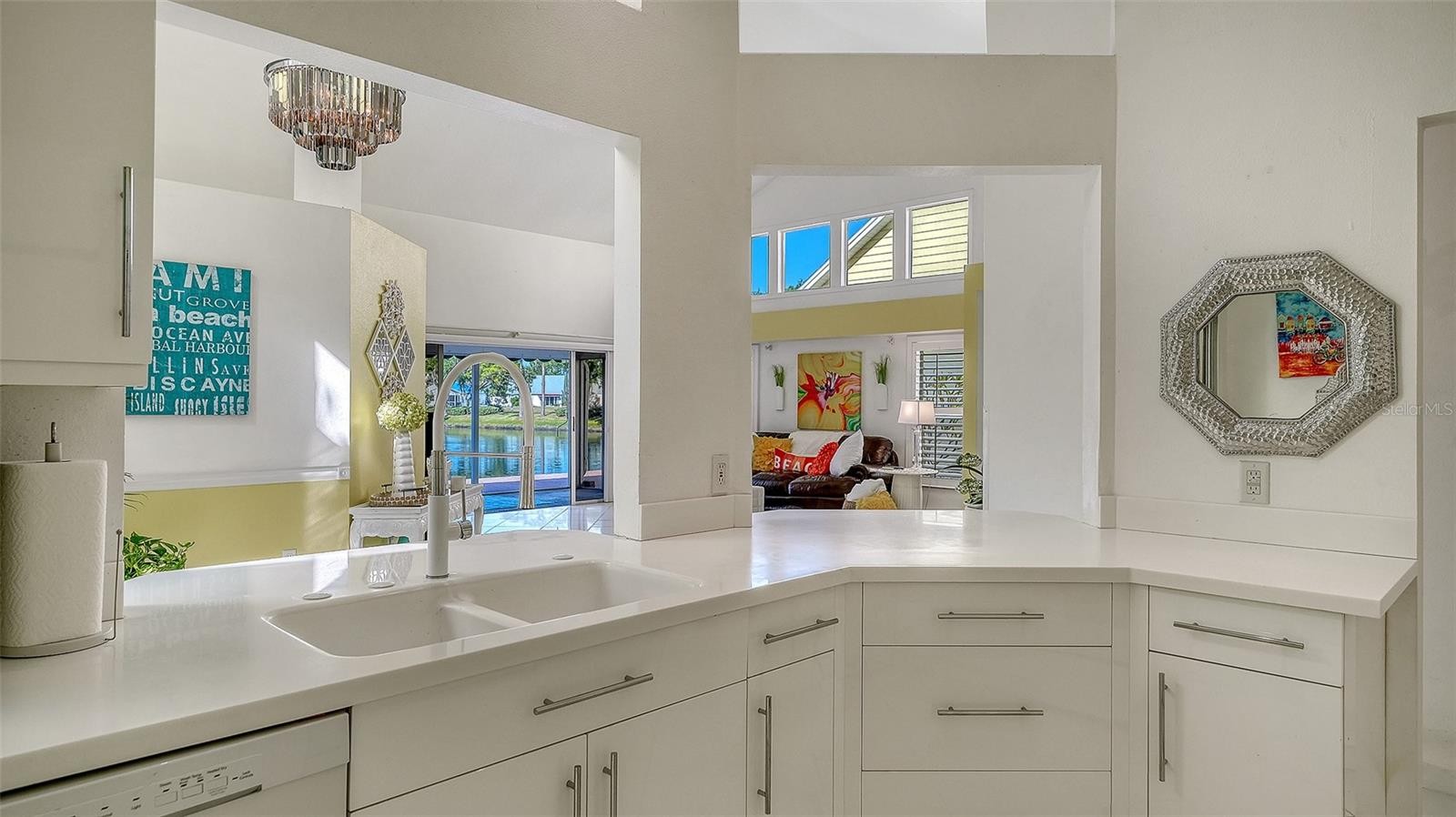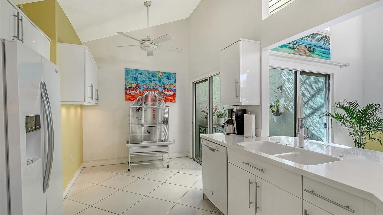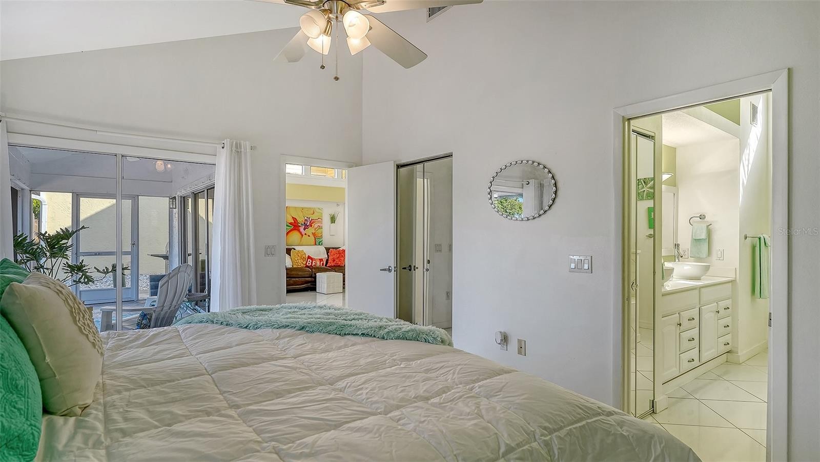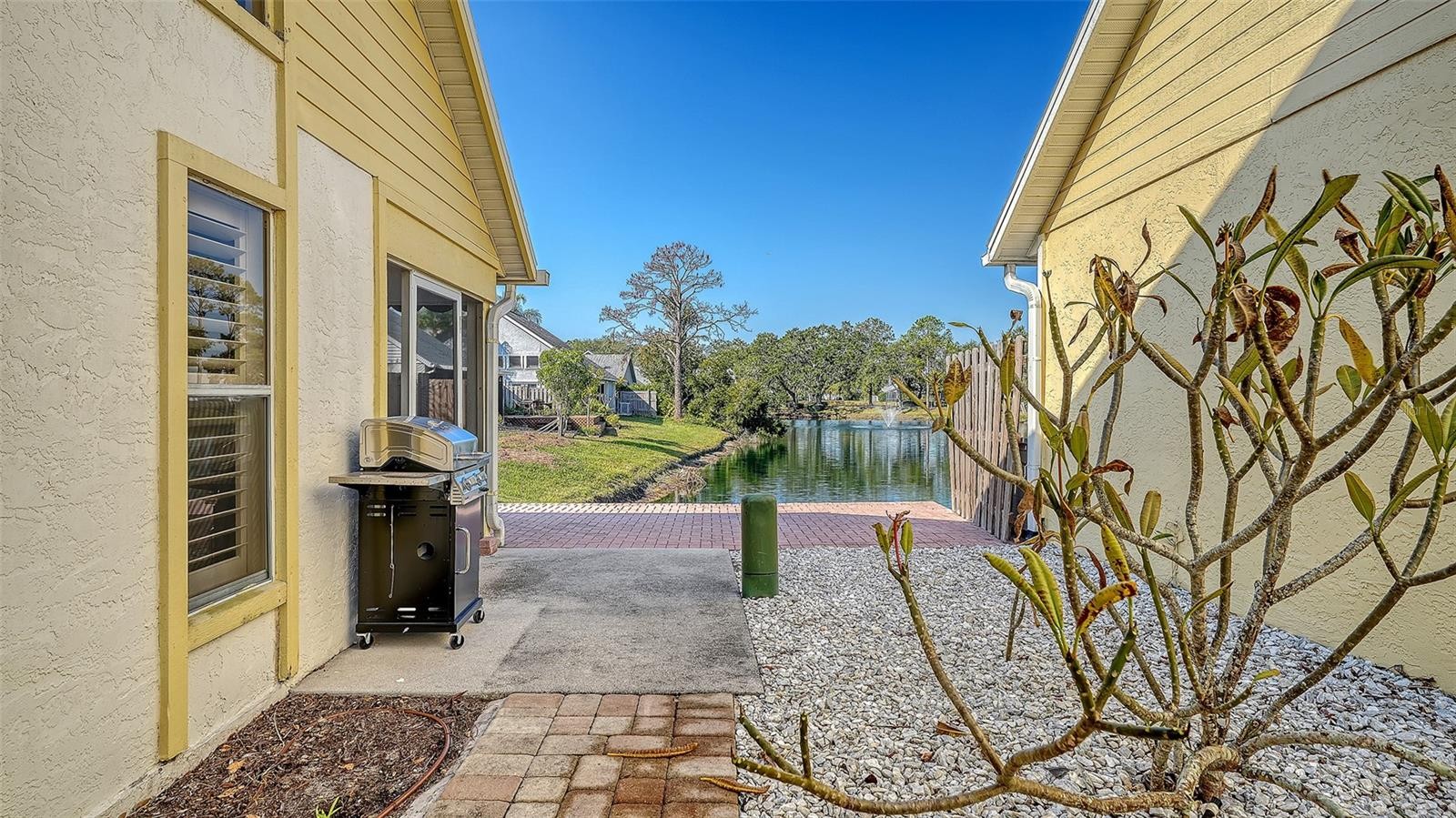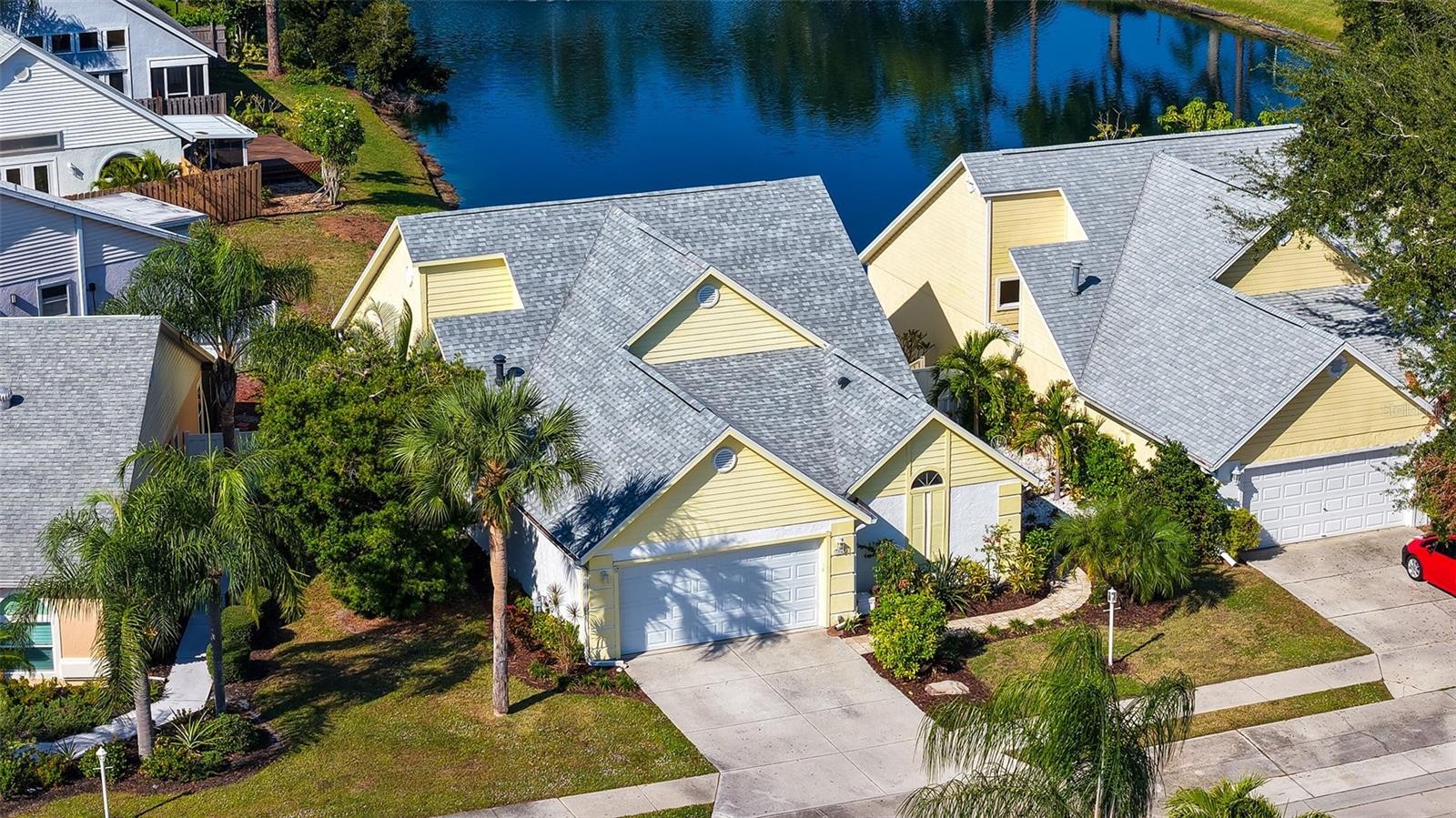 Tucked away in the charming and centrally located community of Treetops; one of Sarasota’s true hidden gems, this delightful home offers an inviting blend of comfort, charm, and convenience. Situated on a spacious corner lot surrounded by mature landscaping, the property immediately welcomes you with a cheerful, light-filled atmosphere that makes the entire space feel warm, happy, and uplifting. Inside, the home features a bright and open floor plan with soaring vaulted ceilings that enhance the sense of space. Natural light pours into every room, creating an airy, joyful environment from morning to evening. The generously sized living areas offer wonderful flow, making the home feel both cozy and comfortably spacious. A versatile flex room with pocket doors serves as a perfect den, reading nook, or home office—ideal for remote work or quiet relaxation. The eat-in kitchen includes ample counter space, abundant cabinetry, a closet pantry, and a charming breakfast nook overlooking a private courtyard. This sweet outdoor space is perfect for sipping your morning coffee, growing your favorite plants or herbs, or simply enjoying sunshine and solitude. The living room opens seamlessly to a large screened lanai with serene lake views, offering an ideal spot to unwind or entertain. Beyond the lanai, the expansive paver patio provides even more room for outdoor dining, lounging, or hosting guests. Whether you’re starting your day in the gentle morning light or ending it with a glass of wine at sunset, the indoor-outdoor living spaces make every moment feel special. Additional highlights include granite countertops in the kitchen, an excellent split-bedroom layout, generous room sizes, and a new roof scheduled as of August 2025. The entire home presents as cheerful, fresh, and lovingly maintained—truly a happy place to call home. Treetops offers low HOA fees and a pet-friendly lifestyle with a heated community pool and cabana, tennis court, and included basic cable and internet. Centrally positioned near University Parkway, UTC, downtown Sarasota, and Lakewood Ranch, the location provides quick access to shopping, dining, parks, and major roadways, making everyday living exceptionally convenient. This bright and joyful home is a must-see for anyone seeking charm, comfort, and privacy in a beautifully kept community.
