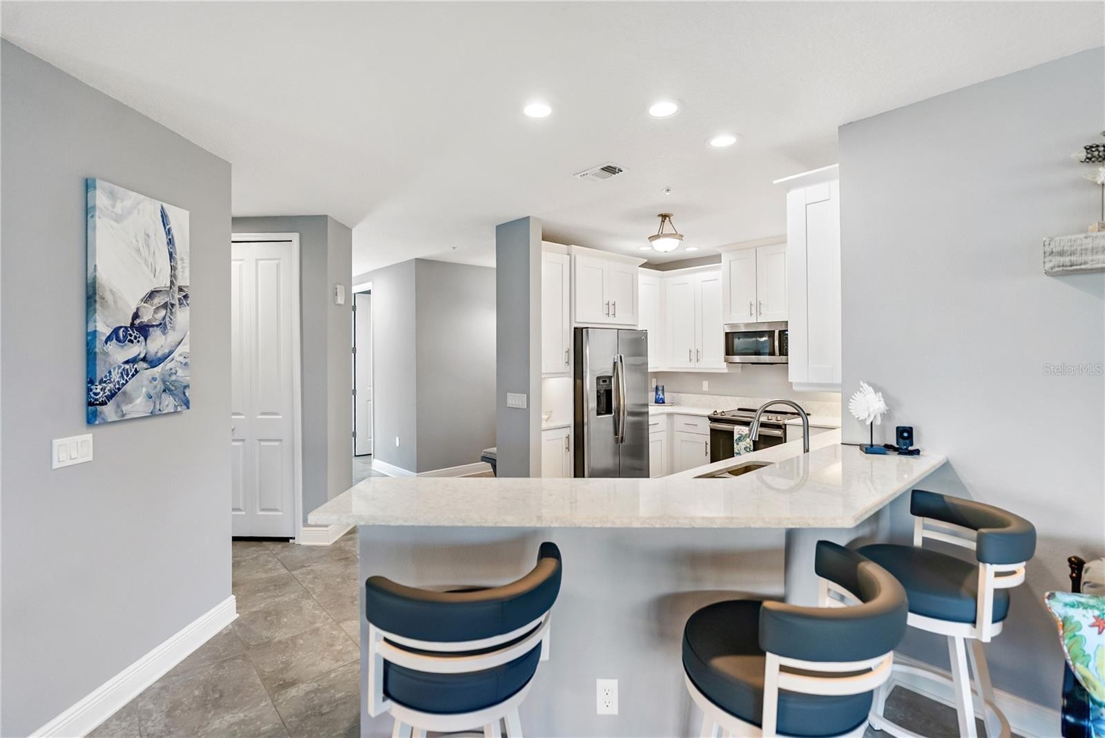 *xquisite Palma Sola Bay Club Condo with Style, Strength & Stunning Views! Welcome to this beautifully designed first-floor residence in the highly desirable Palma Sola Bay Club. Built with durability and comfort in mind, this condo features full IMPACT glass windows and doors, offering exceptional peace, storm security, and energy efficiency. The building’s solid construction has proven itself through recent storms—remaining quiet, dry, and secure. Step inside and experience a bright, open floor plan with elegant finishes throughout. The upgraded kitchen features a functional two-tier counter design that enhances prep space and flows seamlessly into the spacious gathering room—ideal for entertaining or relaxed everyday living. Enjoy tranquil pond views from your private balcony off the primary suite, perfect for morning coffee, and take in breathtaking sunsets from the second balcony overlooking the community. The primary suite offers generous space, including a large walk-in closet, an oversized shower enclosure, and a relaxing garden tub. The split-bedroom layout provides added privacy for guests, while the expansive interior laundry room, abundant cabinetry, and a conveniently located half bath make daily living effortless. This home also includes a large walk-in storage room on the ground level—perfect for kayaks, beach gear, bikes, or seasonal items—as well as two dedicated parking spaces. With the sellers relocating back north, this impeccably maintained condo is ready for its next owner to enjoy the serene, coastal lifestyle that Palma Sola Bay Club is known for. Don’t miss this rare opportunity to own a truly exceptional property in one of Bradenton’s most sought-after communities!