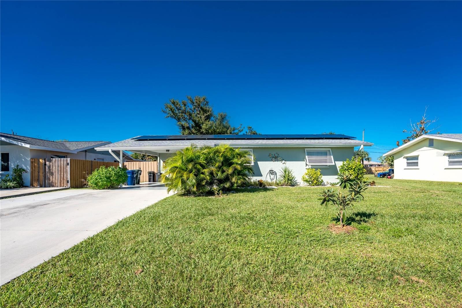 Lovely and ENVIRONMENTALLY CLEAN home, located on a pleasant and quiet dead-end road and located in flood zone X, the safest designated flood zone to avoid flooding and also, NO flood insurance is required. This seller has established the home for restful, harmonious ambience and it has been set up as a healing sanctuary. The home has been freshly painted inside and outside, with soft calming earth tones. The AC is new in 2022 and features a UV system specific to kill microbes. A water purifier has been installed, designed to provide structured water, more beneficial and safer for consumption. The roof is new in 2020, and there are solar panels leased from FPL, to lower any environmental impact, contributing toward more green living. The counter tops are granite, the cabinets are new, with soft-close drawers. The flooring is all new within one year, and porcelain wood-look, throughout the home. The dining area has windows on 3 sides, overlooking a back yard, replete with many organic trees. The back yard is an organic FOOD FOREST GARDEN. There are producing, banana, mango, papaya, loquat, sapodilla, mulberry, Jamaican Cherry, in all, there are 15 edible fruit and vegetable varieties. The shed is 10' X 16' and is on blocks, on a slab, is anchored, and has 1 window, and a metal roof, and a ramp entry. There are impact windows on the South side of the home. From this peaceful sanctuary walk one half mile to Lemon Bay Park, a 250 acre conservation area with nature trails and a kayak launch. Downtown Dearborn Street is within close proximity, a 5 minute's drive. Downtown bistros, a Farmers Market, boutique shoppes, fine dining or casual outdoor organic cafes, and wine tasting too. Manasota Key and Gulf Beaches are an easy 10 minute's drive. Make this extremely clean, with so many green features, safe home yours, and join the casual elegance of Englewood Florida!