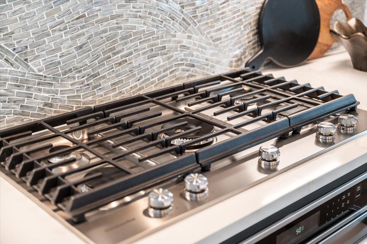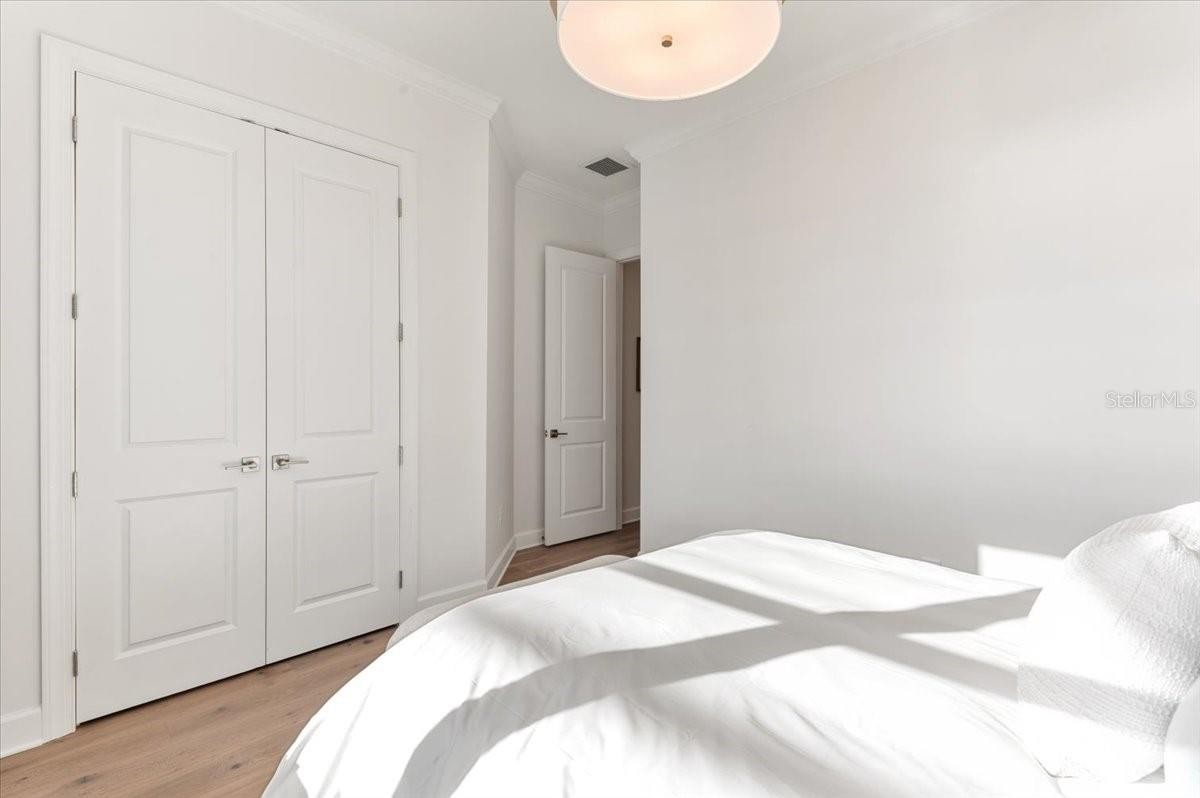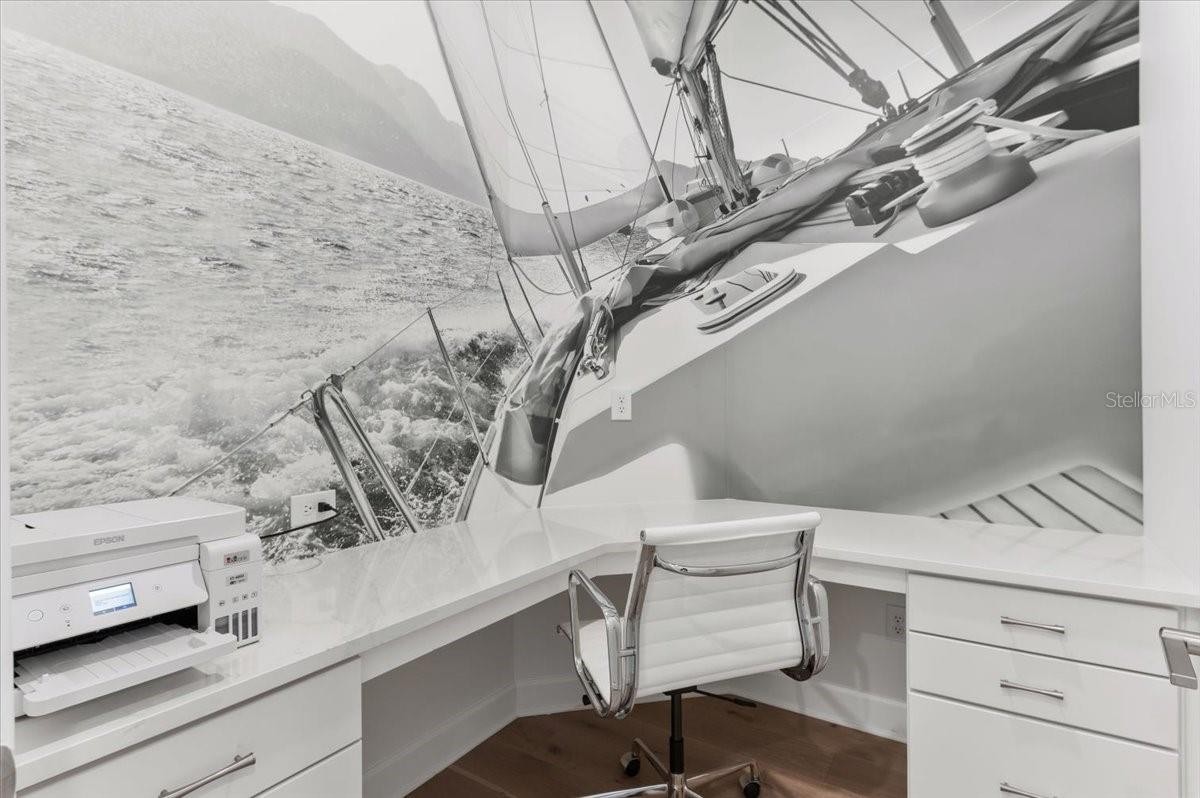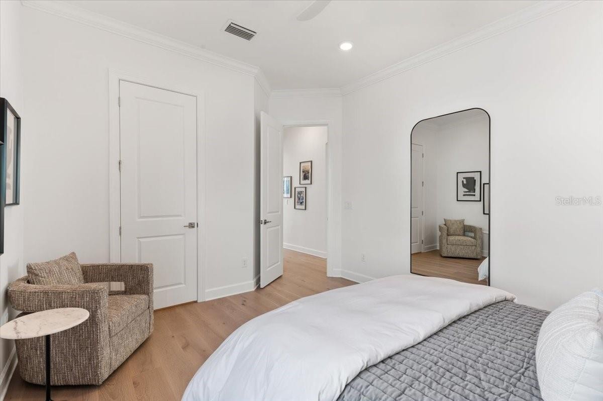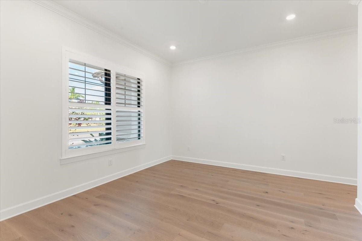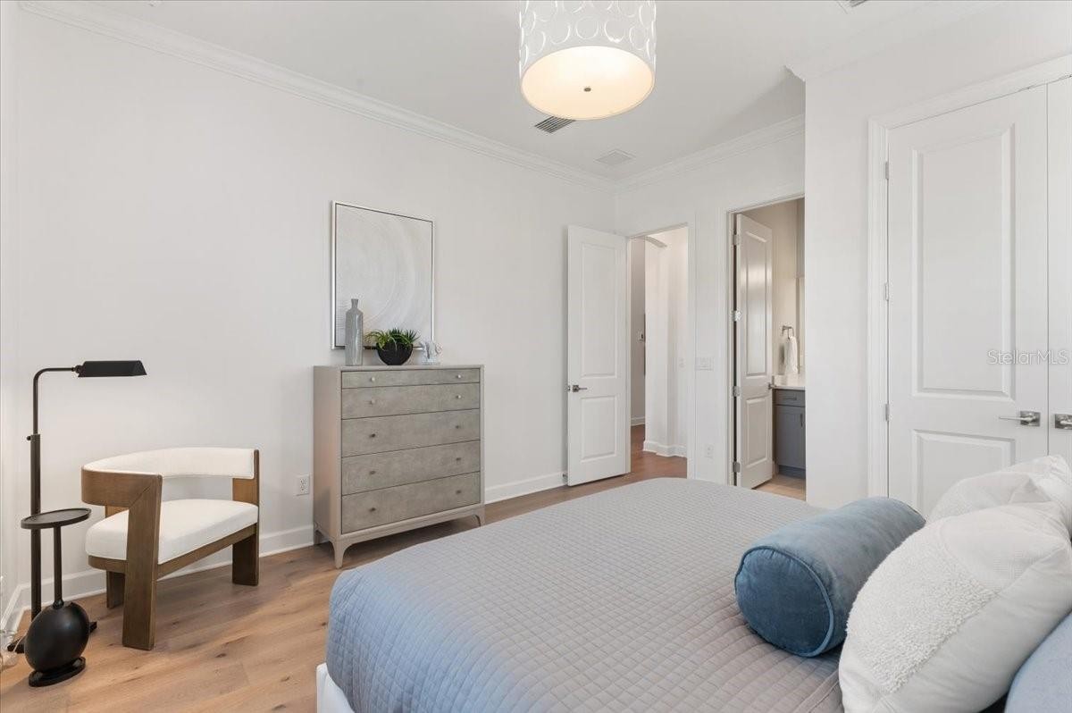 An extraordinary expression of lakeside luxury, this impeccably fully upgraded residence is perfectly positioned along one of the largest lakes in the highly sought-after community of Shoreview at Waterside. Fully upgraded with nothing left to be desired, this home offers four bedrooms, three full baths, two half baths, and a versatile flex room all one level. Upon entering, you will be welcomed by a captivating water view and rich wood flooring that flows throughout the main living spaces. The gourmet kitchen is expertly suited for entertaining with double ovens, quartz countertops, an oversized island with seating, reverse osmosis system, a walk-in pantry, a gas cooktop, and a custom tile backsplash. The great room impresses with soaring ceilings and a custom built-in TV wall with fireplace. Integrated Sonos speakers throughout the home create the perfect ambiance as upgraded 10-foot sliders open seamlessly to the outdoor retreat. Unwind in the resort-style pool and spa while taking in expansive water views and coveted southwest exposure. The entertaining space continues with an extended lanai, natural stone pavers, a convenient pool bath, and a fully equipped outdoor kitchen featuring a Coyote grill, side burner, beverage refrigerator, and sink. The owner’s retreat serves as a private sanctuary, highlighted by tray ceilings, motorized blinds, and a spacious sitting area. The adjoining primary bath offers a large soaking tub, a custom tile feature wall, and an expansive custom closet. Three separate guest suites—one with a private en-suite bath—provide comfortable accommodations for family and visitors. A dedicated flex space near the kitchen, complete with a wet bar, offers versatility and is ideal for a home office, bonus room or dining room. This home offers added peace of mind with impact windows, a security system, and exterior cameras. The two-and-a-half-car garage features epoxy flooring, an electric vehicle charger, built-in shelving, and dedicated golf-cart parking. Additional highlights include a designer powder room with upgraded tile, built-in wine wall, enhanced landscaping, easement for a dock, a widened driveway and custom closet systems throughout. Shoreview at Waterside Lakewood Ranch is a highly-sought-after community that features resort-style amenities such as a beach area, heated pool and spa, clubhouse, tennis and pickleball courts, and a state-of-the-art fitness center. This home is in close proximity to Waterside Place - Lakewood Ranch’s newest town center and the only waterfront retail and lifestyle destination in Sarasota. HOA includes all landscaping.
