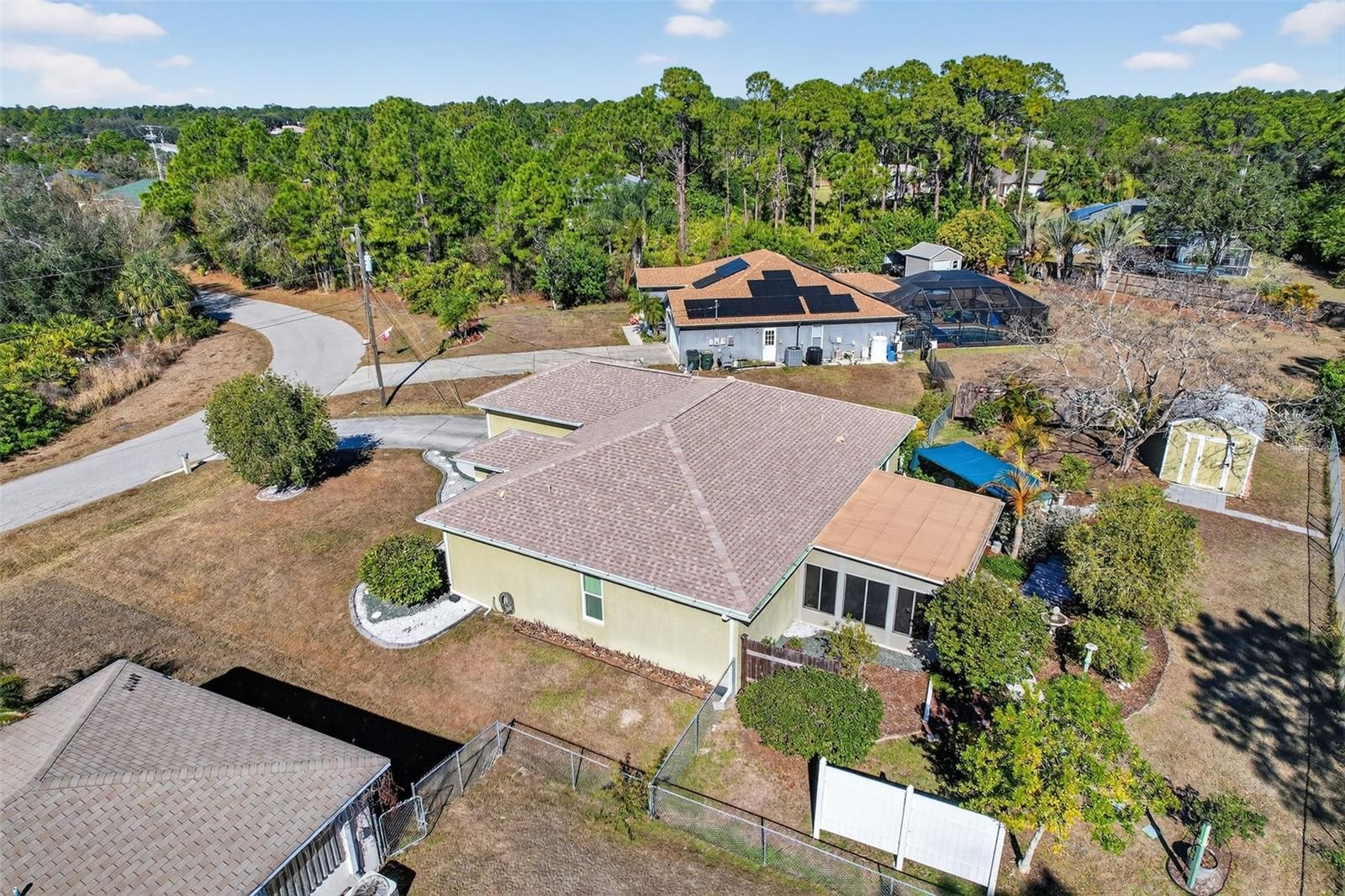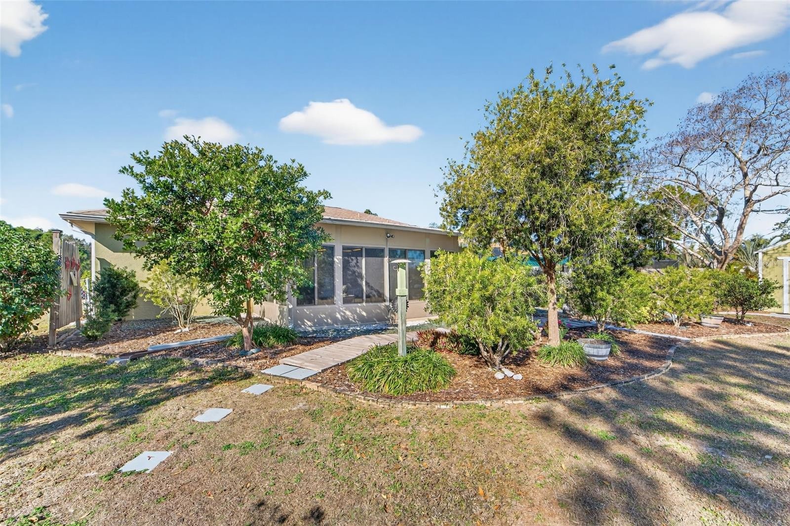 SOMETHING FOR MOM, DAD AND THE WHOLE FAMILY! This beautifully appointed Windemere built home ON A LARGE DOUBLE LOT offers over 1,800sq feet of living space PLUS A SEPARATE 1,200 square foot WORKSHOP. Truly a showpiece with numerous custom features, all nestled in on a one-half acre lot! Plan on spending some time in this home when you first visit, Enter through the front door and step into your own private stress-free sanctuary. Outdoor entertainment can be enjoyed bon the back deck and lush landscaping. The light and bright kitchen boasts plenty of cabinet space, tile floors and solid surface counter tops. Off of the kitchen/living room area you will find a nice sized den, or it can be used as a formal dining area. The Primary Bedroom Suite with a walk-in closet and Ensuite bathroom features stylish appointments with double sink vanity and inviting walk-in shower. The two guest bedrooms and guest bathroom offer plenty of space for guests and family. Endless features such as formal dining & living room with decorator fans and light fixtures Plus, a DETACHED 1,200+sq foot workshop built on an adjacent lot with its own separate driveway and a separate storage shed. NEW ROOF 2023 AND NEW STORM WINDOWS 2025. Whether you're enjoying quiet mornings on the back deck or entertaining guests in your spacious living areas, this well-built home offers the perfect blend of beauty, function, and Florida lifestyle which makes this a true gem. Don't let this one get away! Contact us today to schedule your private showing.