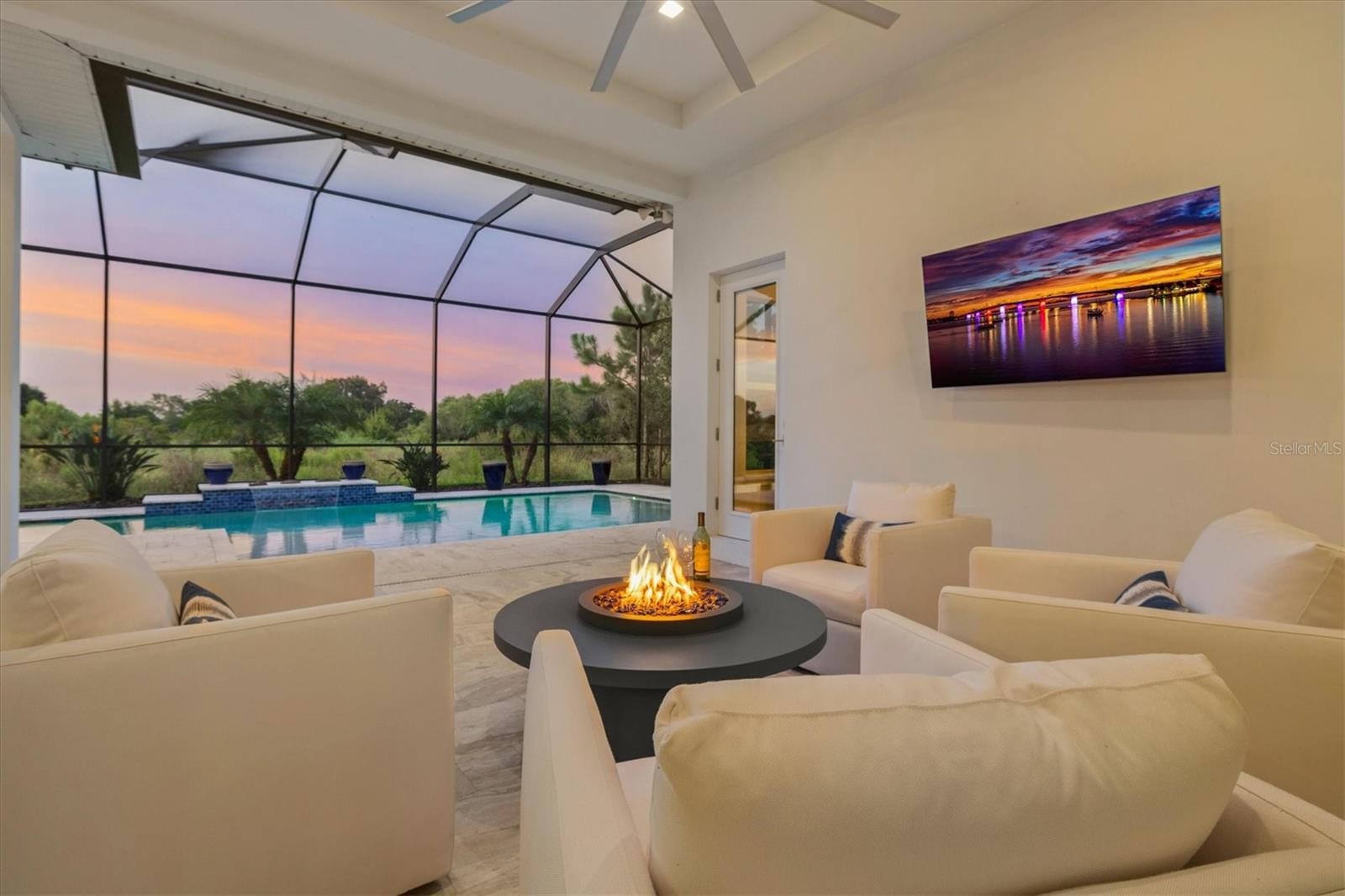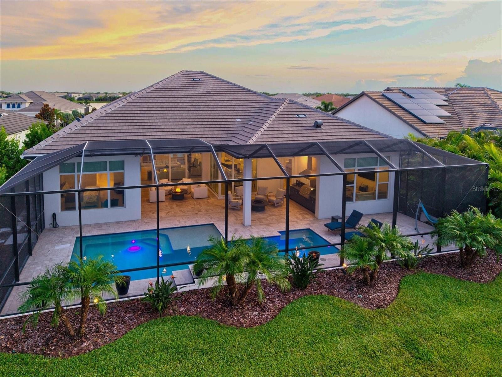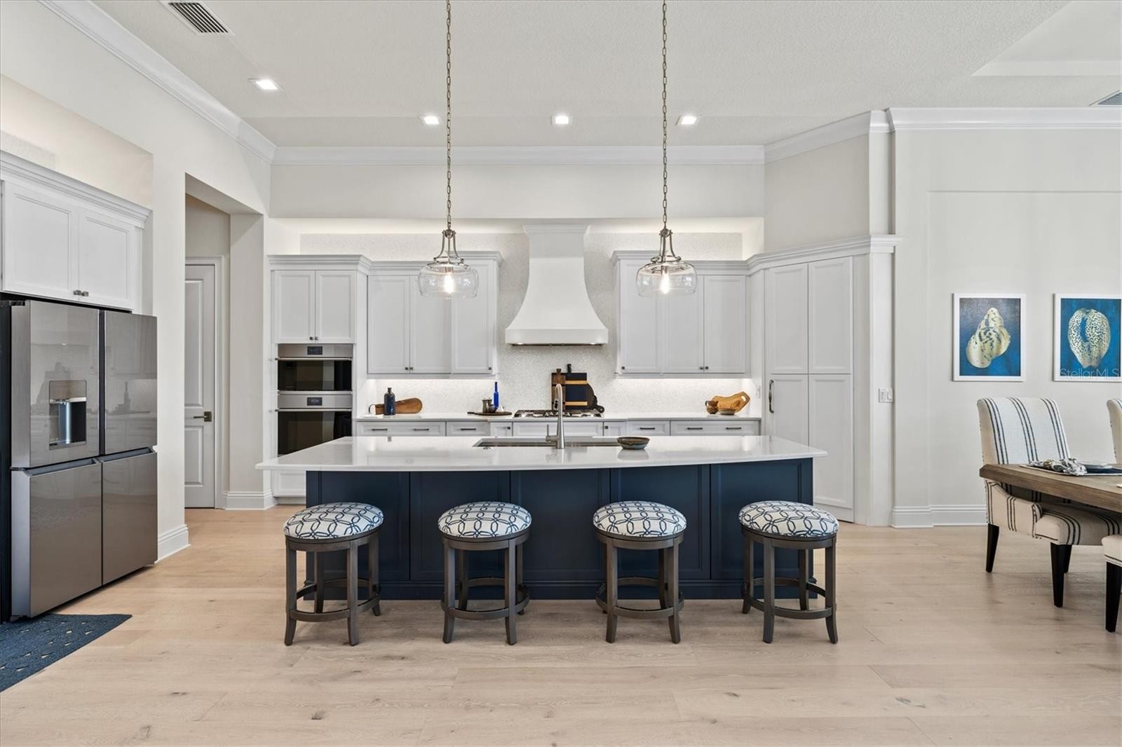 Not every home is simply built to be lived in; the most exceptional are crafted to be experienced. We invite you to discover this prestigious custom-built Lee Wetherington architectural masterpiece in LakeHouse Cove at Waterside. This home offers a floor plan that celebrates both scale and intimacy, set against the rare privacy of a protected preserve. Crafted with precision and curated with intention, it reflects the sensibilities of owners who value refinement at every turn. Step through the glass entry into soaring twelve-to-fourteen-foot ceilings, framed by expansive niches, custom lighting, and wide crown detailing. Walls of pocketing glass disappear and blend the interior with the outdoors in a way that feels effortless yet striking. Engineered wood floors flow through open living spaces, while an Arhaus Dandelion chandelier anchors the main gathering room with quiet drama. The kitchen is designed as both a showpiece and a place of purpose. Café Platinum appliances, including a five-in-one Advantium oven, and the custom wood hood and mantle elevate the space. A Ruvati forty-five-inch workstation sink takes functionality to a new level with the Dual-Tier collection that converts your sink into a full workspace. Heavy-duty cookware drawers and a walk-in pantry with custom carpentry ensure beauty and function remain in balance. The designer backsplash is an opulent luster that rivals mother-of-pearl, infused with flare straight from the sea and extending from counter to ceiling, complemented by under-cabinet lighting and discreet outlets that preserve clean lines. The primary suite is a retreat defined by thoughtful scale and elegant finishes. Two oversized walk-in closets with mirrored dressing space adjoin a bath featuring dual vanities, a deep soaking tub, and a triple-head shower with dedicated lines for comfort and performance. Two additional ensuite bedrooms, an office framed by solid core double pocket doors, and a versatile bonus room complete the interior. Beyond its beauty, this home is engineered for lasting comfort. PGT Low-E impact glass, whole-house water filtration with salt-free conditioning, a Navien tankless system with rapid hot water, dual HVAC air handlers, climate-controlled storage, and exterior security cameras with NVR reflect a commitment to quality. The outdoor living environment enhances the sense of privacy with its preserve backdrop. The lanai becomes a destination of its own with a summer kitchen featuring an oversized grill, a fire table lounge, and generous dining space that invites gatherings of every scale. The custom pool, complete with waterfall, sun shelf, and programmable lighting, transforms the setting into a resort-inspired centerpiece. Professional landscaping with dramatic uplighting frames the residence, ensuring it shines just as brightly at night. LakeHouse Cove is a lifestyle shaped by thoughtful amenities and natural surroundings. Residents enjoy a resort-style pool, fitness center, and clubhouse, along with kayaking, pickleball, and bocce. Hop on the community water taxi to Waterside Place or head to the boathouse to use the community kayaks. Acres of preserve and miles of shoreline create a natural rhythm, while Waterside’s vibrant lakefront town center offers dining, culture, and convenience within moments of home. This residence is a rare opportunity to own a home where architectural artistry, meticulous craftsmanship, and an extraordinary lifestyle come together in harmony.