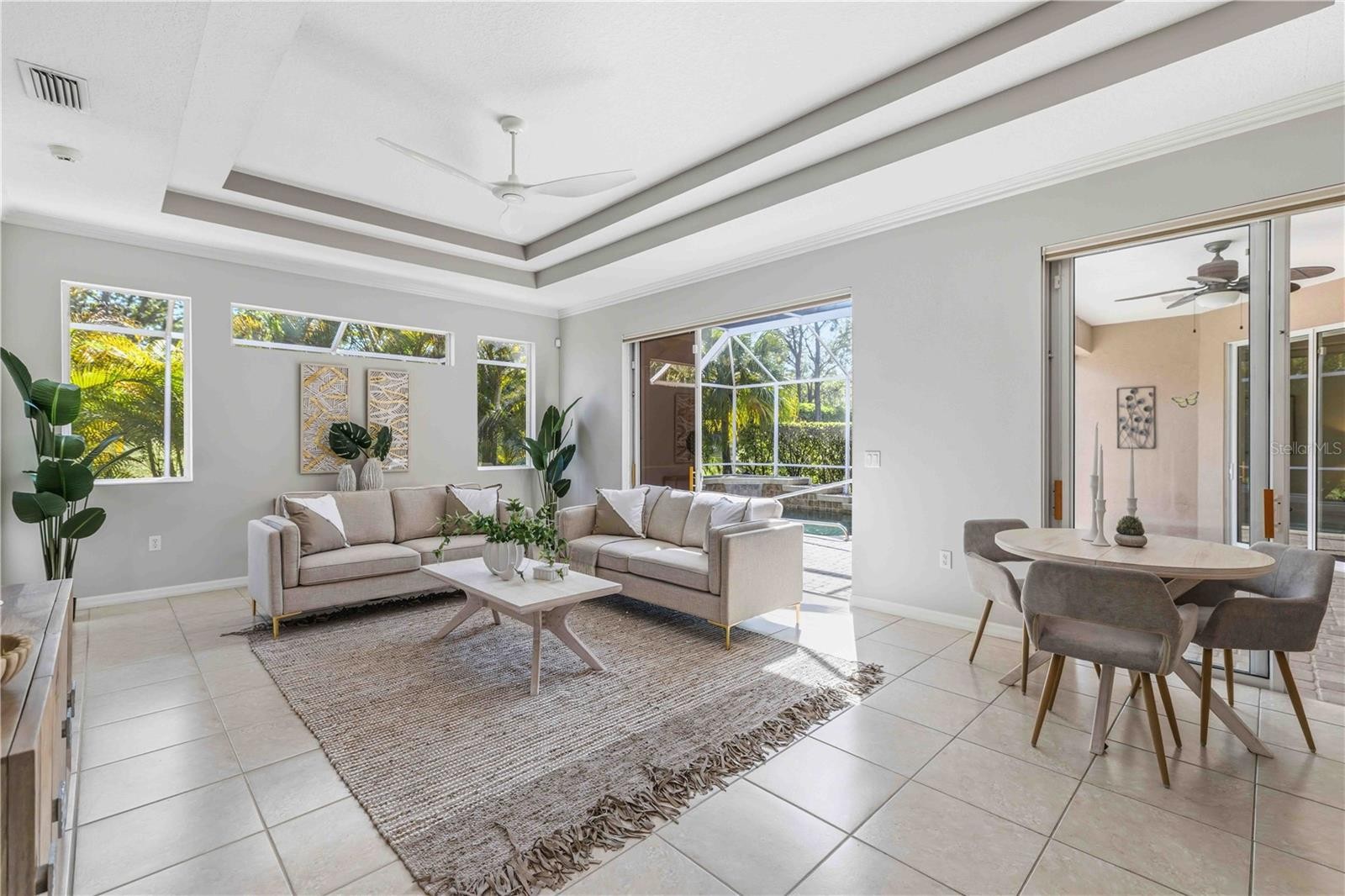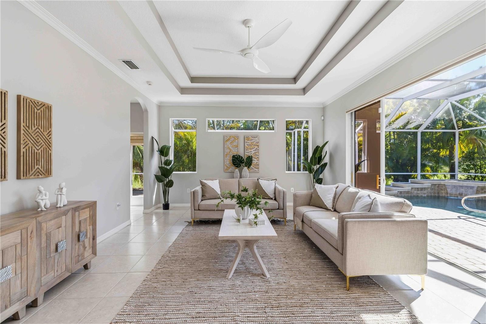 Once through the gates of University Place, residents often say it feels like arriving at a private resort, complete with exceptional amenities, shaded streets, and a sense of peace and privacy throughout the community. Two separate recreation areas offer pools, fitness and gathering spaces, walking trails, and quiet streets ideal for biking or evening strolls. ROOF replaced in 2025...This beautifully appointed 2,314-square-foot home features four bedrooms and three bathrooms and is designed for comfortable Florida living. The property showcases a stunning in ground pool with most-desirable southern rear exposure, surrounded by an expansive pavered patio and an exceptionally private backyard. Recent updates include fresh interior paint throughout the home. The light-filled interior highlights a stylish kitchen with granite countertops and stainless steel appliances, creating an inviting space for everyday living and entertaining. Florida-friendly landscaping surrounds the home and requires no additional irrigation or watering. While the home itself may make you never want to leave. Home also features a remote kevlar hurricane screen on lanai and an impact sliding window in primary suite. University Place is ideally located just minutes by bike, walk, or car to UTC Mall, shopping, dining, entertainment, Fresh Market, Detweiler’s, Whole Foods, Benderson Park, I-75, Siesta Key, Longboat Key, and downtown Sarasota and Bradenton. Total tax bill including CDD and Fire District is $7,590.06 for 2025.