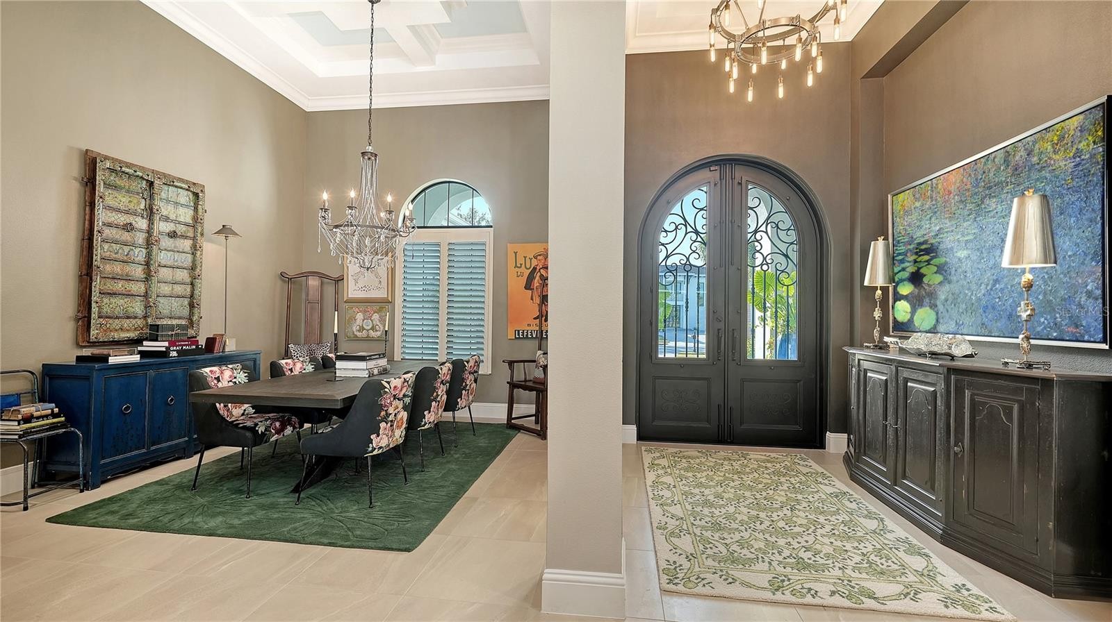 Exquisitely customized Stock Signature residence set on an expansive, ultra-private two-thirds acre homesite within the prestigious, guard-gated enclave of The Lake Club. Architecturally distinctive and masterfully curated, this 3-bedroom, 4.5-bath estate showcases exceptional craftsmanship, designer finishes, and an extensive collection of recent high-end upgrades. The resort-inspired grounds are newly landscaped and thoughtfully designed with aluminum fencing, specialty plantings, ambient landscape lighting, and a full irrigation system, offering a tranquil, secluded setting. Hurricane-impact windows and sliding doors, paired with a bespoke solid iron entry door, provide both refined elegance and superior security. The panoramic pool enclosure showcases the resort-style saltwater pool and spa, enhanced with café lighting, programmable LED pool and spa illumination, and a fully appointed outdoor kitchen with beverage cooler and sink, creating an ideal environment for sophisticated alfresco entertaining. Interiors are defined by dramatic architectural ceiling treatments, custom millwork, designer chandeliers, rich crown molding, recessed lighting, and thoughtfully designed window treatments. The entire residence has been freshly repainted inside and out, presenting a pristine and flawless offering. The gourmet kitchen is a showpiece, featuring illuminated upper cabinetry, a striking smoked mirror glass backsplash, custom range hood, seamless one-piece granite island, updated sink and faucet, refined hardware, under-cabinet and pendant lighting, and newly refinished cabinetry. Living and entertaining spaces are enriched with custom crafted built-ins, tailored lighting, plantation shutters in the dining room, plush new carpeting in guest suites, and two private executive offices with custom cabinetry and French doors. The versatile bonus room offers elegant flexibility as a media room or additional guest suite. The sumptuous primary suite includes a reimagined, expanded couture closet with custom cabinetry, new carpeting, glass entry doors, and designer lighting. The spa-inspired primary bath boasts new quartz countertops, dual sinks, upgraded fixtures, illuminated custom mirrors, and artfully updated tile. A dramatic, designer powder room provides a striking statement of luxury. Notable enhancements include a whole-house water softener and filtration system, a whole-house Kohler generator and an epoxy floor coated 4-car garage! Residents of The Lake Club enjoy a world-class lifestyle with a grand clubhouse, fine dining and bar, two resort-style pools, state-of-the-art fitness center, Har-Tru tennis courts, pickleball, fishing, and scenic walking trails. Ideally positioned in Lakewood Ranch’s most exclusive neighborhood, this exceptional estate is moments from premier shopping, dining, top-rated schools, and the Gulf Coast’s renowned beaches.