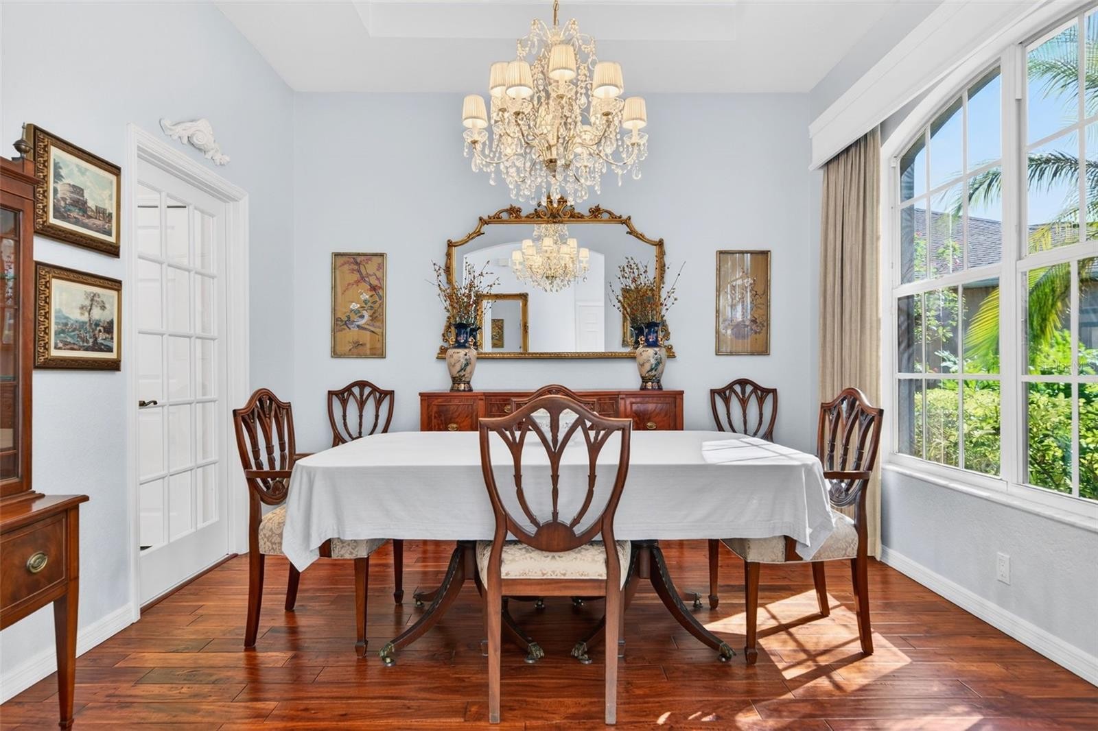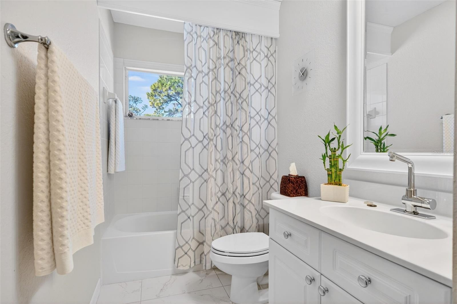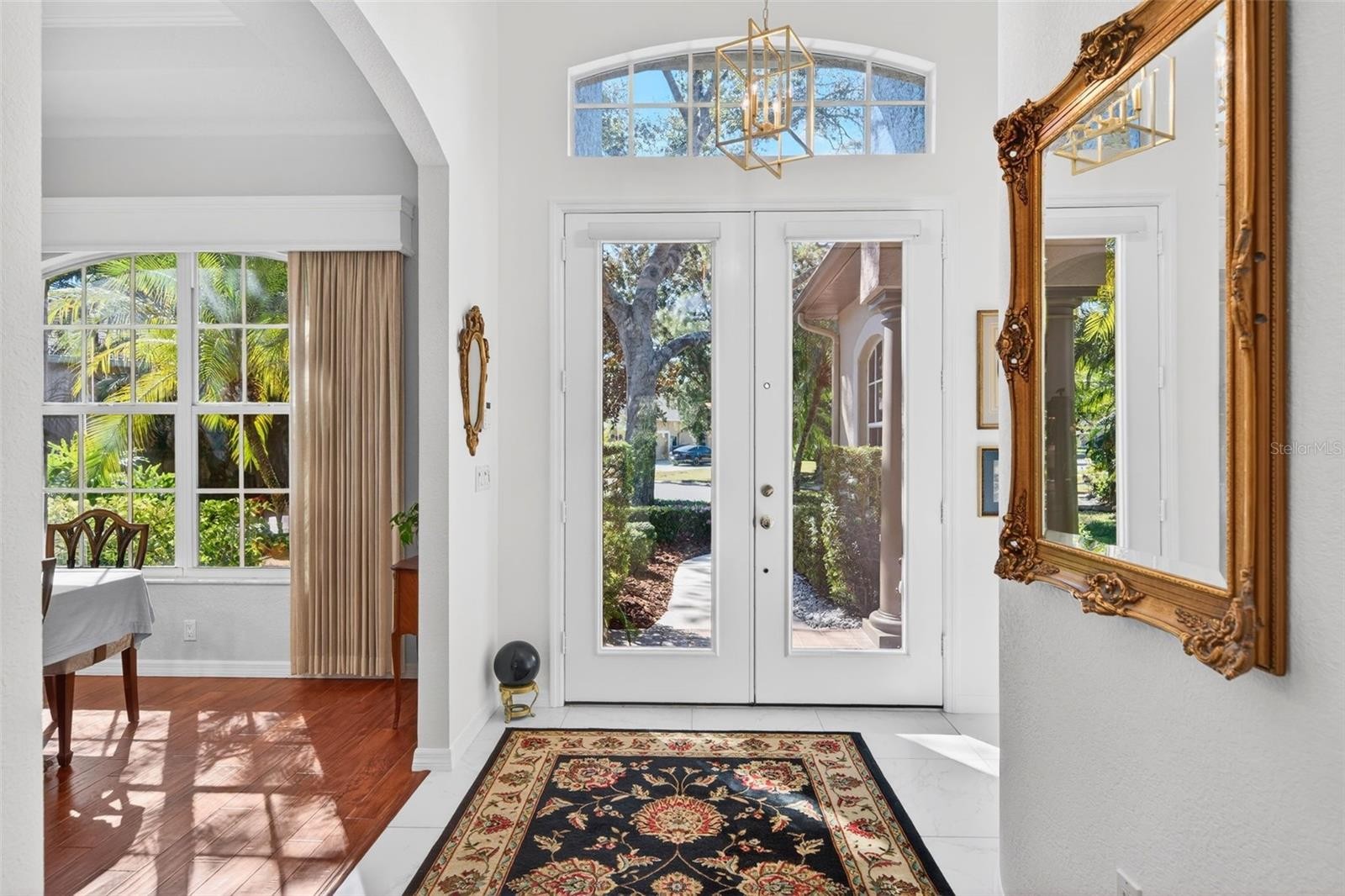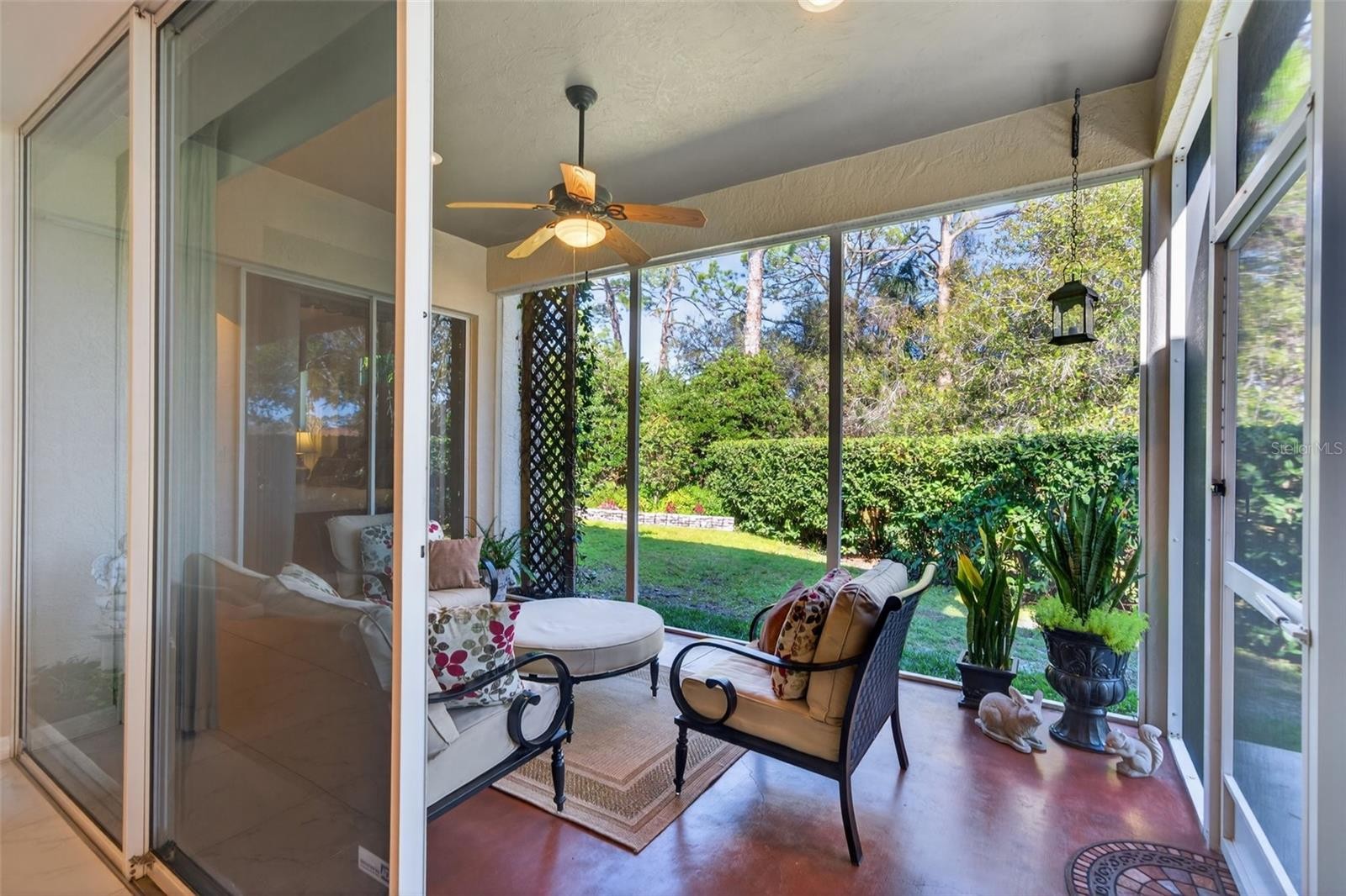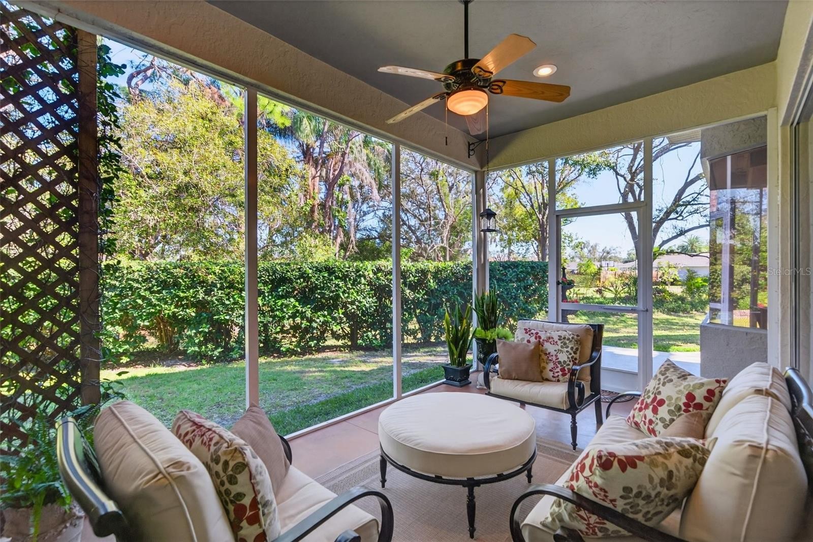 Welcome to this beautifully updated 4-bedroom residence in Palm Aire Country Club, one of the community’s newer and more sought-after neighborhoods. Tucked away on a quiet, wooded street of just 20 homes, this professionally curated property offers exceptional privacy and a serene, lush setting, mere steps from the 55-acre Conservatory Park and its scenic walking trails. This impeccably maintained two-story home is fully move-in ready and showcases a renovated kitchen and recently completed flooring throughout along with a roof (2021), and an air-conditioning system (2024). The grand living room is defined by soaring 22-foot ceilings with tons of natural light and a decorative fireplace, while the kitchen’s signature aquarium window frames tranquil wooded views. Elegant white tile flows through the main living spaces, complemented by rich hardwood flooring in the bedrooms. The primary suite, privately positioned on the main level, features double walk-in closets, a 10’ tray ceiling, direct access to the screened lanai, and a recently renovated spa-inspired ensuite bath with dual vanities, soaking tub, and separate shower. An additional bedroom and half bath, along with a laundry room featuring a sink, complete the first floor. Upstairs, two private bedrooms and a full bath provide ideal accommodations for guests, family or an office space. Low annual HOA fees and no CDD fees. Located within Palm Aire Country Club, where optional membership is available, offering an exceptional lineup of amenities including two 18-hole championship golf courses, a fitness center, junior Olympic-size heated pool, tennis and pickleball courts, and an elegant clubhouse with dining. Ideally situated for both lifestyle and convenience—just minutes from UTC Mall, Whole Foods, Trader Joe’s, Sarasota-Bradenton International Airport, and the University Parkway shopping and dining corridor. Top-rated hospitals, Downtown Sarasota, and the renowned beaches of Siesta Key and Lido Key are all in close proximity, with quick access to I-75. This exceptional residence offers a rare blend of privacy, elegance, and effortless Florida living.