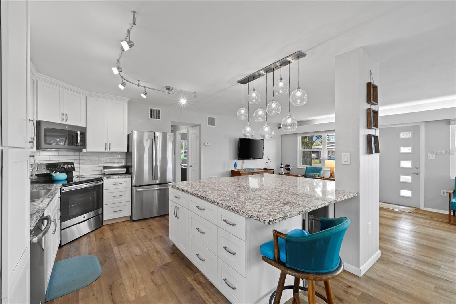 Discover the ultimate in Florida living! This exquisite home, perfectly situated on a picturesque canal lot near the Manatee River, offers effortless access to the Gulf for all your boating adventures. Step inside and be captivated by the breathtaking water views from the open-concept living area, enhanced by plenty of modern upgrades. The heart of the home—the fully remodeled kitchen—features an expansive island ideal for both cooking and entertaining, alongside custom cabinets and a pantry with convenient roll-out shelving. You'll also enjoy elegant granite countertops and a stunning oversized ceramic subway tile backsplash. Brand new stainless steel GE appliances, including a cutting-edge ceramic smooth top range with a convection oven, a microwave with ventilation, and a stylish cabinet-depth French door refrigerator, complete this gourmet setup. Venture down the cozy hallway to find two generously sized bedrooms and a beautifully updated bathroom showcasing double floating vanities with a sleek quartz makeup counter and a convenient tub/shower combo. The spacious Florida Room at the back of the house invites you to soak in spectacular views of your backyard and canal, creating an oasis of relaxation. Plus, the updated second shower bath and laundry/storage room is conveniently situated just off the Florida Room. Nestled in a serene community with no HOA fees, this gem is a stone's throw from shopping and major highways. Enjoy peace of mind with impact windows and sliding doors throughout, designed for safety and durability. A new roof installed in 2018, complete with hurricane tie-down strapping and deck nailing, ensures your home meets Florida wind codes. Plus, a new dock added and pre-owned lift installed in 2019, along with a brand new seawall completed in July, adds significant value to this remarkable property. With zero flooding or wind damage from previous storms, this home promises not only beauty but also security. Embrace year-round stunning water views from your backyard and endless possibilities for entertaining family and friends. A comprehensive list of upgrades is available upon request, making this stunning home an opportunity that shouldn’t be missed! Is this your perfect match? Book your showing today!