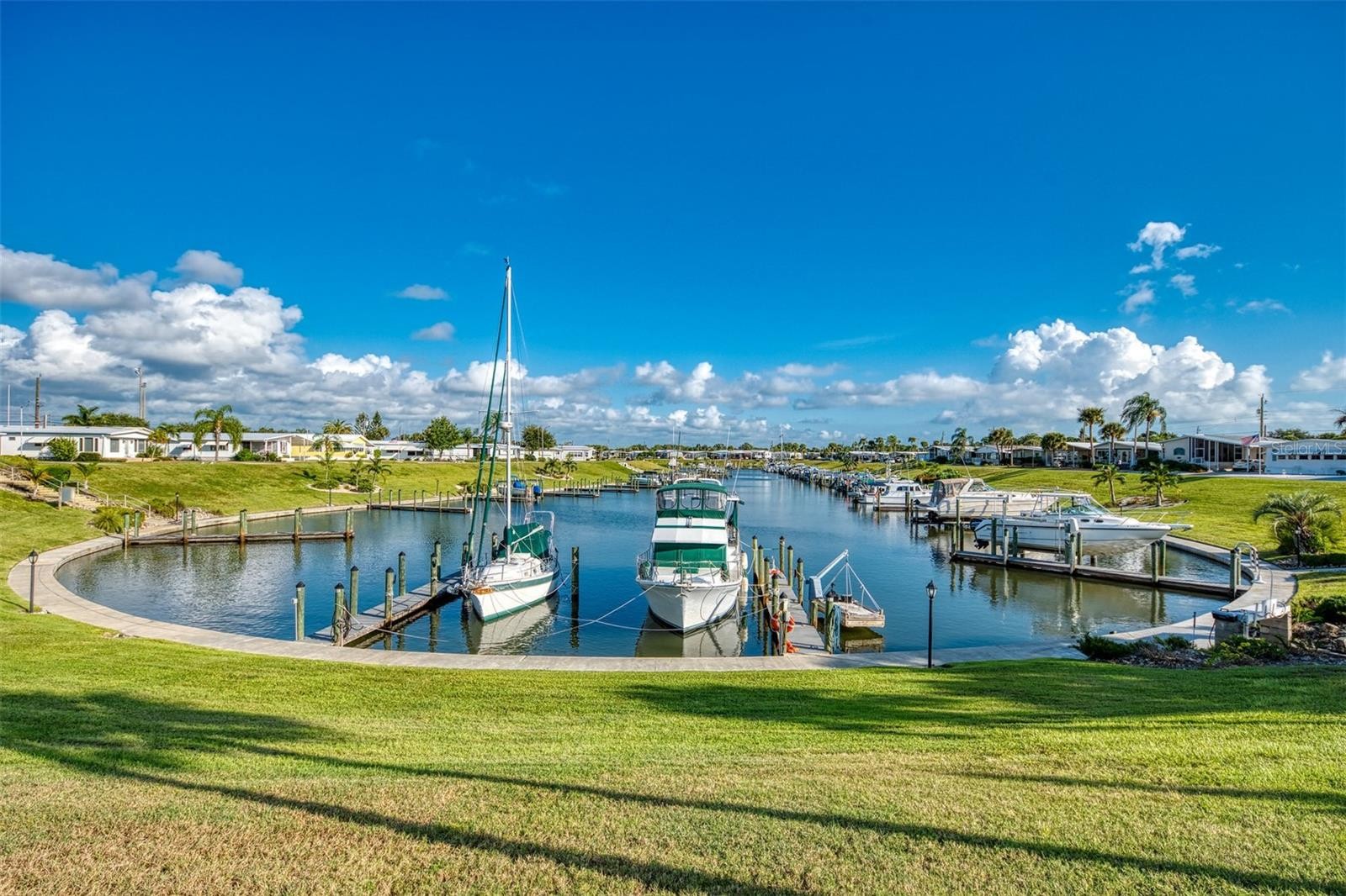 Immaculate, Better than New, 2 year old home in Dream Location for Boaters and Beach Lovers! Welcome to Country Club Estates, a premiere 55 plus, waterfront boating community with 120 slip private intercostal Harbor on the Island of Venice. This thoughtfully designed two-bedroom, two-bathroom home offers an open floor plan featuring large windows with transoms, allowing for plenty of natural light. Attractive luxury vinyl flooring and crown molding throughout creates a warm and inviting atmosphere. The large kitchen boasts an oversized island with plenty of cabinet space, energy-saving appliances - refrigerator, induction range, dishwasher and garbage disposal. All appliances were new in 2023 and still have the remainder of their 5 year warranty. The primary bedroom has a walk in closet and an ensuite with a step in shower and dual sinks. The second bedroom includes a deluxe Murphy bed package with a queen size bed perfect for family or guests. This room could be used as a home office or craft room offering ample closet space and easy access to the second full bath. A stackable washer and dryer located behind louver doors in the second bathroom makes for a dedicated laundry space. The home also offers a relaxing front porch and large screened in lanai allowing for additional entertaining space. Attached oversized storage/shed with shelving and cabinets. Hurricane shutters installed over all windows in June 2025. Home wired for electric generator hook up. The picturesque harbor offers affordable boat slips and docks just seconds from the Intracoastal Waterway. Gulf beaches and golf courses close by. Access to Venetian Waterway and Legacy bike trails right out of your driveway. Venice Historic district offering shopping, restaurants and entertainment is just a short walk or golf cart ride away. Owner has priced this beautiful home well below what they invested.