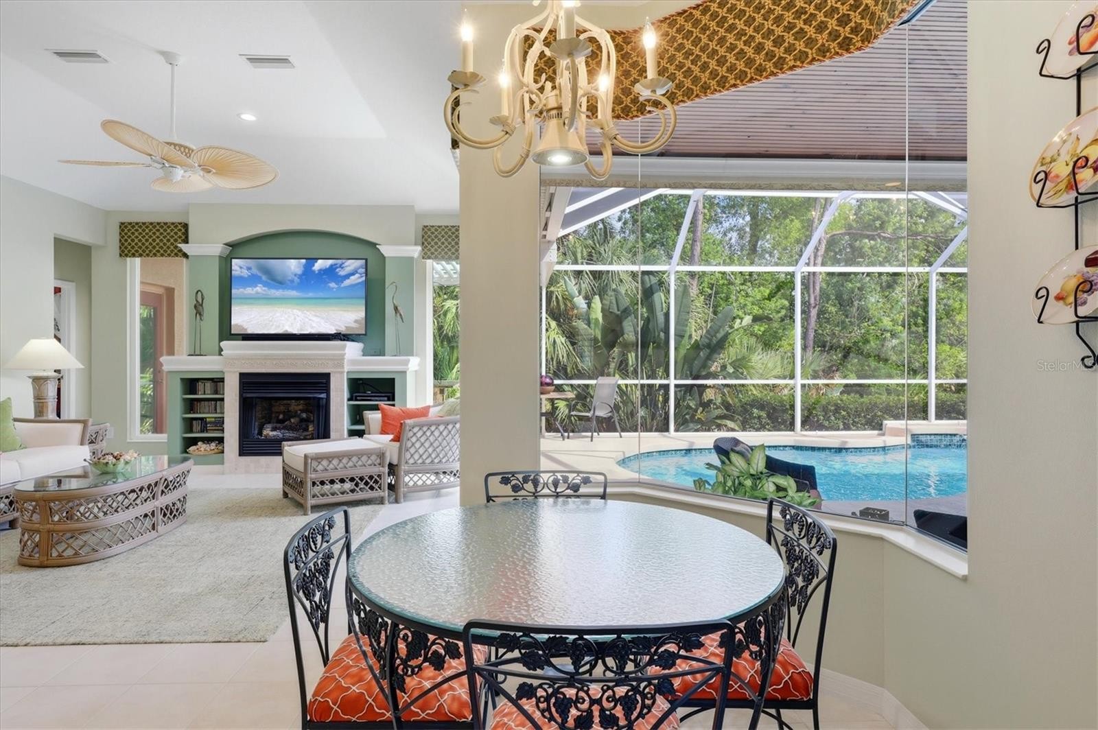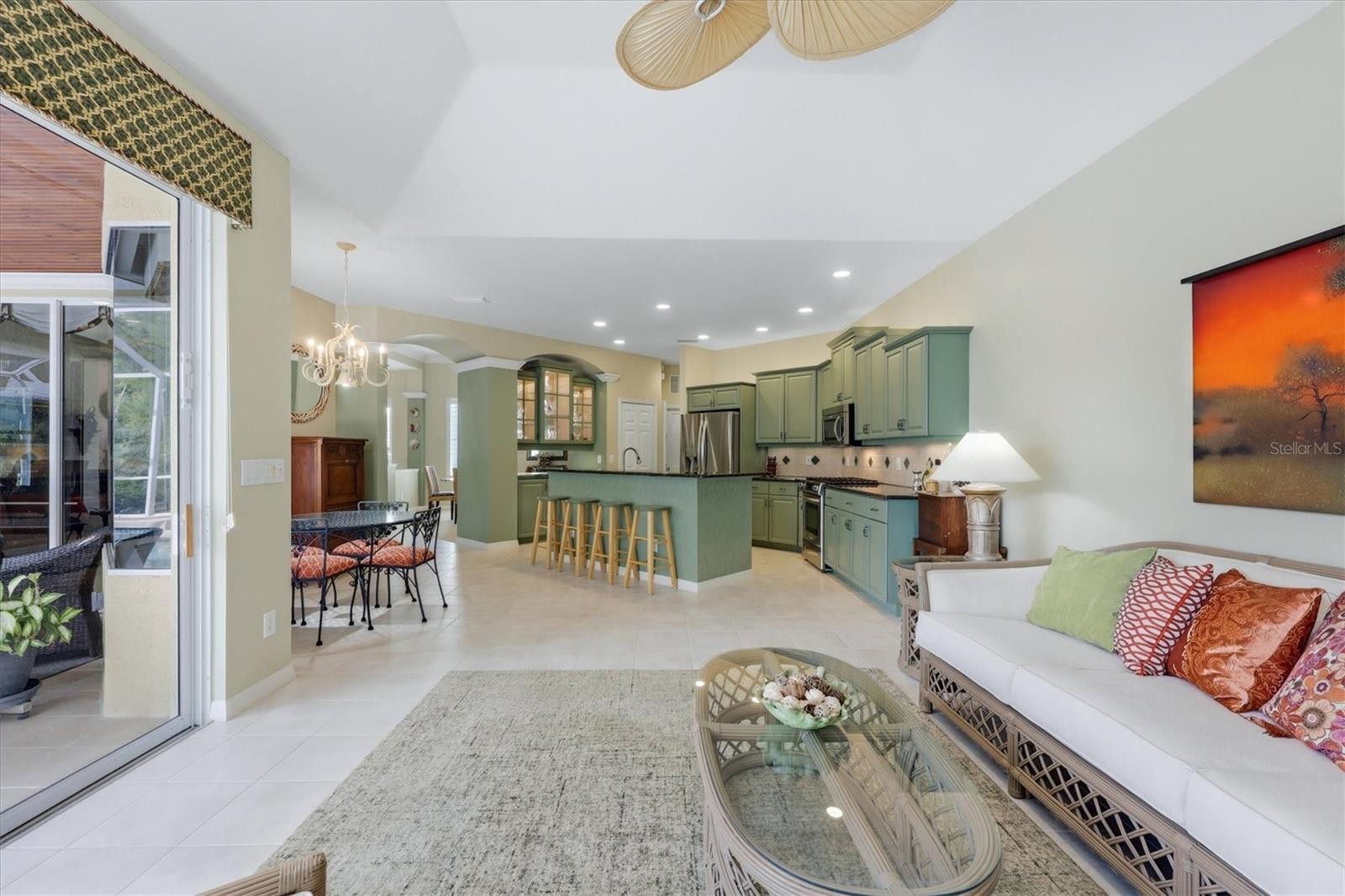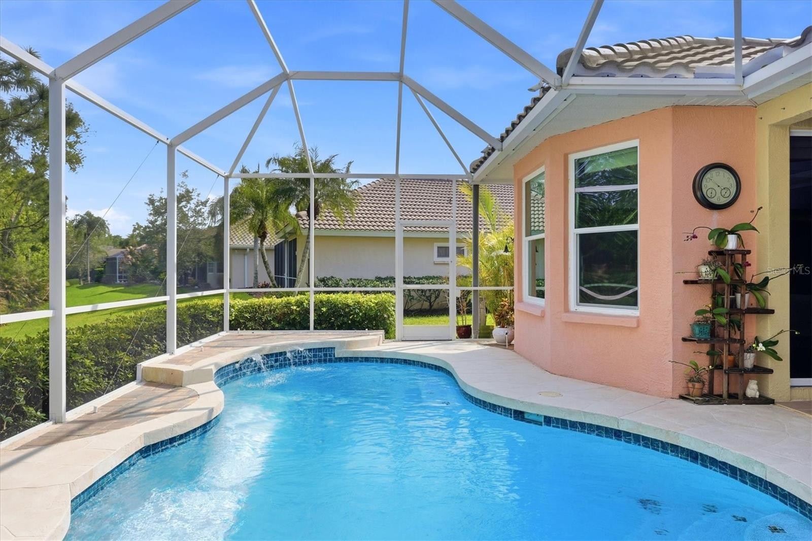 This beautifully crafted Lee Wetherington 3 bedroom, 3 bath plus den residence offers an exceptional blend of privacy, elegance, and timeless Florida living located within the highly sought-after Edgewater Village in Lakewood Ranch,. Set behind lush tropical landscaping, the home welcomes you with a charming fountain-lined entry walkway leading to striking double glass doors, creating a grand first impression. Inside, the thoughtfully designed floor plan unfolds with a formal living and dining room, where expansive sliders frame serene pool views and invite seamless indoor-outdoor living. The heart of the home is the well-appointed kitchen, featuring a spacious breakfast bar that opens effortlessly to the inviting family room, complete with a gas fireplace and additional sliders that extend the living space onto the lanai. This three-bedroom plus den, three-bath home offers both comfort and flexibility. The private den provides an ideal space for a home office or quiet retreat. The primary suite is a true sanctuary, showcasing tranquil pool views, dual walk-in closets, and a beautifully customized bath with a soaking tub, walk-in shower, and dual sink vanity. Two additional guest bedrooms each enjoy access to their own well-appointed baths, ensuring comfort and privacy for family and guests alike. Step outside to your private outdoor oasis, where a heated pool, expansive seating areas, and a custom outdoor kitchen with a motorized pergola create the perfect setting for entertaining or relaxing. Surrounded by lush, tropical landscaping, the lanai offers exceptional privacy and peaceful views—an ideal backdrop for enjoying breathtaking sunrises. Designed with both comfort and peace of mind in mind, the home is equipped with impact-rated windows and Kevlar fabric storm screens enclosing the lanai, offering enhanced protection without compromising the beautiful outdoor views. Adding to the home’s versatility is a spacious two-car garage with epoxy flooring and a valuable additional area, perfect for a workshop, home gym, hobby space, or expanded storage—offering flexibility to suit a variety of lifestyles. A new roof adds peace of mind, enhancing the home’s value and longevity. Located in Edgewater Village, one of Lakewood Ranch’s most established and picturesque communities, residents enjoy tree-lined streets, scenic lakes, and a tranquil setting just moments from Lakewood Ranch Main Street, Waterside Place, top-rated golf courses, dining, shopping, and the area’s renowned Gulf Coast beaches.
