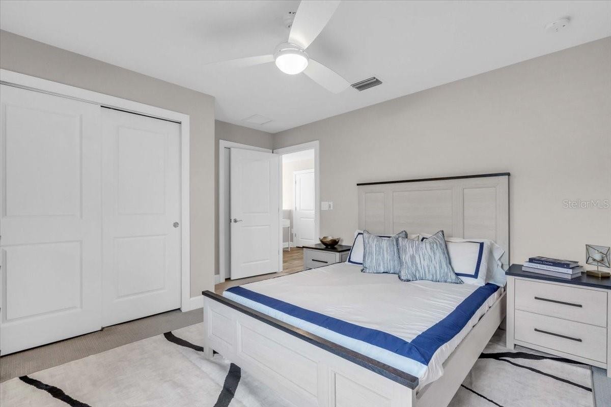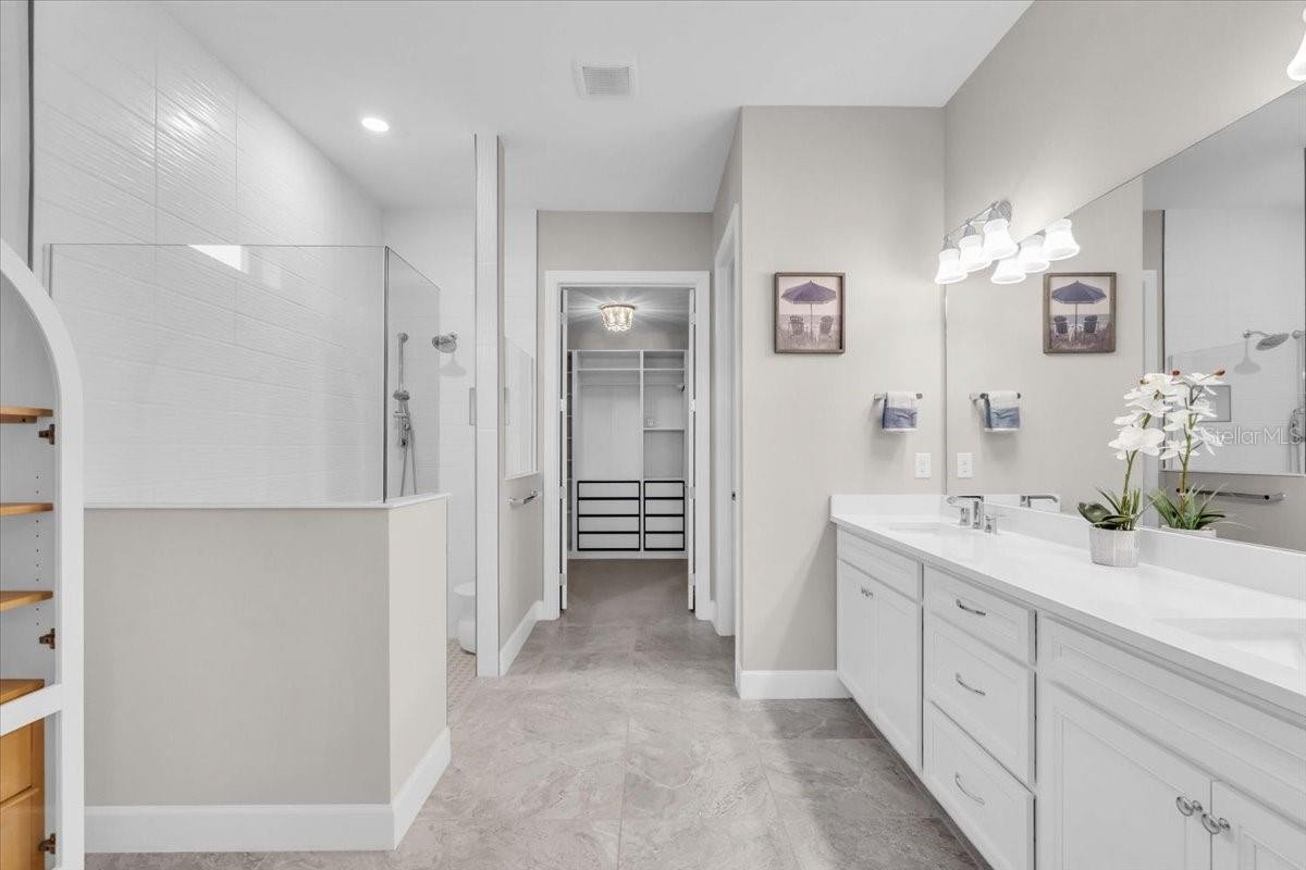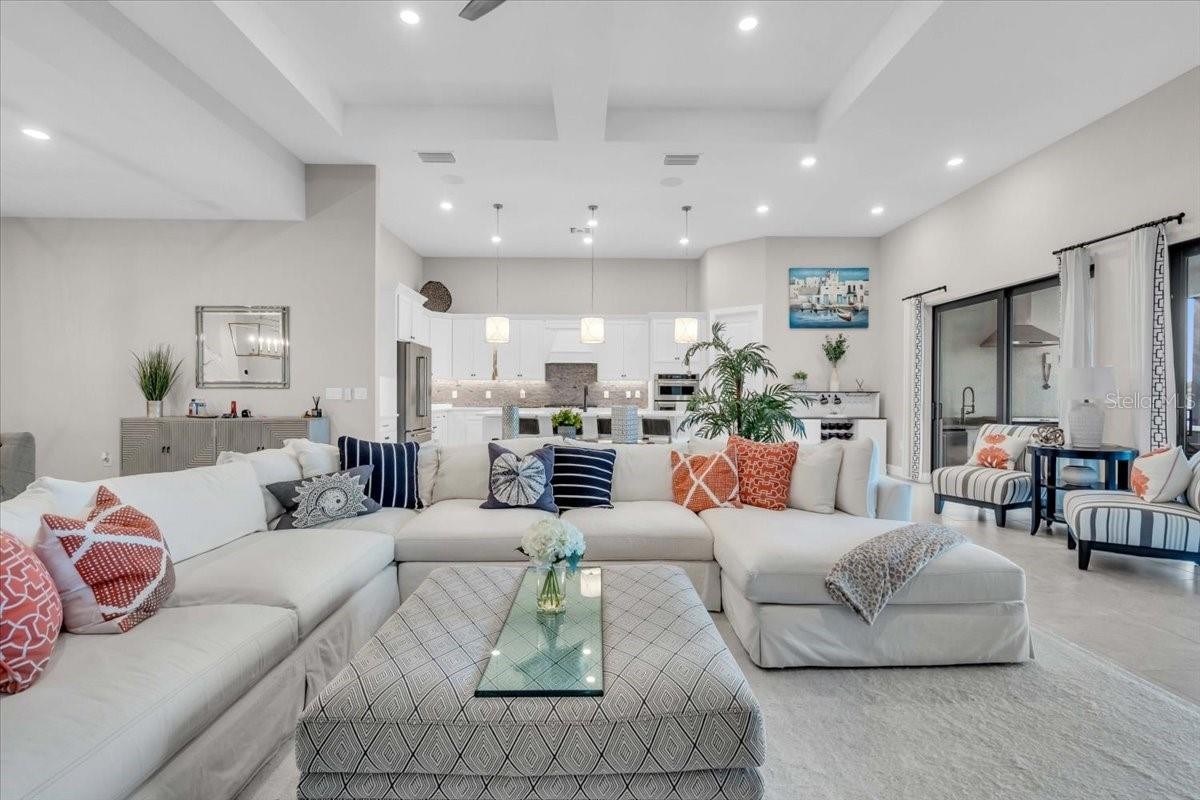 Grand residence on Grande Shores! This home is located in the Shoreview neighborhood in the Waterside Place area of Lakewood Ranch. Built in 2021, this floorplan features a loft for flexible living. This lakefront home has four bedrooms and a flex space with built-in bar seating currently being used as a media room. This home boasts over 4,000 square feet of living space, with an luxurious extended lanai with outdoor kitchen. The open floor plan with high ceilings, oversized impact windows, and impact glass sliders flood the space with natural light. The kitchen is a dream with a large island, breakfast bar, pendant lighting, stainless steel appliances, quartz countertops, and a walk-in pantry complete with high end shelving. Split bedroom floorplan grants privacy for all bedrooms. The primary suite has tranquil pool and lake views, a tray ceiling, and a walk-in closet with built-in shelves. Going upstairs, you will find a loft perfect for a game area or another living space. The loft is complete with the fourth bedroom and fourth full bathroom. The beautiful lanai features a Clearview screen around the luxurious, heated, saltwater infinity edge pool. This pool comes complete with a sun shelf, waterfalls, and a large built in spa. The lanai has access to a half bath for convenience: keeping wet swimsuits out of your home. Your outdoor oasis is complete with an equipped kitchen featuring a Blackstone grill, television, icemaker, and refrigerator drawers. This property offers the potential to add a dock. Plenty of parking and storage with a wide driveway and extended three-car garage with epoxy flooring. Home is being offered turn-key with all furniture included. Resort style amenities await you at Shoreview at Lakewood Ranch Waterside. This community offers a clubhouse, an outdoor bar, grilling areas, heated community swimming pool, spa, fitness center, a lakefront deck, tennis and pickleball courts, fishing, walking trails, a beach area, and much more. Not only do you have amazing amenities in your neighborhood, you are also near everything Waterside Place has to offer. Waterside is an amazing city center with restaurants, shopping, Sunday Farmer's Market, Ranch Nite Wednesdays with food trucks and endless activities. Easy access to University Town Center, I-75, and about 14 miles to the nearest beach (Lido Key). This home puts you in the center of it all!