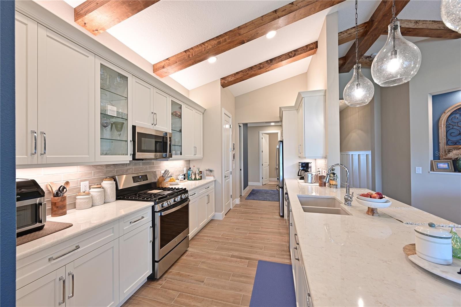 Exquisite residence in Lakehouse Cove, offering water views and an exceptional level of finish detail throughout. This thoughtfully designed home provides outstanding flexibility with two bedrooms, a spacious den/flex room and an additional den/study, creating ideal spaces for a home office, guest retreat or secondary living area. Attention to detail is evident at every turn with custom millwork throughout, hand-stained ceiling beams in the great room, and a striking floor-to-ceiling stone fireplace that anchors the main living space. The large den with double doors offers a versatile and private setting. The owner's suite is positioned to capture peaceful water views and features accent details, a tray ceiling with decorative molding, custom lighting and a walk-in closet with professionally designed built-in shelving. The bright, well appointed kitchen includes a generous breakfast bar, gas stove and glass-front cabinetry. The mudroom and laundry room have been custom finished with built-in bench seating, shelving, stacked cabinets, upgraded sink with tile backsplash and abundant storage. Additional upgrades that further elevate the home are custom designed closets and electric window treatments throughout (excluding laundry room). Designer lighting fixtures thoughtfully enhance each space, complimenting the home's architectural details and millwork. Built in 2024 and occupied only part-time, this home is in immaculate condition. Neighborhood amenities include a resort-style pool and spa, club house, fitness center, pickle ball courts, boat house and kayak ramp, event lawn and two dog parks. Located just a short stroll to vibrant Waterside Place, offering a variety of restaurants, shops, a weekly farmer’s market, block parties and concerts and more.