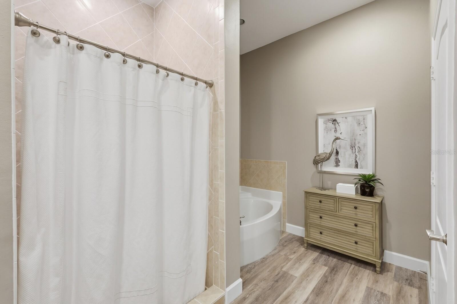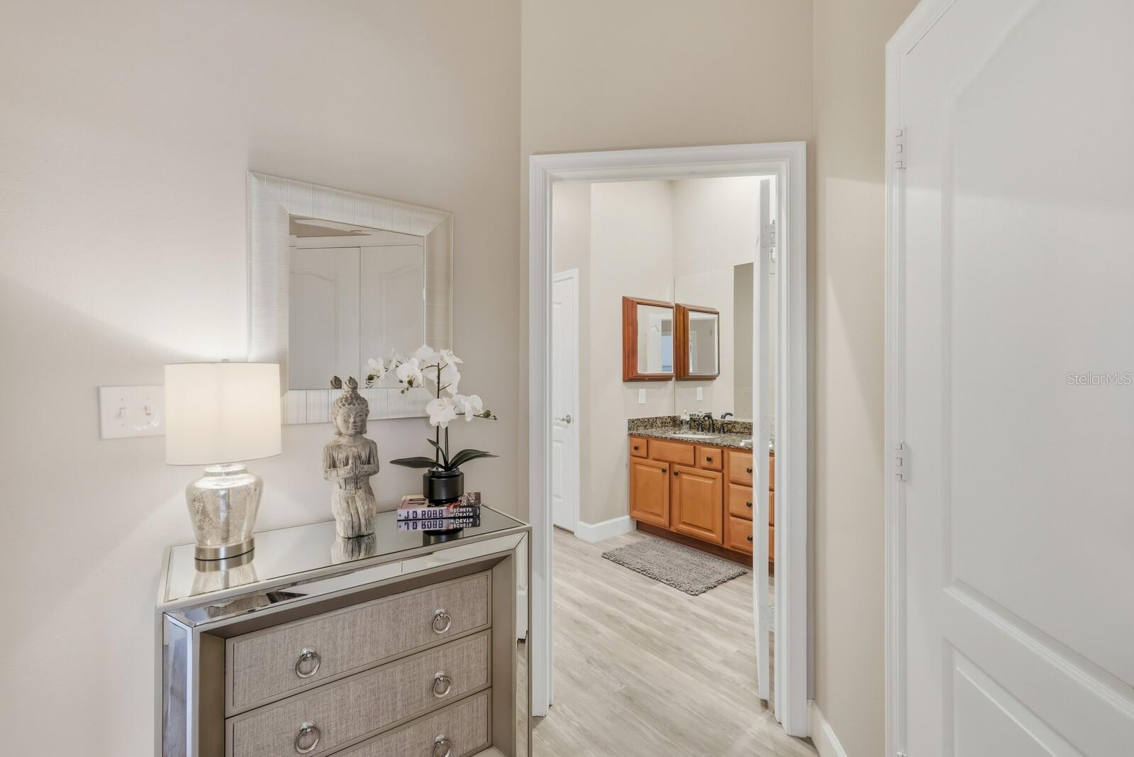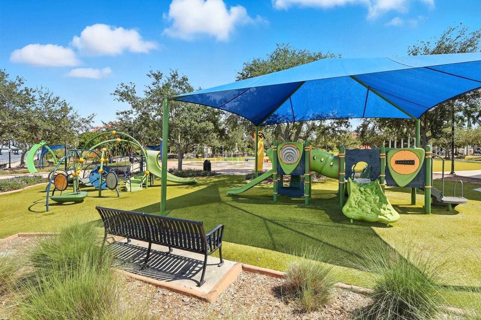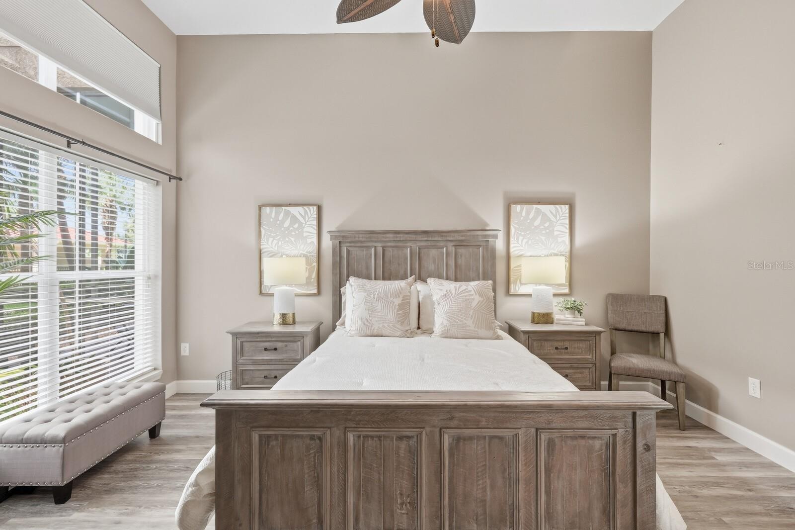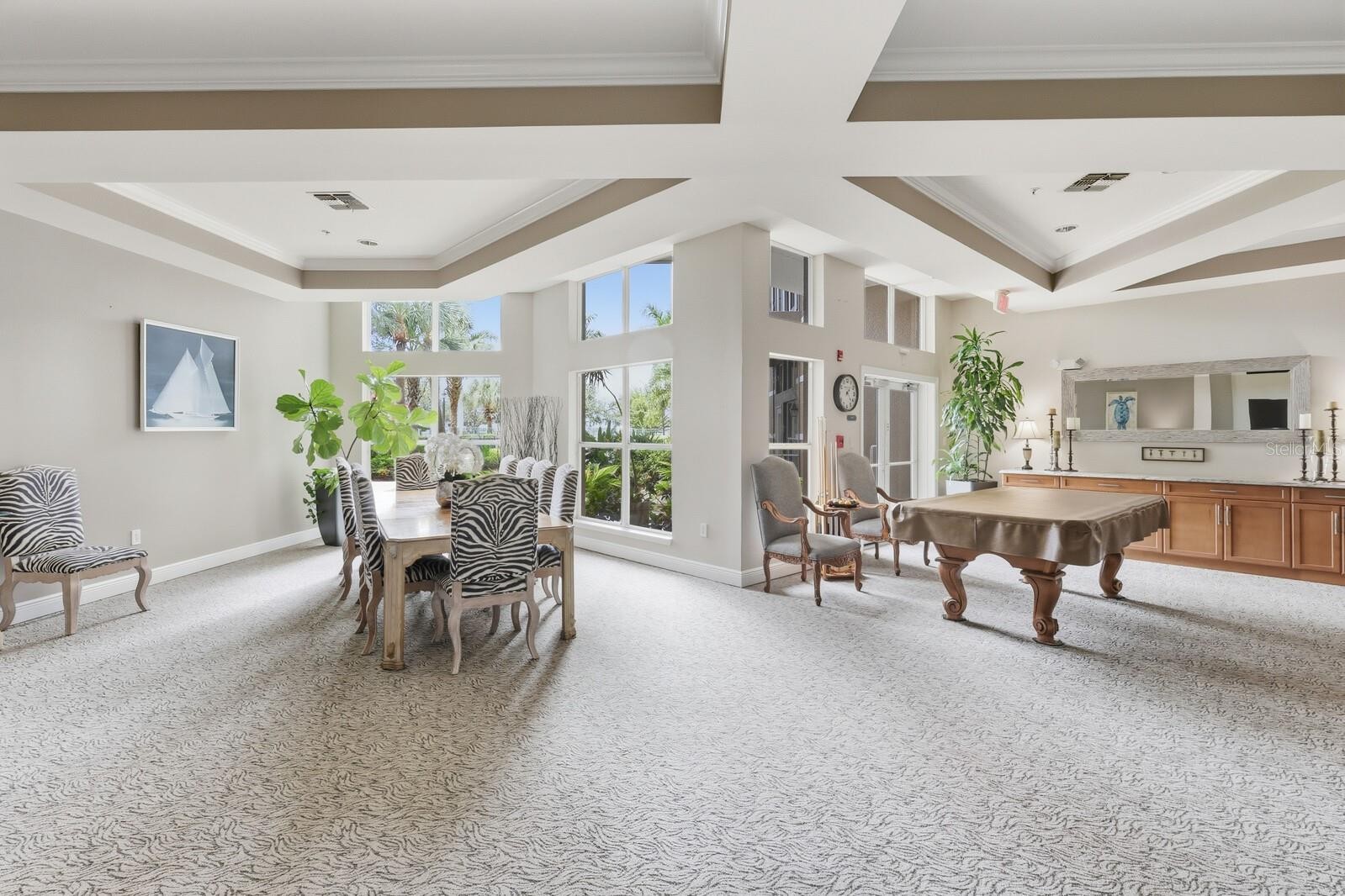 Discover refined living and an unbeatable location in this spacious, ground floor 2-bedroom, 1-bath condo located in the sought-after River Dance community, perfectly positioned along the scenic Bradenton Riverwalk overlooking the Manatee River. As an added bonus, the Gulf Island Ferry to Anna Maria Island departs right in front of the building, providing a scenic and car-free ride to the island’s beautiful beaches! This residence offers 1,236 square feet of thoughtfully designed living space, showcasing soaring ceilings, luxury vinyl plank flooring throughout, and designer light fixtures that enhance its modern, model-like appeal. The kitchen is both stylish and functional, featuring granite countertops, stainless steel appliances, a seating bar, and ample cabinetry. It flows seamlessly into the spacious great room, highlighted by a wall of windows, crown molding, plus a dedicated dining area ideal for gatherings. A screened lanai extends the living space outdoors, offering peaceful views of the lush garden and resort-style pool. The primary bedroom is generously sized with a walk-in closet and a second bedroom is thoughtfully located on the opposite side of the unit, providing privacy for guests or a quiet workspace. The bathroom is centrally located, complete with dual vanities, a walk-in shower, and soaking tub. Adding convenience, the residence includes in-unit laundry, making day-to-day living easy and efficient. River Dance is a resort-style, amenity-rich community designed for an active and social lifestyle. Residents enjoy access to a heated pool and spa with a grilling area, a fifth-floor outdoor deck with tennis and pickleball courts, a basketball court, and a putting green. Indoors, you'll find a fitness center, a movie theater with a serving bar, a community room with a full kitchen and pool table, as well as a business center and conference room. Two fully equipped guest suites are available for overnight visitors. This condo also includes two assigned spaces in the parking garage and a climate-controlled storage cage. Located just minutes from downtown Bradenton’s vibrant shops, restaurants, and cultural attractions including the Manatee Performing Arts Center, the location cannot be beat! Whether you're seeking a full-time residence, a seasonal retreat, or a low-maintenance investment, this exceptional condo offers the perfect combination of luxury, location, and lifestyle.