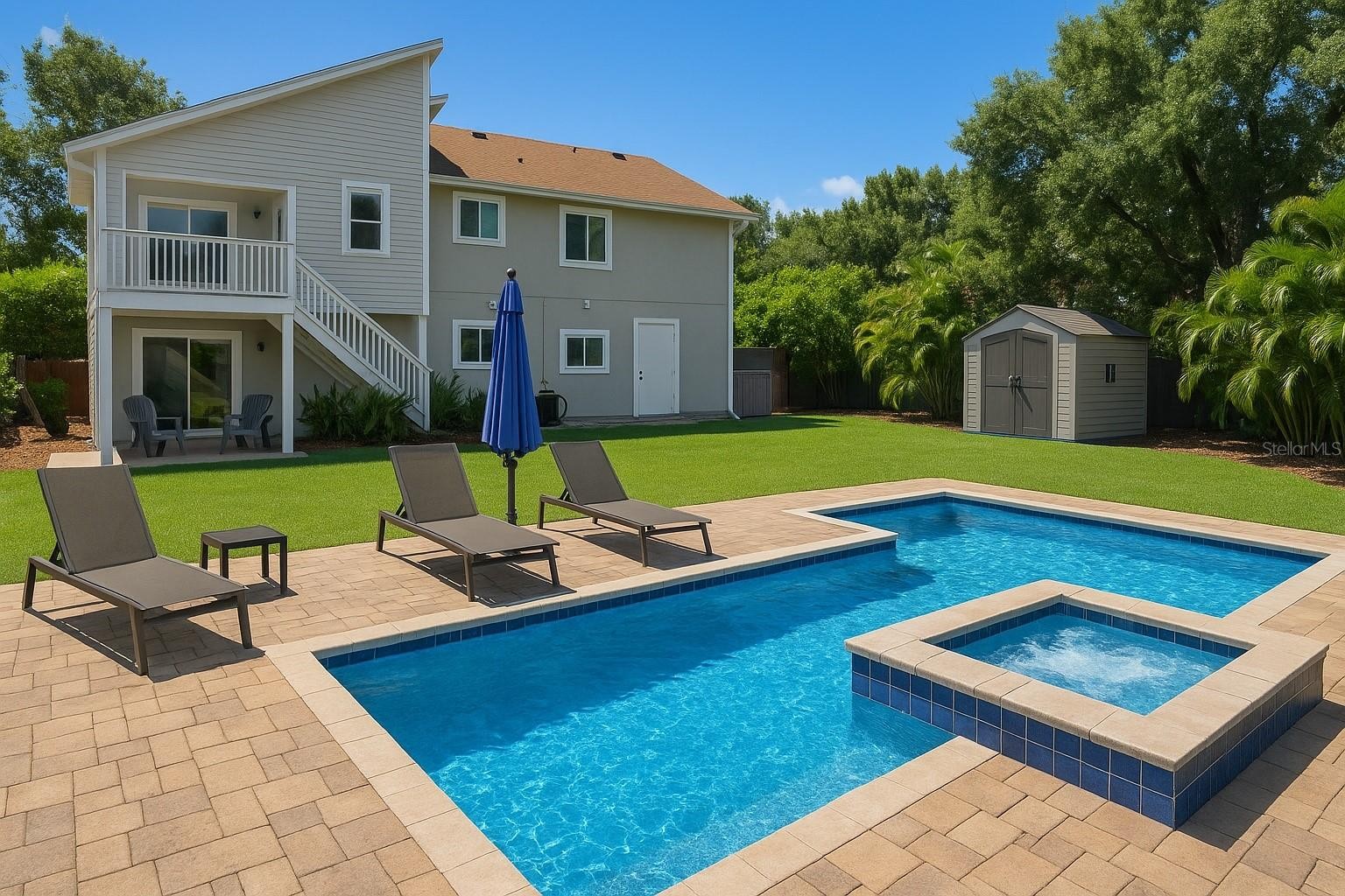 Please note: The pool shown is a virtual rendering for visualization purposes only and is not an existing pool. RELOCATING TO PARADISE – MULTIGENERATIONAL DREAM HOME. FULLY REMODELED WITH DUAL LIVING SPACES, SPACIOUS BACKYARD, AND PREMIUM UPGRADES THROUGHOUT. Perfect for multigenerational living or for those looking to offset their mortgage — LIVE UPSTAIRS OR DOWNSTAIRS AND LET THE OTHER UNIT PAY YOU MONTHLY! With our preferred lender, rates can be bought down! This immaculate 5-BEDROOM, 3-BATH home offers two complete and separate living spaces, each with its own entrance, kitchen, laundry, and living areas. GROUND LEVEL: 2 bedrooms, 1 full bath, brand-new kitchen with 2023 stainless-steel appliances, spacious living room, private laundry, covered patio with exterior ceiling fan, and separate entry. SECOND LEVEL: 3 bedrooms, 2 full baths, updated kitchen with dining area, bright living room, porch overlooking the large, fenced backyard, private laundry, and an electric fireplace with custom reclaimed wood surround. UPGRADES INCLUDE: New roof (2022) with a 50-year transferable warranty, hurricane impact windows (2017), all new appliances (2023), new exterior siding and trim (2023), updated baths and complete downstairs renovation, dual HVAC systems, Sherwin-Williams exterior super paint on stucco, structural updates approved by inspection. EXTERIOR FEATURES: Large fenced yard with room for a pool, two storage sheds, permitted extended driveway, and rebuilt front porch with custom railing. Located in a quiet, friendly neighborhood with low HOA ($300/year), no CDD fees, and Property Taxes only 6,082 a Year! In a PREFERRED NO FLOOD ZONE WITH NO FLOOD OR DAMAGE HISTORY. MINUTES FROM SIESTA KEY BEACH, SARASOTA, AND BRADENTON’S TOP BEACHES, DINING, CULTURAL ATTRACTIONS, SCHOOLS, AND AIRPORT. A rare opportunity for flexible living, comfort, and long-term value.