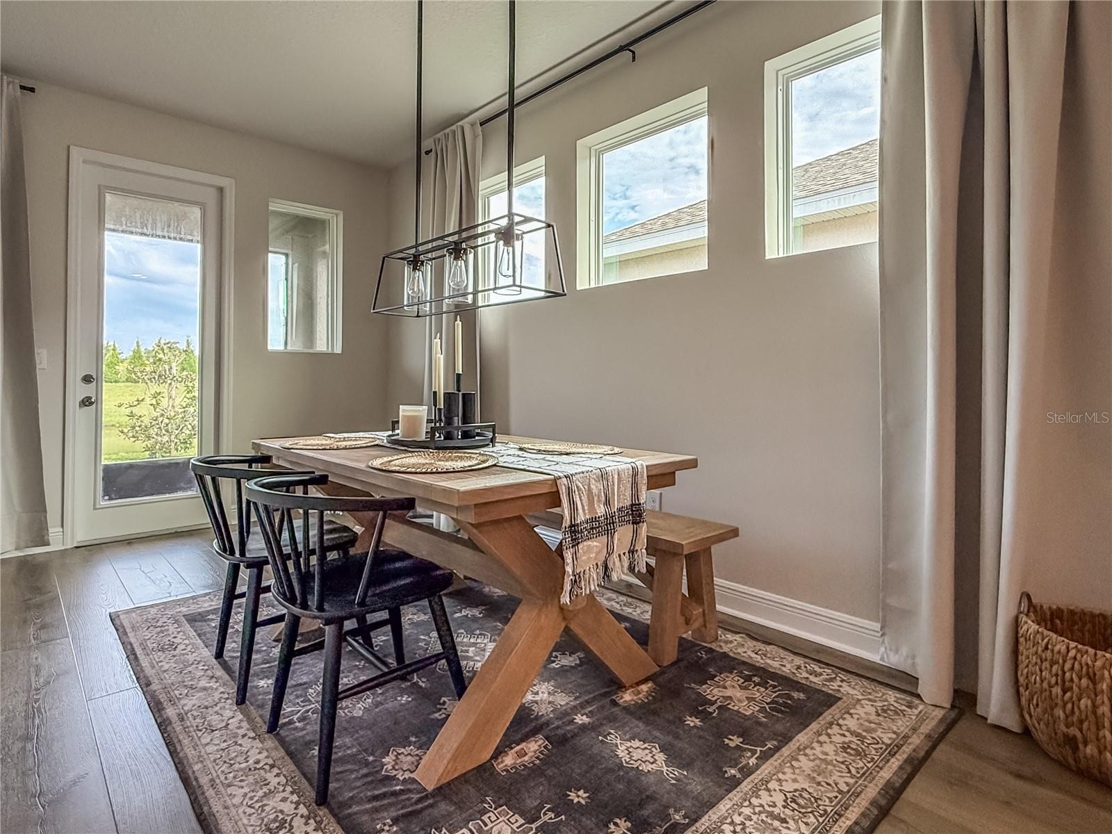 Welcome to the exceptional David Weekley Homes Ensenada floor plan, located on a quiet cul-de-sac within a gated section of the highly desirable North River Ranch community. Built in 2022 and pre-inspected for peace of mind, this beautifully maintained home offers pond views, designer finishes, and an ideal open layout perfect for modern living. The gourmet kitchen features builder-selected upgrades including white quartz countertops, a built-in oven and microwave with a hooded cooktop, elegant tile backsplash, and a large walk-in pantry. The owners further enhanced the kitchen with matte black cabinet hardware added in 2024 and a Whirlpool French door refrigerator installed in 2023. The spacious living and dining areas are filled with natural light from oversized windows, and are enhanced by custom lighting including a new chandelier and ceiling fan added in 2023. Throughout the main living areas, you'll find upgraded luxury wood-look vinyl flooring and 5-inch baseboards, builder-selected for both style and durability. The layout also includes a den or home office, enclosed with solid French doors added in 2025 for privacy. The laundry room was upgraded during construction to connect directly to the owner’s suite closet for added convenience. In the primary suite, you'll enjoy a tray ceiling (a builder upgrade), a custom design accent wall (2025), and a luxurious walk-in shower. In 2024 and 2025, the owners also installed stylish matte black faucets and showerheads in both bathrooms, further elevating the modern aesthetic. The guest bedrooms include upgraded double-door closets for extra functionality. Outdoor living is equally impressive. The lanai was screened in, in 2025, along with adding a ceiling fan to create a relaxing and comfortable space with peaceful pond views and breathtaking sunsets. In 2025, the front yard received new sod, fresh mulch, and garden stone enhancements, contributing to the home’s fantastic curb appeal. The exterior also includes the upgraded stone-accent elevation chosen during construction, an irrigation system using reclaimed water, exterior garage lighting added in 2023, and a Ring camera system with two external cameras for security. The HVAC system, roof, and water heater are all original from 2022 and remain in excellent condition. Located just a short walk to Publix, First Watch, and Foxtail Coffee, and only minutes from I-75, this home offers a convenient commute—approximately 35 minutes to Anna Maria Island beaches, 35 minutes to Sarasota-Bradenton Airport, and 50 minutes to Tampa International Airport. As a resident of North River Ranch, you’ll enjoy resort-style amenities including three community pools, clubhouse, pickleball courts, playground, dog park, fitness center, walking and biking trails, picnic areas, and weekly Friday food trucks and seasonal events. A new elementary school is also opening in 2025. With a low annual HOA fee of just $108, this home offers the perfect balance of quality, location, and lifestyle in one of the fastest-growing areas of Manatee County.