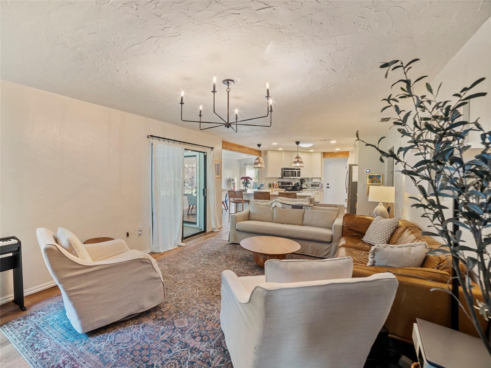 One or more photo(s) has been virtually staged. Welcome to Glenbrooke! Nestled on over a quarter-acre cul-de-sac lot, this charming 3-bedroom, 2-bathroom home offers the perfect blend of comfort, functionality, and Florida lifestyle living in a quaint, centrally located Sarasota community. A desirable split-bedroom floor plan provides privacy and flexibility for families and guests alike. Upon entry, you’re greeted by formal living and dining rooms just off the foyer, ideal for entertaining. The gathering room, located at the rear of the home, features a propane gas fireplace and sliding glass doors that open to the lanai, creating a warm and inviting space. The remodeled kitchen is a standout, showcasing new cabinetry with gold hardware, quartz countertops, pendant lighting over the breakfast bar, canned lighting, a skylight, and a closet pantry with French doors. Wood beam accents add character and charm, while new appliances (2023) complete the space. The primary suite is privately situated in the back right corner of the home and offers sliding glass doors to the lanai. The remodeled en-suite bathroom features a glass walk-in shower, white vanity cabinetry with drawers, and a granite countertop. Two secondary bedrooms are located on the opposite side of the home and share a bathroom with a tub/shower combination. Luxury vinyl flooring runs throughout the home, with carpet in the two secondary bedrooms. Step outside to enjoy a covered lanai and a large, fully fenced backyard, providing a safe and versatile space for kids, pets, and outdoor gatherings. The yard includes a brand-new swing set, perfect for play and family fun. Additional Features & Upgrades Include: Roof replaced in 2017 (including soffits & gutters) HVAC replaced in 2018 Whole-house generator Electric car charging station Hurricane shutters Central vacuum system Storage shed included Pull-down attic ladder in garage for additional storage Centrally located in Sarasota, this home offers easy access to excellent schools, shopping, dining, and everyday conveniences. Enjoy the best of coastal living with beautiful beaches and recreational activities just minutes away, and an exceptional location only 4 miles from University Town Center. Don’t miss this opportunity to make this wonderful home your own—schedule your private showing today!