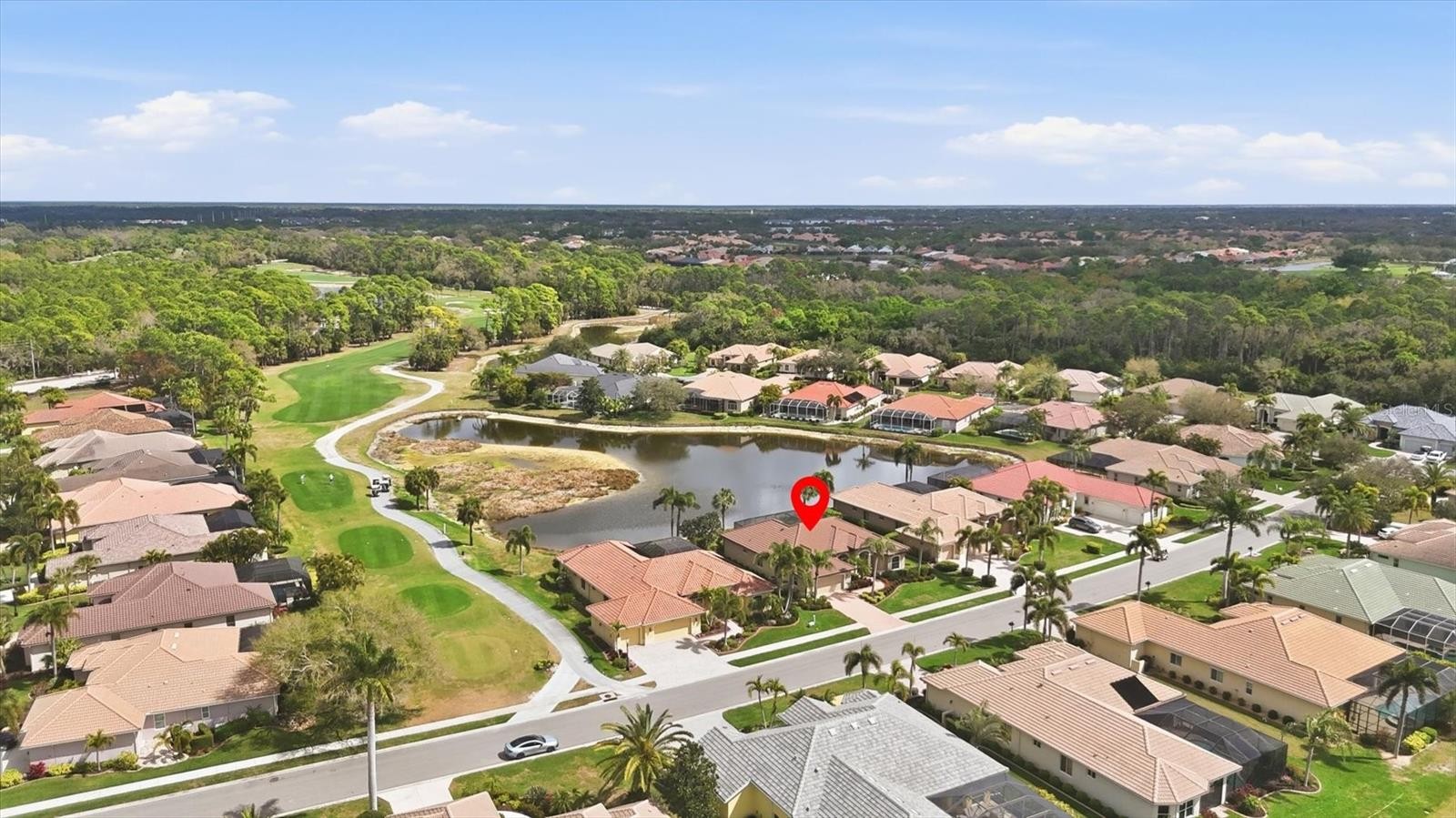 Located in the gated section of the Pelican Pointe Golf and Country Club called The Sanctuary, this custom Sam Rodgers home sits on a spectacular lakefront parcel. Enter through etched glass double doors where the panoramic lake and golf course views begin. New luxury vinyl plank floors in the living room, formal dining room and family room. Crown molding, 12ft ceilings and recessed lighting, solid wood and glass cabinets in the kitchen breakfast bar and island with lots of counter space plus dining area. The primary bedroom has glass door to the lanai and two walk-in closets. Garden tub in the primary bath, dual sinks, walk-in shower. Custom shelving in the walk-in pantry. Interior Laundry Room. The pool and spa were resurfaced in 2024. Early risers can have coffee on the lanai with the sunrise. The lanai is equipped with an accordion hurricane shutter. Paver driveway, two-car garage with workbench, hurricane shutters. Neutral colors throughout the home. Offered completely furnished. New tile roof and gutters installed 2023. New Electric Hot Water Heater 2024. Looking for maintenance free? Social membership included in your low HOA dues includes a clubhouse with full restaurant and bar, heated pool, fitness center, tennis courts and pickle ball and a multitude of activities, cable, internet and lawncare. Pelican Pointe’s 27-hole championship golf club has memberships available not required.