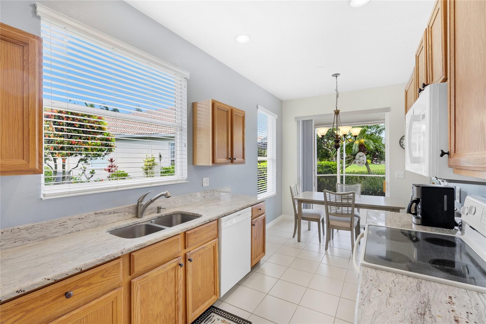 NEW ROOF (2026) on this END-UNIT villa with LAKE VIEWS view featuring 2 bedrooms plus a DEN, 2 bathrooms, and a 2-car garage, with 1,554 sq ft of living space. The kitchen offers granite countertops, and the home opens to a large EXTENDED SCREENED LANAI with beautiful LAKE VIEWS. Natural gas supplied to the home. TURNKEY FURNISHED, or seller will remove if buyer so chooses. MAINTENANCE-FREE (with a few exceptions). Lakeridge Falls is a 55+ gated community (24-hour guard) with a community HEATED pool, spa/hot tub, updated clubhouse with full fitness center, card room, bocce courts, a beachy area, lots of walking trails, and a full calendar of planned activities. Great location: Close to UTC Mall, restaurants, grocery stores, SRQ airport, downtown Sarasota, and the most beautiful beaches around.