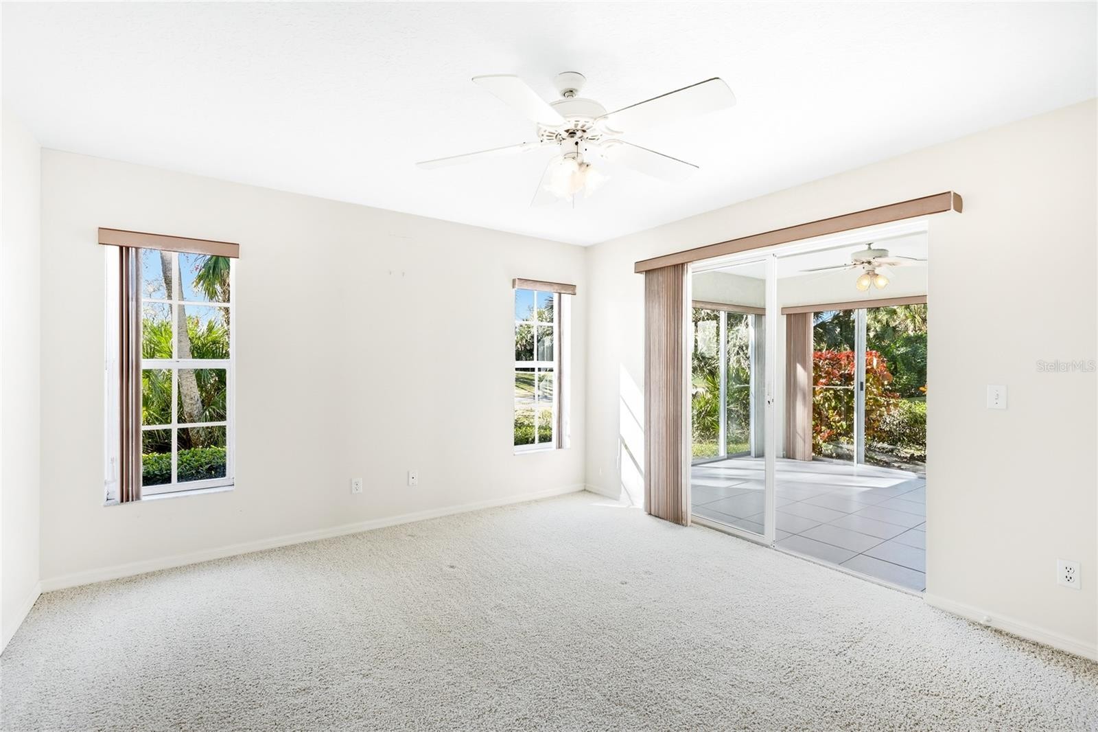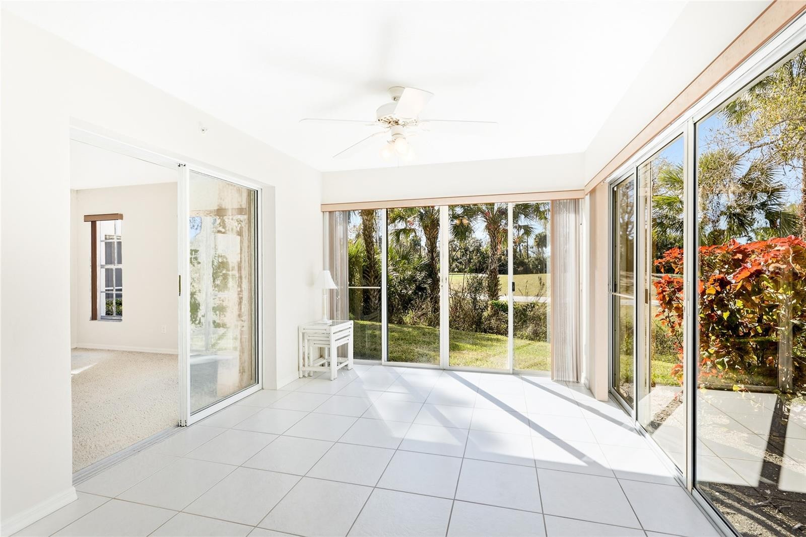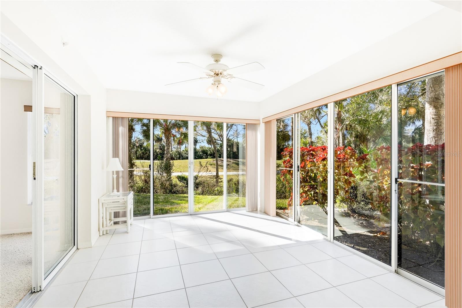 One or more photo(s) has been virtually staged. Enjoy effortless Florida living in this rarely available first-floor 3 bedroom, 2 bathroom condominium offering true step-free access and peaceful golf course views in the sought-after St. Andrews Park at Plantation Golf and Country Club. Filled with natural light, this spacious unit features a clean, neutral interior that feels bright, open, and inviting from the moment you enter. The open living and dining areas provide flexible space for everyday living and entertaining, with large windows and sliding glass doors that lead to the enclosed Florida room overlooking lush landscaping and the 14th fairway of the Bobcat course. The kitchen offers ample cabinetry, stainless steel appliances, and a convenient pass-through, making it functional and easy for daily meal prep or hosting guests. The split floor plan includes three generously sized bedrooms and two full bathrooms, both with walk-in showers, along with a dedicated in-unit laundry room for added convenience. The primary suite enjoys tranquil views and direct access to the Florida room, creating a relaxing retreat. St. Andrews Park residents enjoy access to three community pools, including one located just steps from the unit, as well as a clubhouse and beautifully maintained grounds, all with no CDD fees. Golf and social memberships at Plantation Golf and Country Club are available but not required, offering flexibility to enjoy the amenities at your own pace. Ideally located just minutes from Venice’s pristine beaches, historic downtown, shopping, dining, and cultural attractions, this move-in ready condominium combines comfort, convenience, and a relaxed Florida lifestyle. **THIS PROPERTY QUALIFIES FOR A 1% LENDER INCENTIVE IF USING PREFERRED LENDER. INQUIRE FOR MORE DETAILS.**