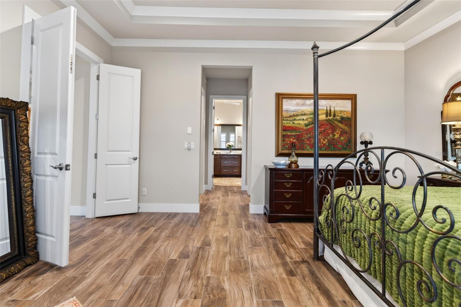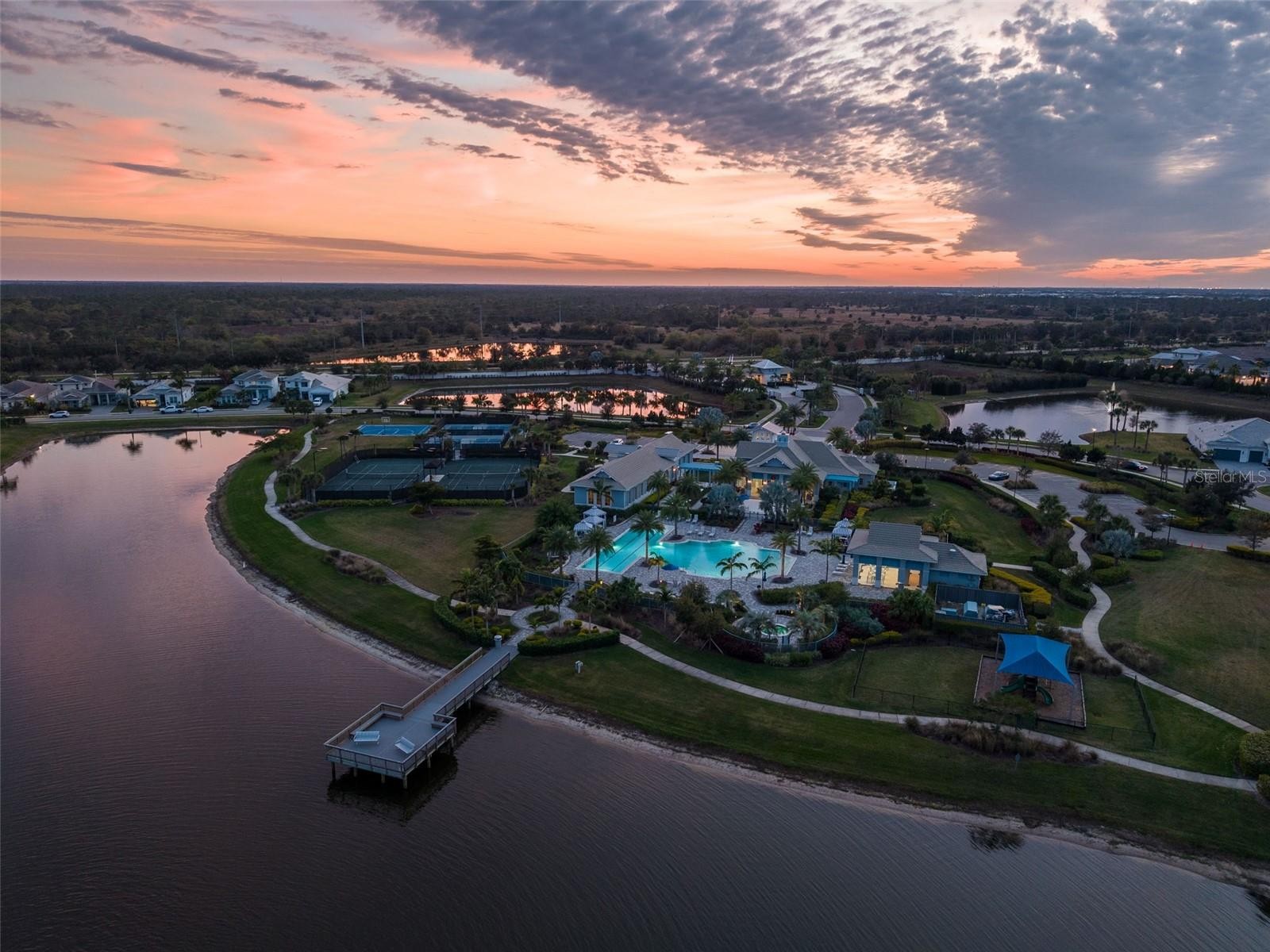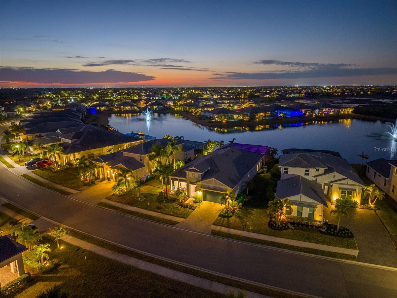 Revel in the quintessential Florida lifestyle in this beautifully appointed Carver model, ideally set within The Isles. From the moment you arrive, the home welcomes you with a sense of warmth and ease, seamlessly blending comfort, and refinement. The thoughtfully designed floor plan offers a private office, three bedrooms, and a formal dining space, creating an inviting yet functional layout for everyday living and entertaining alike. The upgraded kitchen is both stylish and practical, featuring an oversized quartz island, abundant cabinetry, and generous storage. Notable builder upgrades include plantation shutters throughout, masonry construction, foam insulation with radiant barrier, elegant crown molding, a spa-inspired primary suite with a freestanding soaking tub, and custom built-ins within the dual primary closets. The beautifully finished great room opens effortlessly to the outdoors, where a custom pool, gas fire bowls, and expansive entertaining space await. With the touch of a button, remote-controlled hurricane screens provide comfort and protection, while the heavy-duty lanai enclosure was purposefully constructed to withstand Florida storms. The serene water view is enhanced by not one, but two cascading waterfalls, creating a truly picturesque backdrop. Completing the outdoor living experience is a fully equipped outdoor kitchen, perfect for hosting. Additional enhancements include a whole-house generator, water softener and reverse osmosis system, hurricane shutters, garage loft storage, whole-home Wi-Fi extenders, upgraded electrical panel, and gutters—ensuring peace of mind and modern convenience throughout. The Isles features a 65,000-square-foot clubhouse, resort-style pool and spa, tennis and pickleball courts, yoga and fitness center, boardwalk, dog park, playground, and more—ail just minutes from the award-winning beaches of Siesta Key, Lido, and Anna Maria
